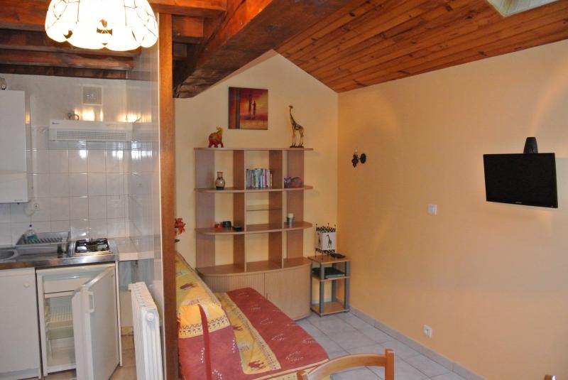 This 45m2 T2 flat for 2/4 people is located in the small village of Saint-Mamet, near Luchon. The flat comprises a kitchenette opening onto the living room with a dining area. The sofa in the living room converts into a bed for 2 people. There is a separate bedroom upstairs with a double bed (140cm) and a shower room with toilet. Private parking for your vehicle is available. A swing set in the garden will keep children entertained. You will enjoy the following facilities: - Flat-screen television. - Washing machine. - Fully equipped kitchen: microwave, oven, freezer. - Outside: balcony, garden, garden furniture, barbecue. - Children's facilities: BB bed, children's swing, books, board games. - One pet accepted.