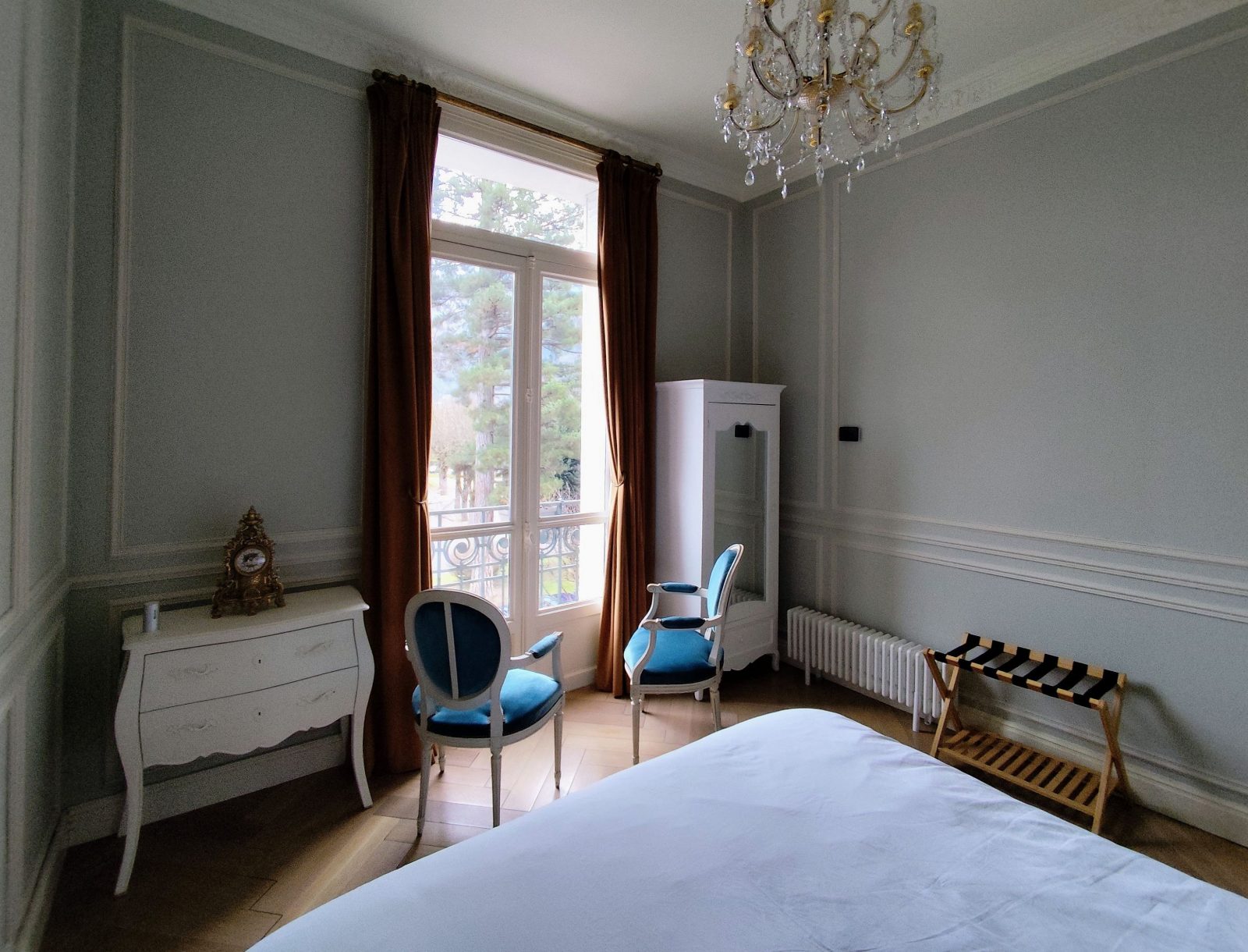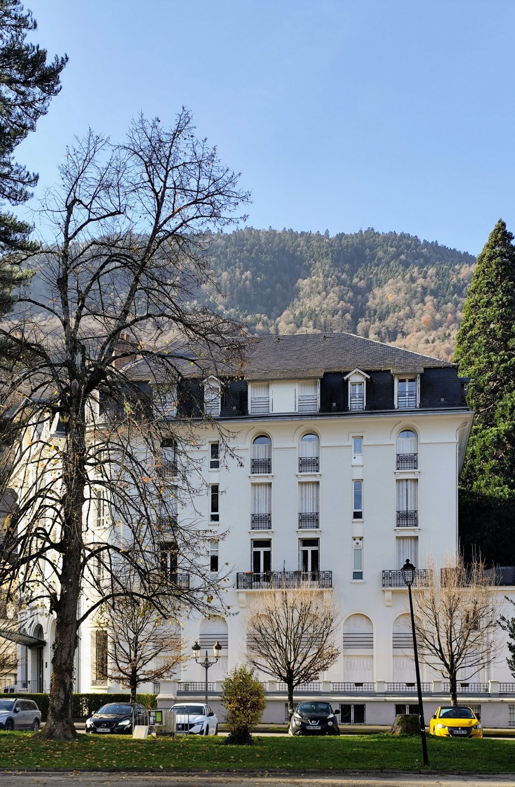 T2 flat of 46m² located on the 2nd floor, recently renovated in the style of the residence at the beginning of the 20th century. Facing the Casino-Theatre and its park. 1 bedroom with 1 160cm bed, comfortable 140cm sofa bed, 1 large living room with fitted kitchen, shower room, TV with Wi-Fi and fibre internet access. 2 minutes' walk from the centre and the crémaillère express train to Superbagnères, and 5 minutes from the thermal baths. Ideal for spa visitors, hikers or events.