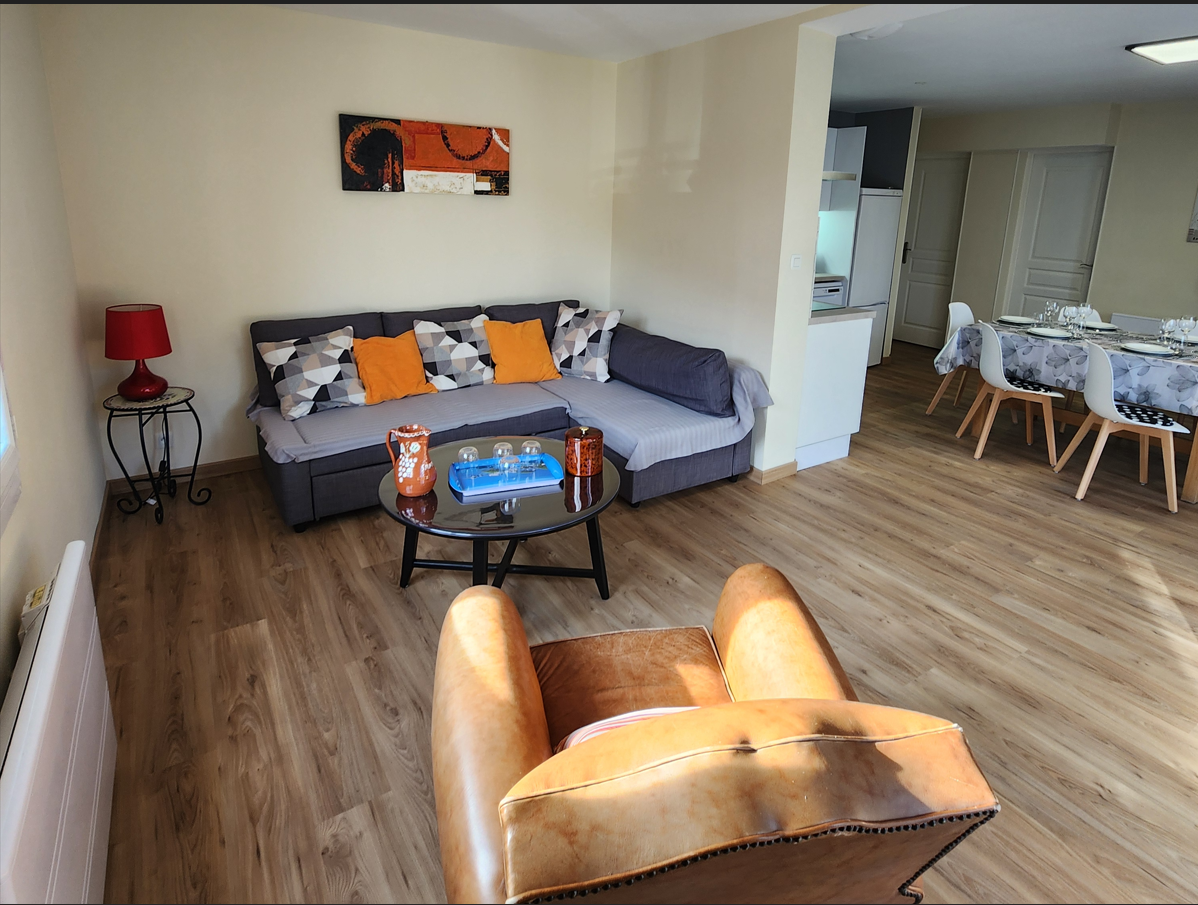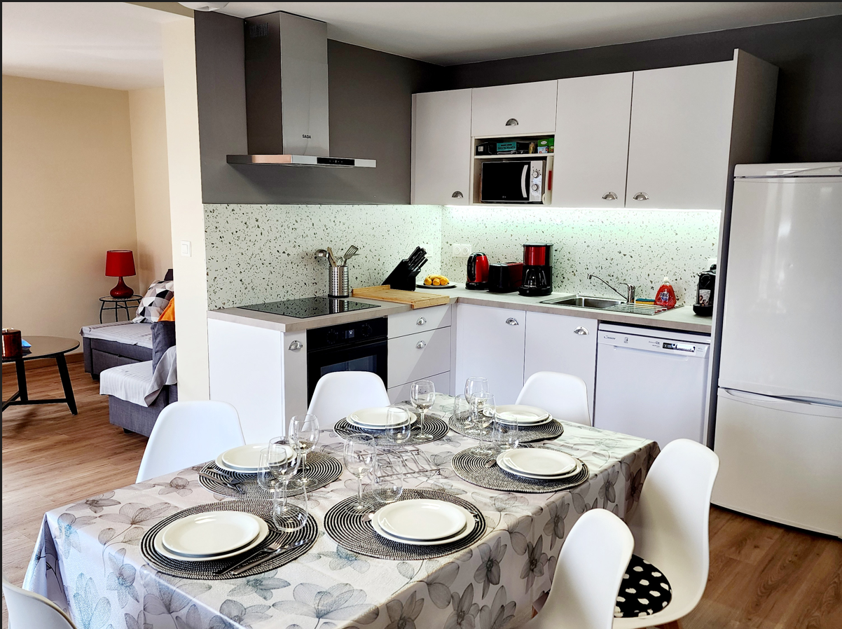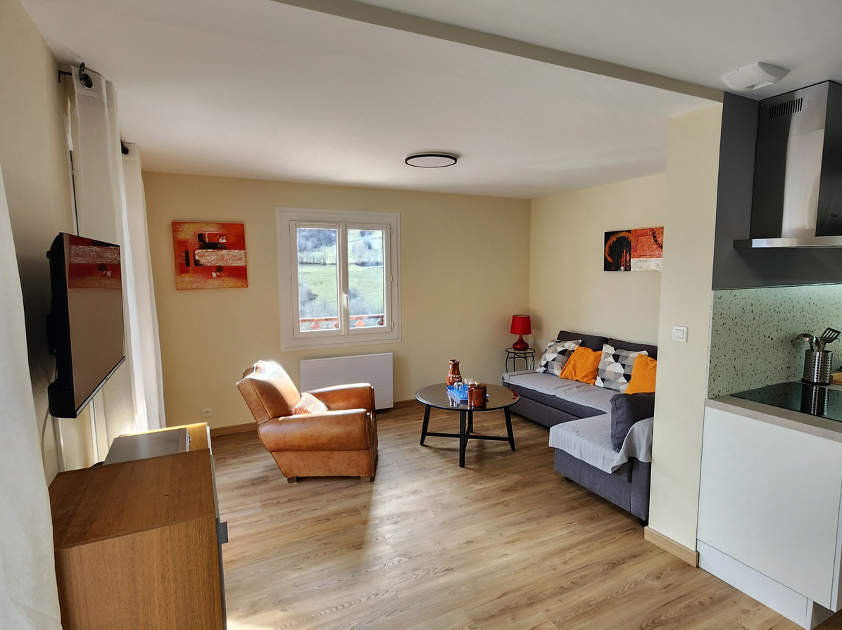 Ground floor flat in a small residence located between Luchon and Peyragudes in Castillon de Larboust. It has south-east exposure, a large 20 m² terrace and private parking. It is light and bright. There are uninterrupted views of the surrounding mountains. The windows are fitted with mosquito nets and shutters. It has WIFI and a workspace. It comprises : A large living room with a sofa bed, armchair, coffee table, lounge unit and flat-screen TV, A fully fitted open-plan kitchen with hob, extractor hood, multifunction oven, microwave, dishwasher, fridge and freezer. Fully equipped with crockery, pots and pans and small electrical appliances. Dining area with dining table and six chairs. Two bedrooms, one with a 160*200cm bed and 2 individual pieces of furniture for storing clothes, the second with 2 individual 90*190cm beds that can be joined together to form a double bed, two bedside tables, a 2.40m headboard and two 75*202cm wardrobes for storing clothes. A fitted utility room with wardrobe, ironing board and iron, tumble dryer, hoover, cleaning products and cleaning kit. A bathroom with a large glass-enclosed shower, vanity unit with washbasin, drawer unit, hairdryer, floor-standing towel rail and electric towel rail, mirror with wall light. Separate WC, wall-hung WC with wall-mounted fixtures, floor-standing brush and toilet paper holder, waste bin.
