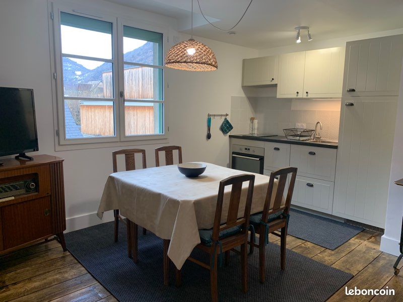 On the 2nd floor, 44 m2, mountain views, 2 bedrooms, furnished for 4 people. Rating *** Living room with flat-screen TV, sofa, table and chairs. Fully-equipped kitchen (oven, 2-burner induction hob, microwave, coffee maker, integrated fridge/freezer, raclette machine, toaster, kettle and all kitchen utensils). One bedroom with 160x200 bed, wardrobe and hanging space. One bedroom with 2 beds 90x190, shelves and wardrobe. (Sheets, pillows, duvets and bedspreads for each bed). Bed linen can be hired for 30 euros for the 2 bedrooms. Shower room with vanity unit, shower, wall-hung WC and hairdryer. Access to a pleasant communal garden with tables and chairs, barbecue. Deposit: 300 euros and Cleaning deposit: 50 euros. RATES: 240 to 600 euros per week, depending on the period. Tourist tax not included. No smoking - Pets not allowed