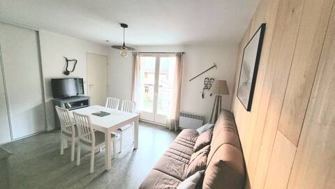 Accommodation includes : -1 bedroom with double bed (140cm) -1 cabin area with 2 bunk beds (90cm) -1 Clic Clac Fully-equipped kitchenette (Senseo coffee machine, induction hob, raclette machine, etc.) -Shower room with bath, separate WC -Pleasant balcony with view, equipped with table and 4 chairs -Wi-Fi -Secure car park Passenger access Private parking space in the residence with secure entrance. Other services Luchon Concierge, a tourist concierge service, will be on hand to welcome you between 3pm and 7pm. Our partner will contact you before your arrival to organise your stay. You can contact him if necessary. For arrivals from 8pm to 9pm: a supplement of €10 will be payable on site and €15 from 9pm to 10pm. LBS, the concierge service, offers bed linen and towels for hire, and you can also order cleaning at the end of your stay.