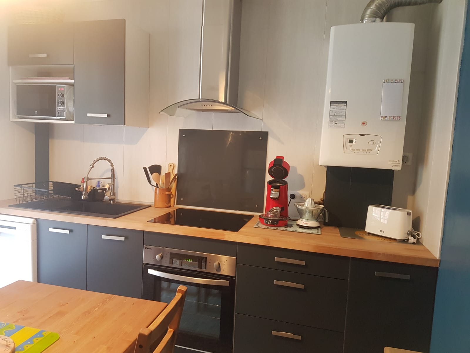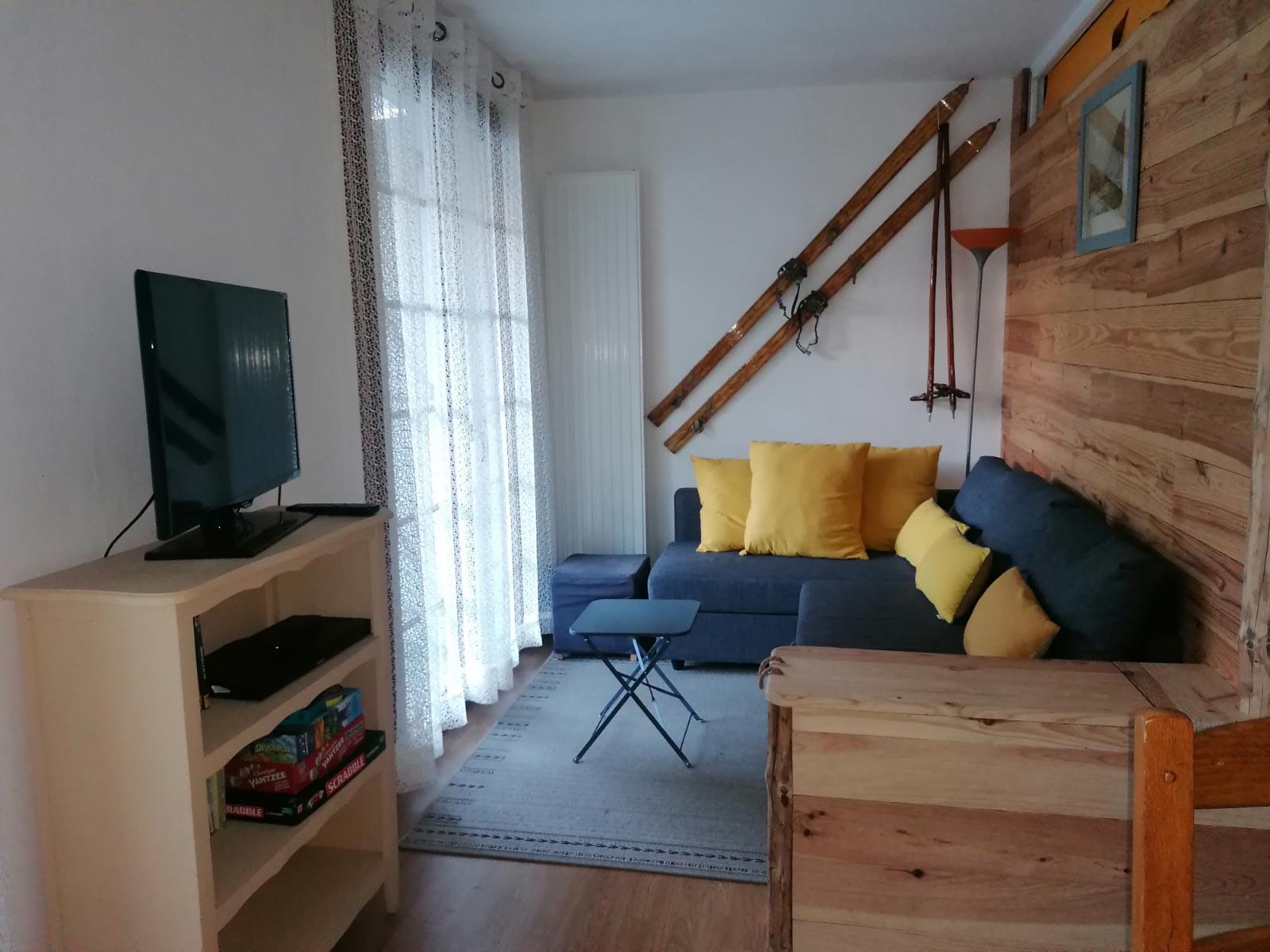 Pleasant 67m² flat close to the cable car, on the 1st floor, east/west facing. 1 large entrance hall. 1 large living room with sitting area: television, DVD player, board games..... 1 fully-equipped kitchen: fridge/freezer, ceramic hob, oven, microwave, dishwasher, filter and Senséo coffee makers, kettle, toaster, raclette maker..... 1 sleeping area: 1 double bed (140cm) with 1 large wardrobe/cupboard. Ironing board and iron. 1 large bedroom: 2 bunk beds + 1 pull-out bed, 1 BZ, 1 large wardrobe/closet. 1 shower room: walk-in shower, hairdryer, washing machine. Separate WC. Bike shed.