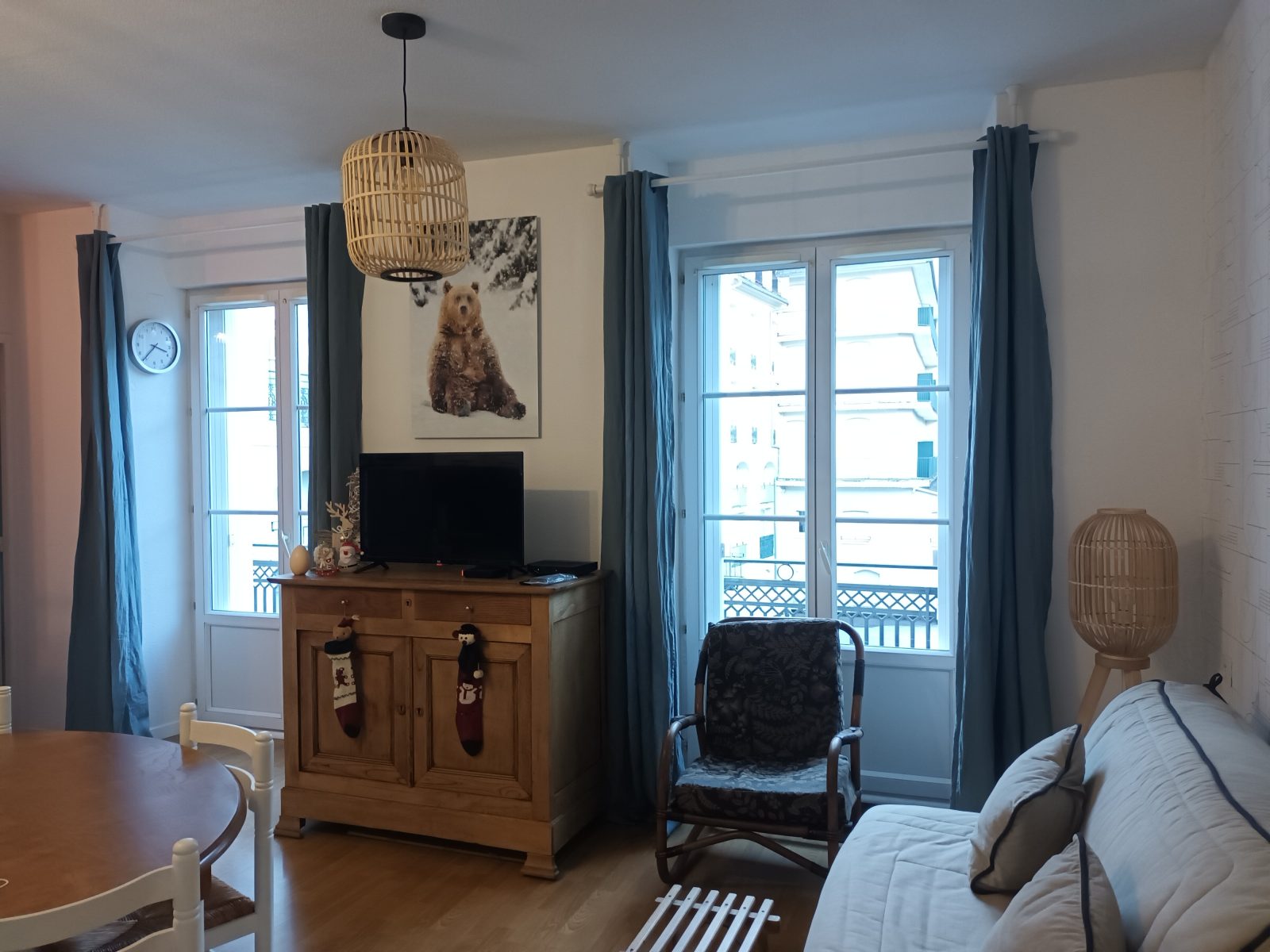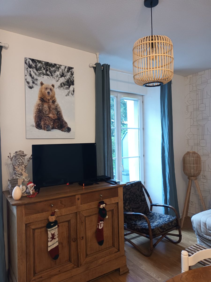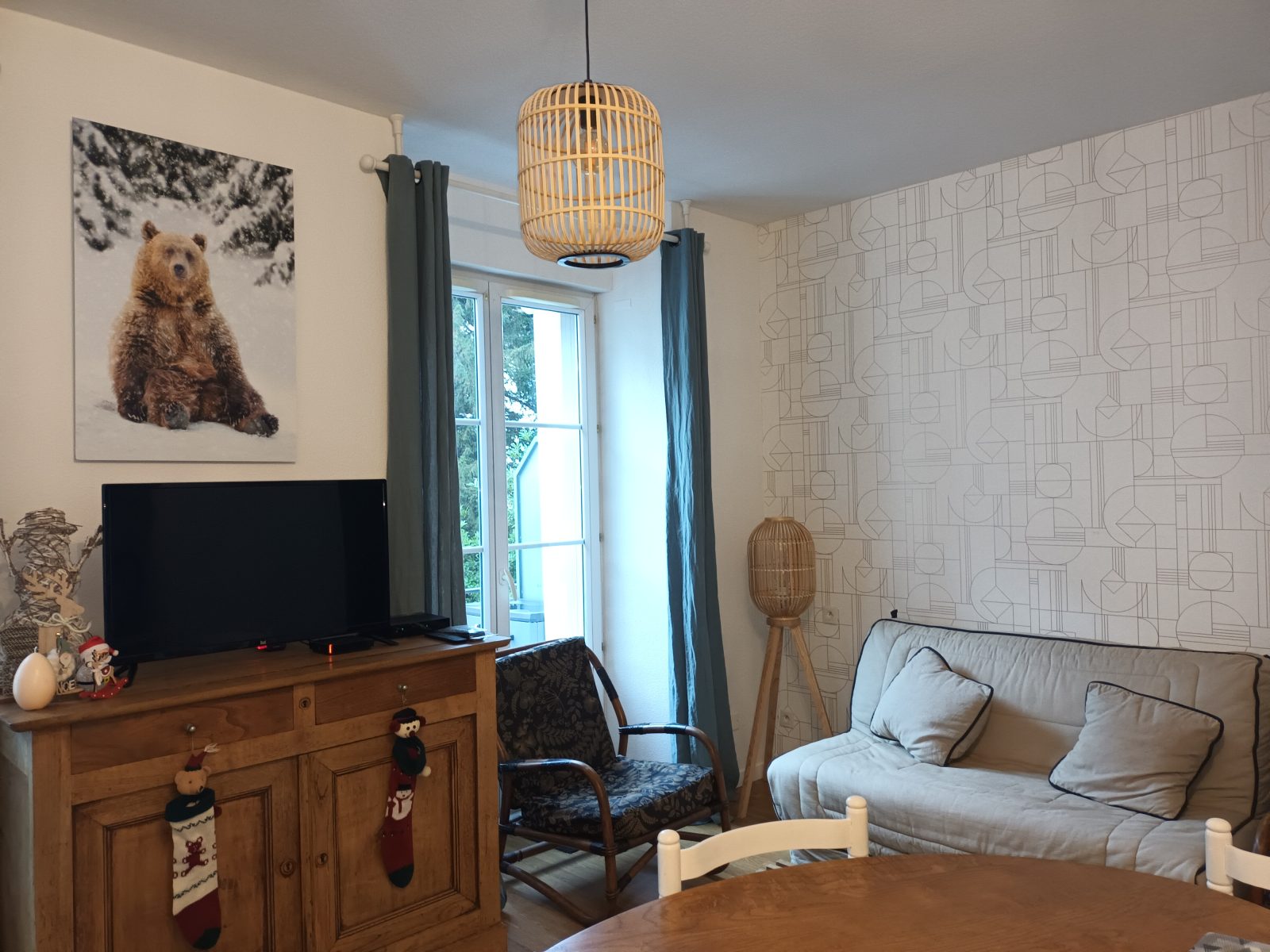 It comprises a bedroom with a 160x200 bed, a small bedroom with a 90x190 bunk bed and a 130x190 BZ sofa bed. The main room is fully equipped: sofa bed, 2 armchairs, flat-screen TV, orange TV, WiFi. The kitchen is brand new, with induction hob, fridge-freezer, dishwasher, coffee machine, microwave, plancha, raclette grill, toaster, etc. The bathroom is equipped with a shower, vanity unit and hairdryer. The WC is separate. The flat has a washing machine. Possibility of renting with linen (sheets, towels and tea towels and beds made on arrival at extra cost). Private, closed cellar for storing bikes or skis. It is south-facing with a balcony and a small lounge area where you can enjoy a coffee with a magnificent view of the mountains. Baby equipment available free of charge. Weekly rental for all seasons, weekend rental (2 nights) or for a health cure (special rates). Prices from €35 per night, depending on the season. Don't hesitate to ask. Ideal for a great holiday in a luxury residence with lift. We are the owners and live close to the flat.