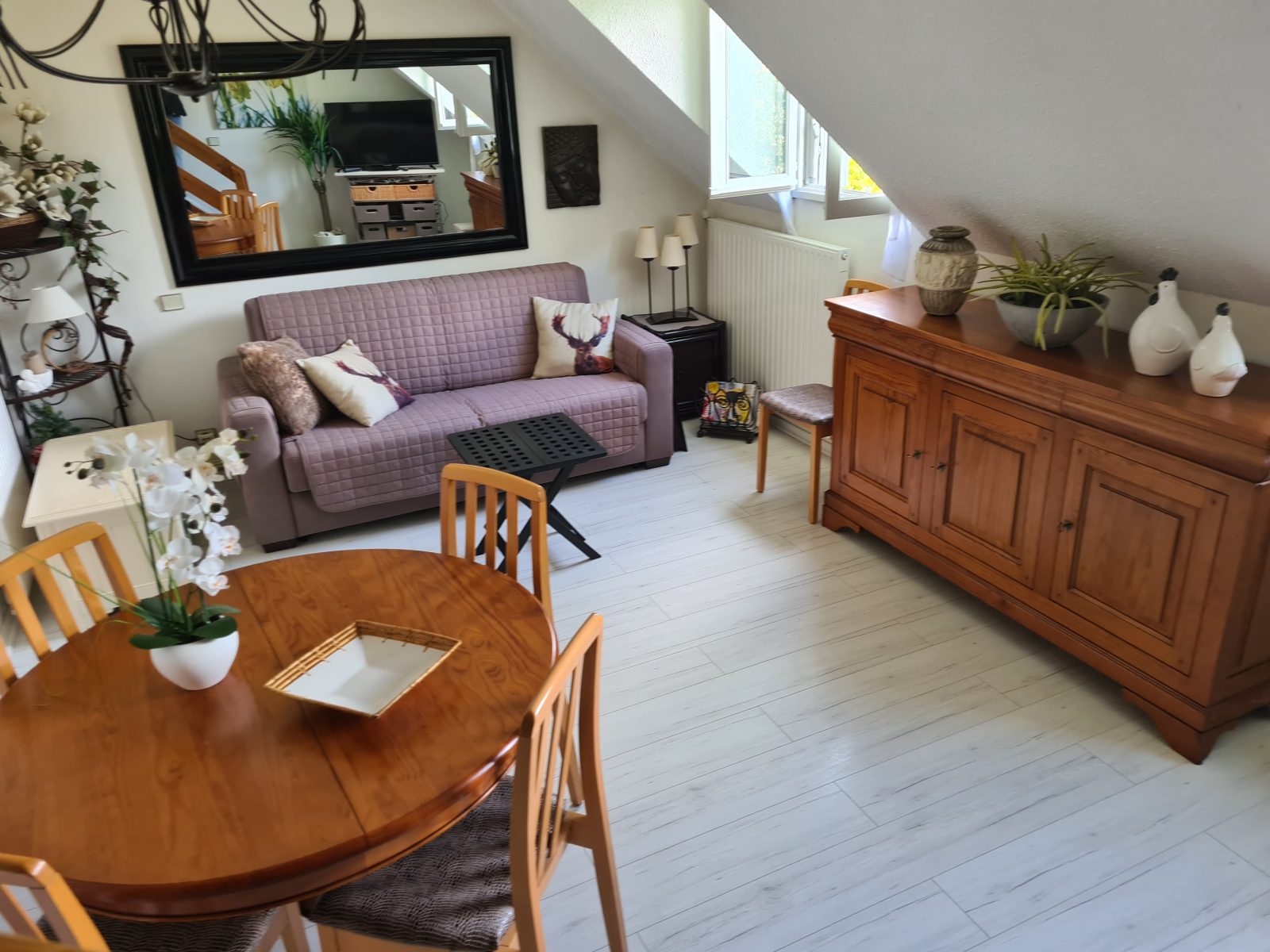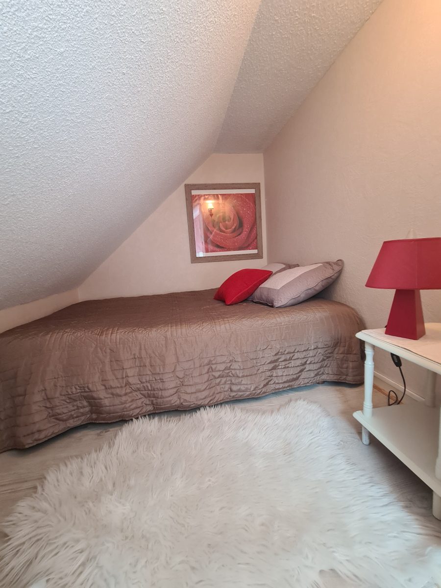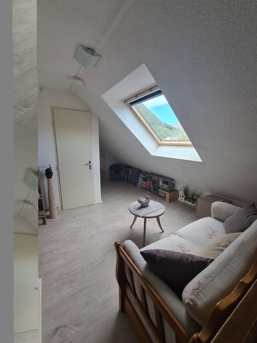 Very quiet T3 duplex flat of 72m2, completely refurbished. Lift. Very sunny. Beautiful unobstructed view of the mountains. Close to all shops and thermal baths. Beautiful main room with all the necessities. Bathroom with walk-in shower. 2 WCS. Large bedroom with 140cm bed and flat screen TV (attic bed). Bedroom with 2 single beds (90cm). Mezzanine for children's games or sunny reading. Laundry room at the bottom of the building.