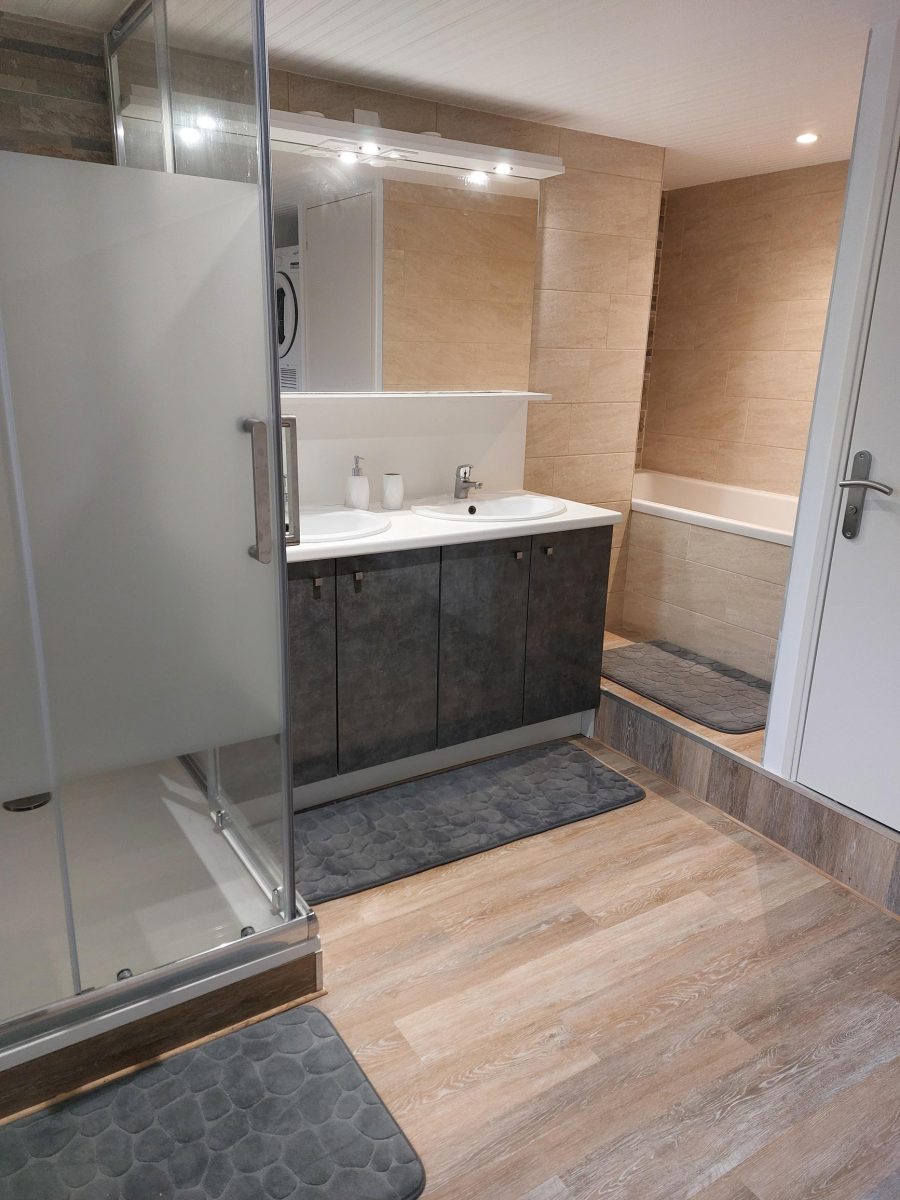 South-east facing flat comprising a ground floor living room with kitchen, dishwasher, washing machine and tumble dryer. Oven and microwave. First floor: bedroom with 1 double bed (140cm) and bedroom with 2 single beds (90cm). WC. Level -1 has a bedroom with 1 double bed (140cm) and a bathroom with WC, separated by a door. At the entrance you will find a wardrobe with space for skis.