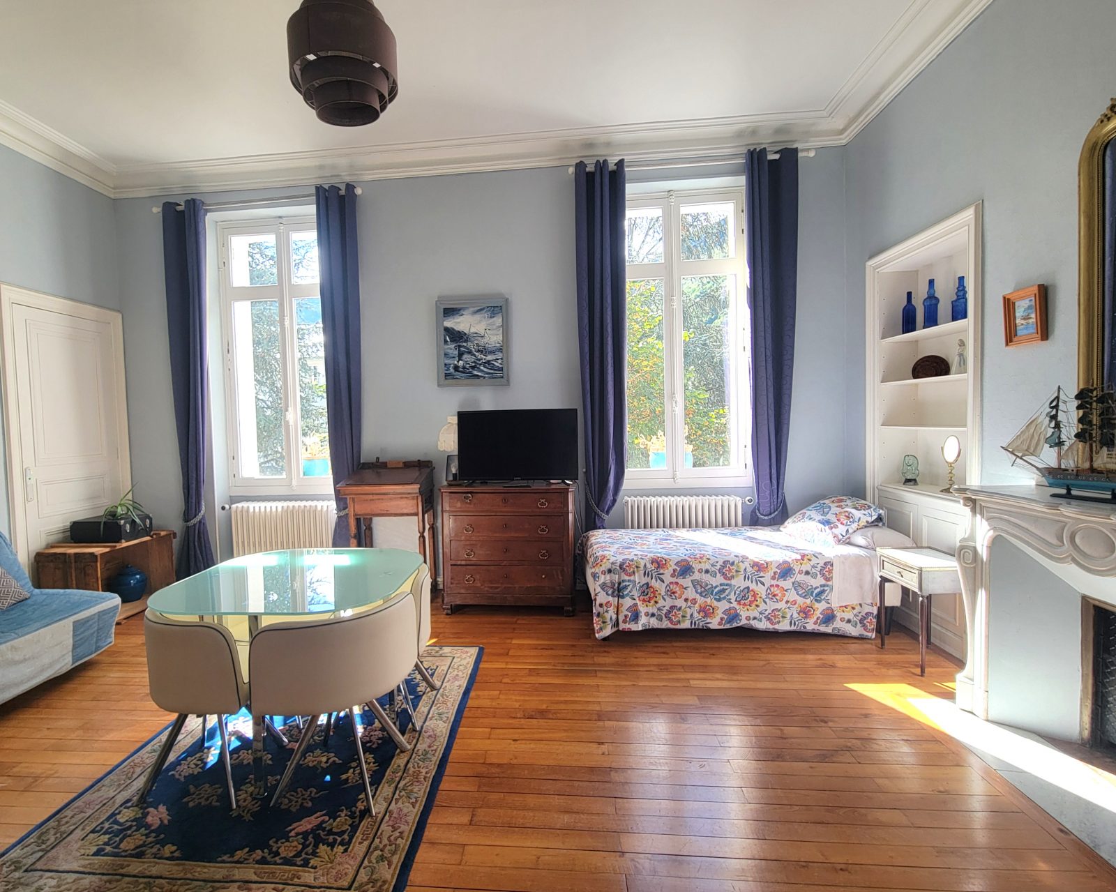 Charming 2-bedroom apartment in a character villa in Luchon. - Spacious living room with comfortable sofa, flat-screen TV and 2 single beds. - One double bedroom. - Fully-equipped kitchen (washing machine, oven, microwave, gas hob). - Shower room. - Separate WC. - Double-glazed windows. - Wifi connection. Access to communal areas: large kitchen with fireplace, terrace, garden and billiards room, ski and bike room. Ideal for a friendly stay in the heart of the mountains. Right in the centre and close to the thermal baths and Allées d'Etigny.