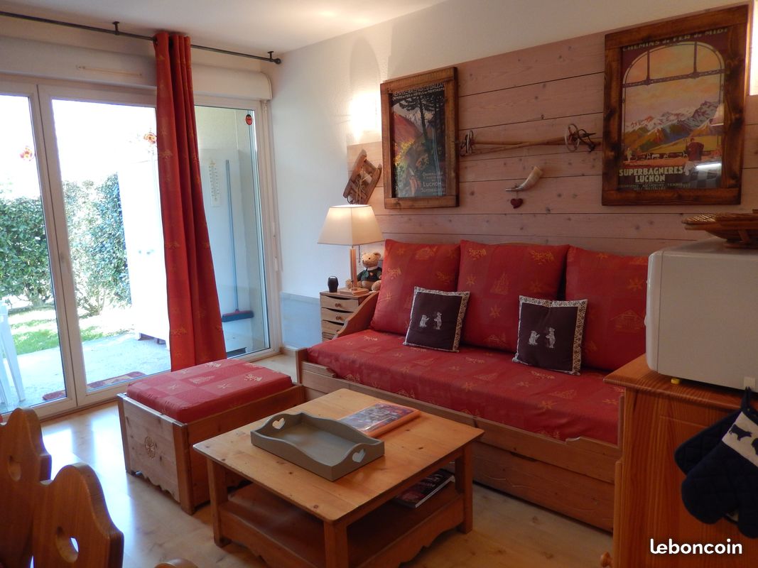 Seasonal rental : Ideal family holiday flat T3, sleeps 6, ground floor with terrace and garden in a 2* residence in Luchon. Private ski locker. Large living room with fitted kitchen opening onto terrace. Kitchen: fridge, induction hob, dishwasher, extractor fan, mini oven, microwave, kettle, coffee maker, toaster, raclette machine, etc + washing machine. Bedroom 1 with double bed (140cm), wardrobe, window with roller shutter. Bedroom 2 with 2 bunk beds, wardrobe, window with roller shutter + baby cot with mattress (+ some baby equipment). Living room: sofa bed for 2 people sleeping 80 or 160, 80 cm flat-screen TV. Bathroom: shower, hairdryer. Separate WC. Fan. In the residence: boules pitch, table tennis, volleyball and free parking. Semi-covered swimming pool (June to mid-September). Shuttle bus stop at the entrance to the residence for spa guests and skiers. Prices vary according to period: please contact us. Holiday vouchers accepted. Deposit 300€. Close to Spain, Loudenvielle and food shops. Ski hire available. Activities : Hiking, Lake Oo,. Tree climbing, skiing, mountain biking, paragliding, rafting, fishing...