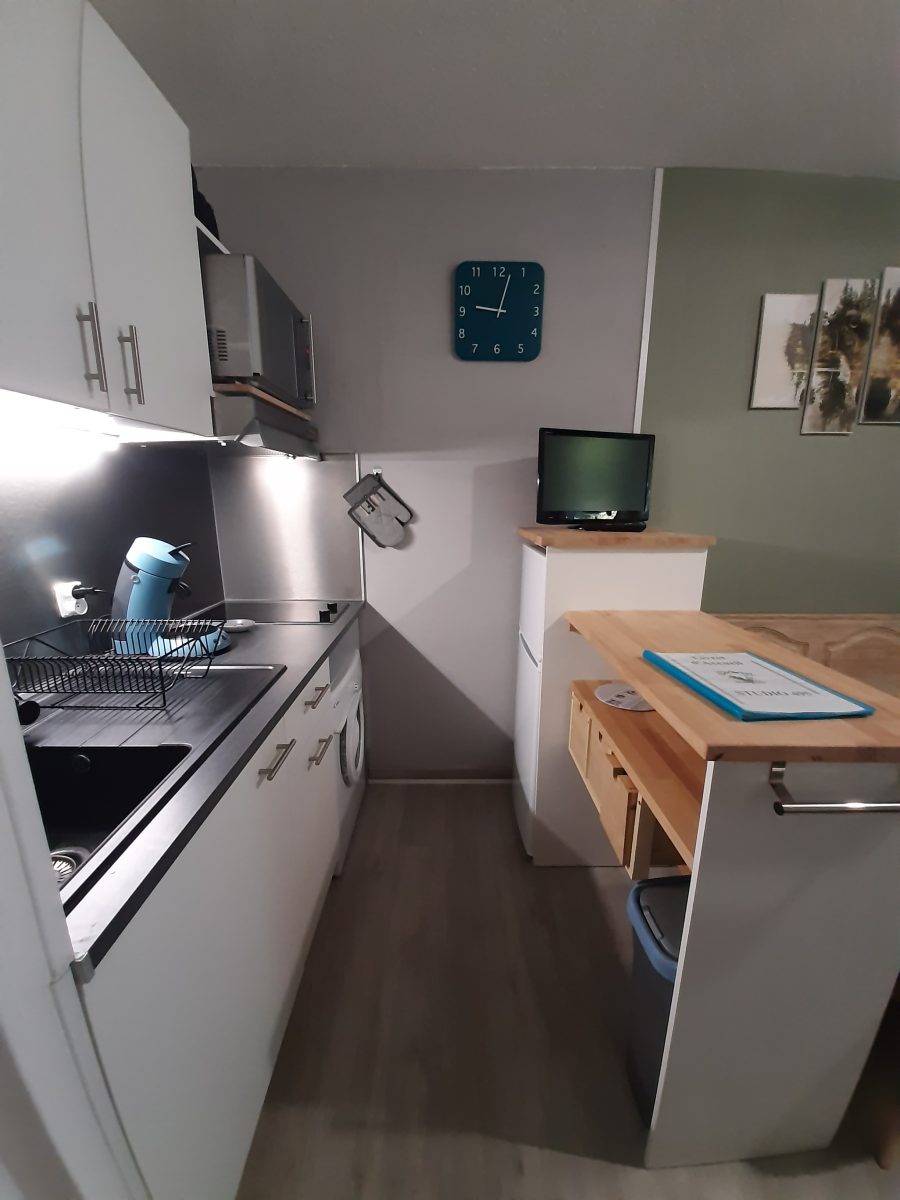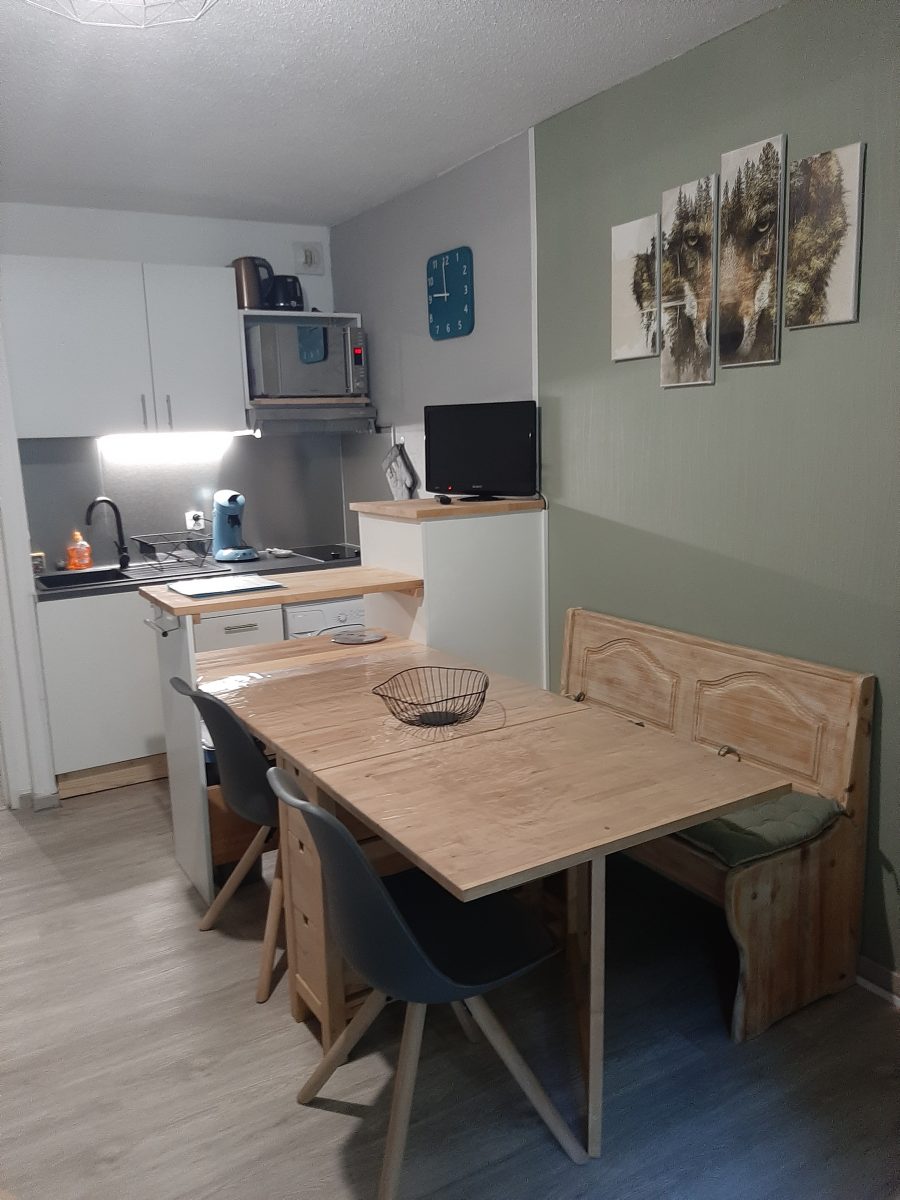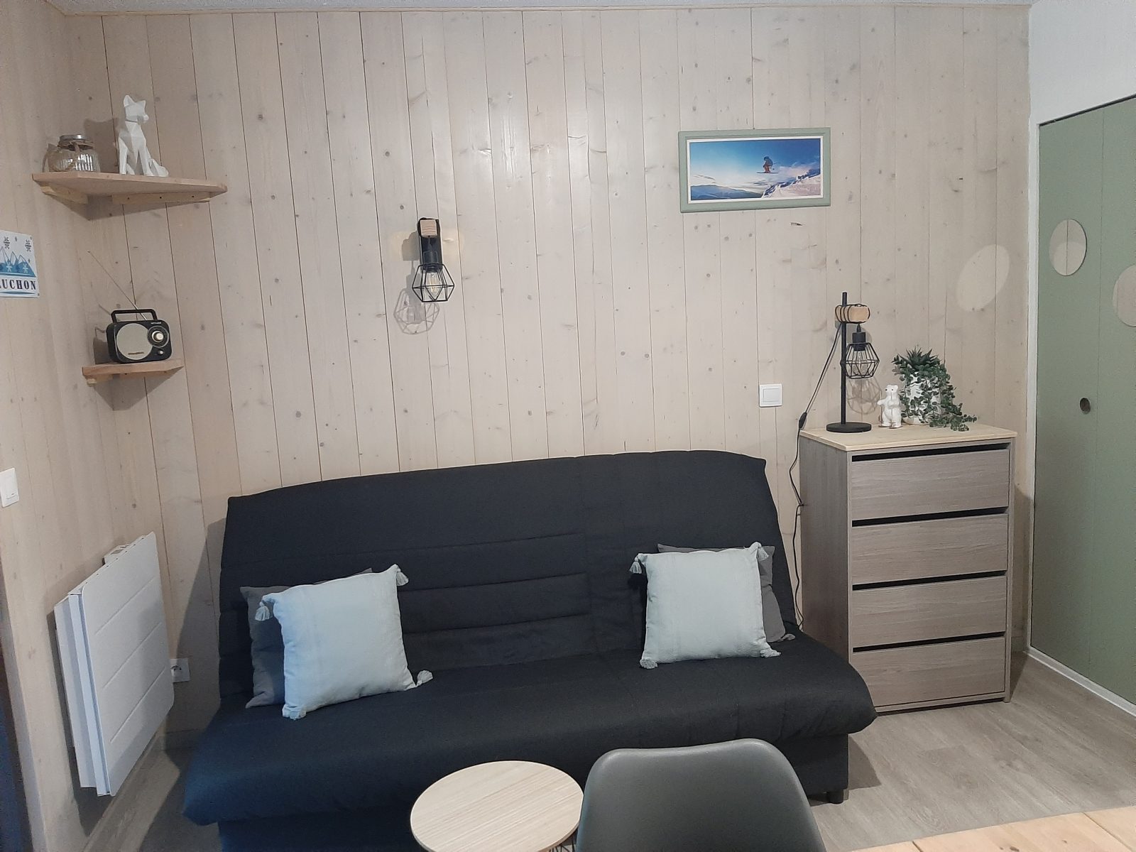 Renovated studio T1 Bis cabine 24m2 in Bagnères de Luchon in the Terrasses d'Etigny residence with lift: cosy, quiet and family-friendly.