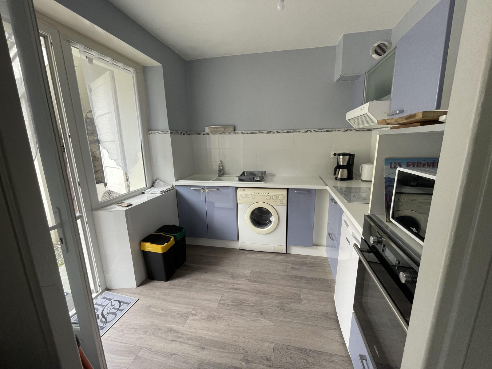 On the ground floor of a house divided into two flats. At the entrance to St-Mamet, a 5-minute walk from the Luchon thermal baths, it is set back from the main street, so you can enjoy the courtyard and admire the mountain views in peace and quiet. Ideal for families, skiing, health spas, but also for meals. Pleasant flat with one bedroom, 1 sleeping area, lounge, dining area and fully-equipped kitchen.