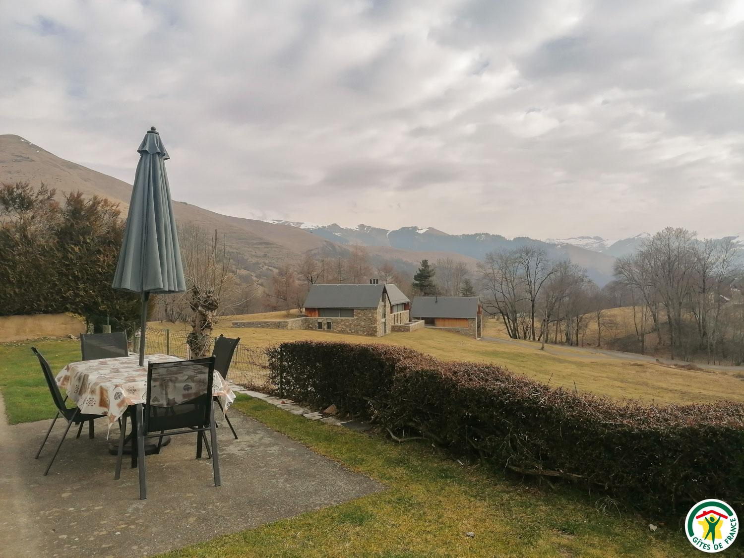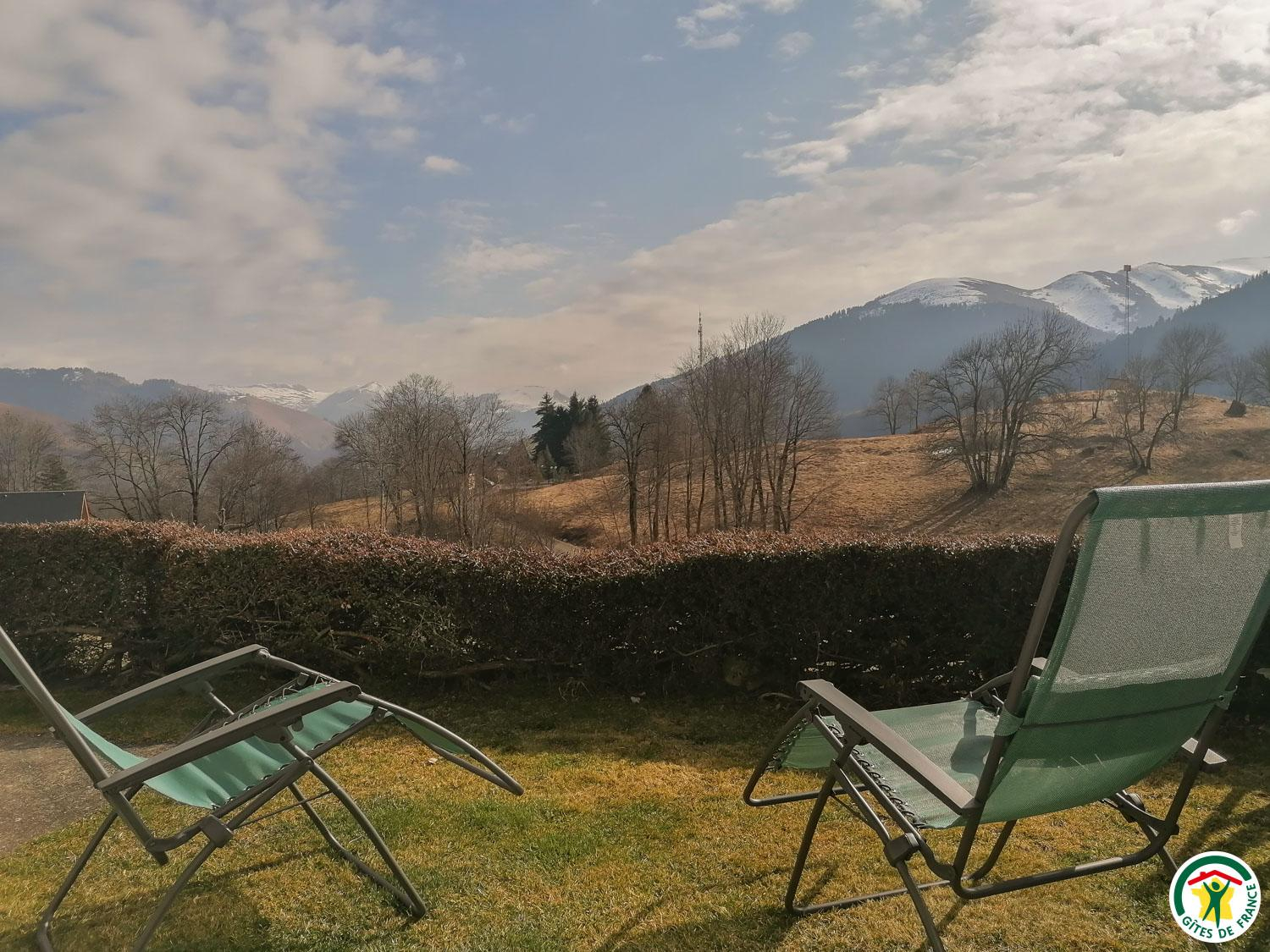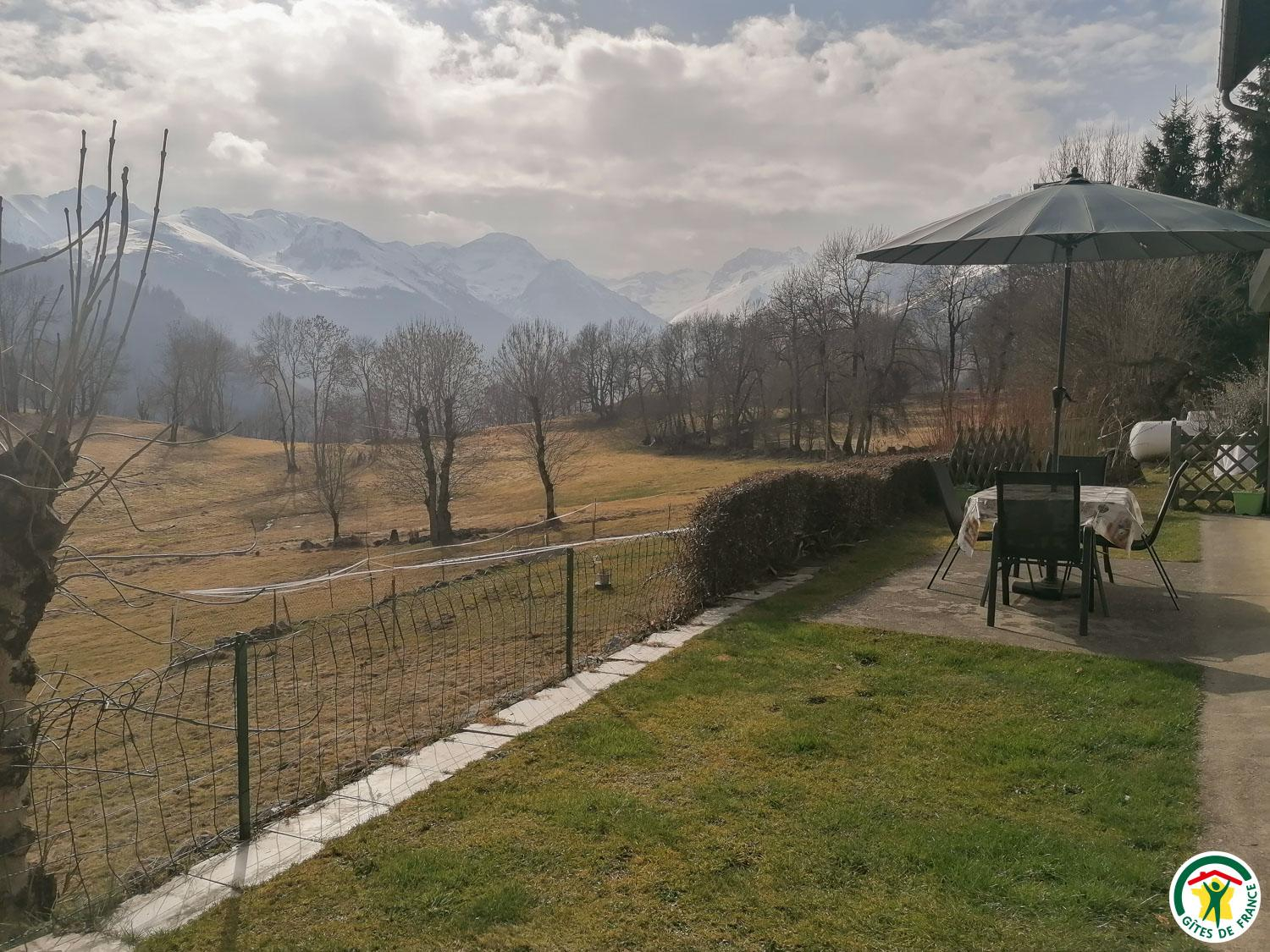 Semi-detached holiday rental for 5 people, in Garin, 5km from the ski and summer resort of Peyragudes and 9km from Bagnères-de-Luchon. Private enclosed garden. Pets allowed. Internet access available. Single-storey gîte located on the garden level of the owners' house, with its own entrance. Large picture windows give you an uninterrupted panoramic view of the Pyrenees. Room for skis, bikes... Bagnères-de-Luchon 9km away (skiing, thermal baths, cinema, restaurants, shops, horse-riding, rafting, canoeing, lake, golf, paragliding and gliding). Peyragudes resort (5km), Sourcéa spa and fitness centre (9km), Rocher escalade (9km), balneotherapy centre (Loudenvielle - 18km), Spain (11km). Entrance into kitchen, living room with sitting area (convertible double bed 140cm), shower room with WC, bedroom with adjoining storage area (1 double bed 140cm and 1 single bed 90cm). Electric heating. Toulouse/Luchon SNCF train line