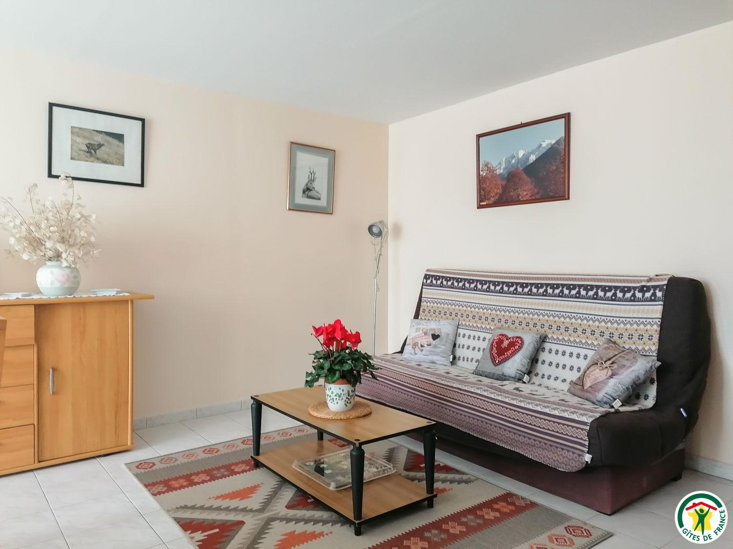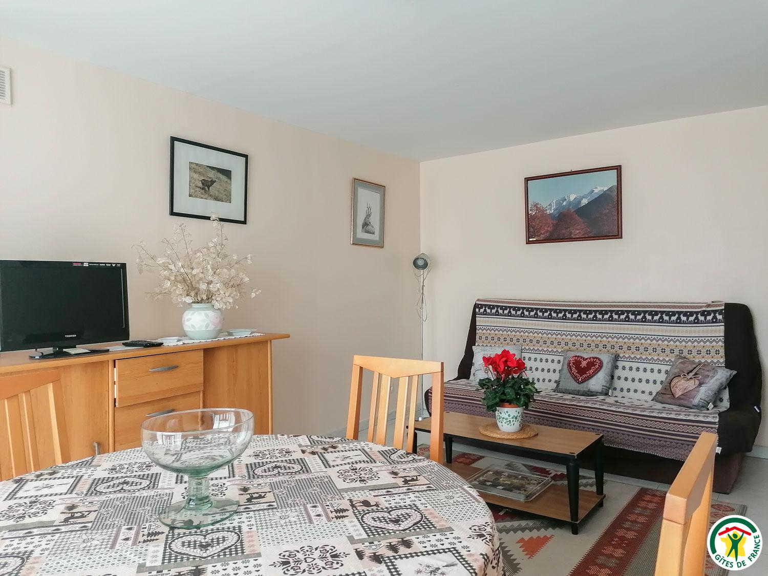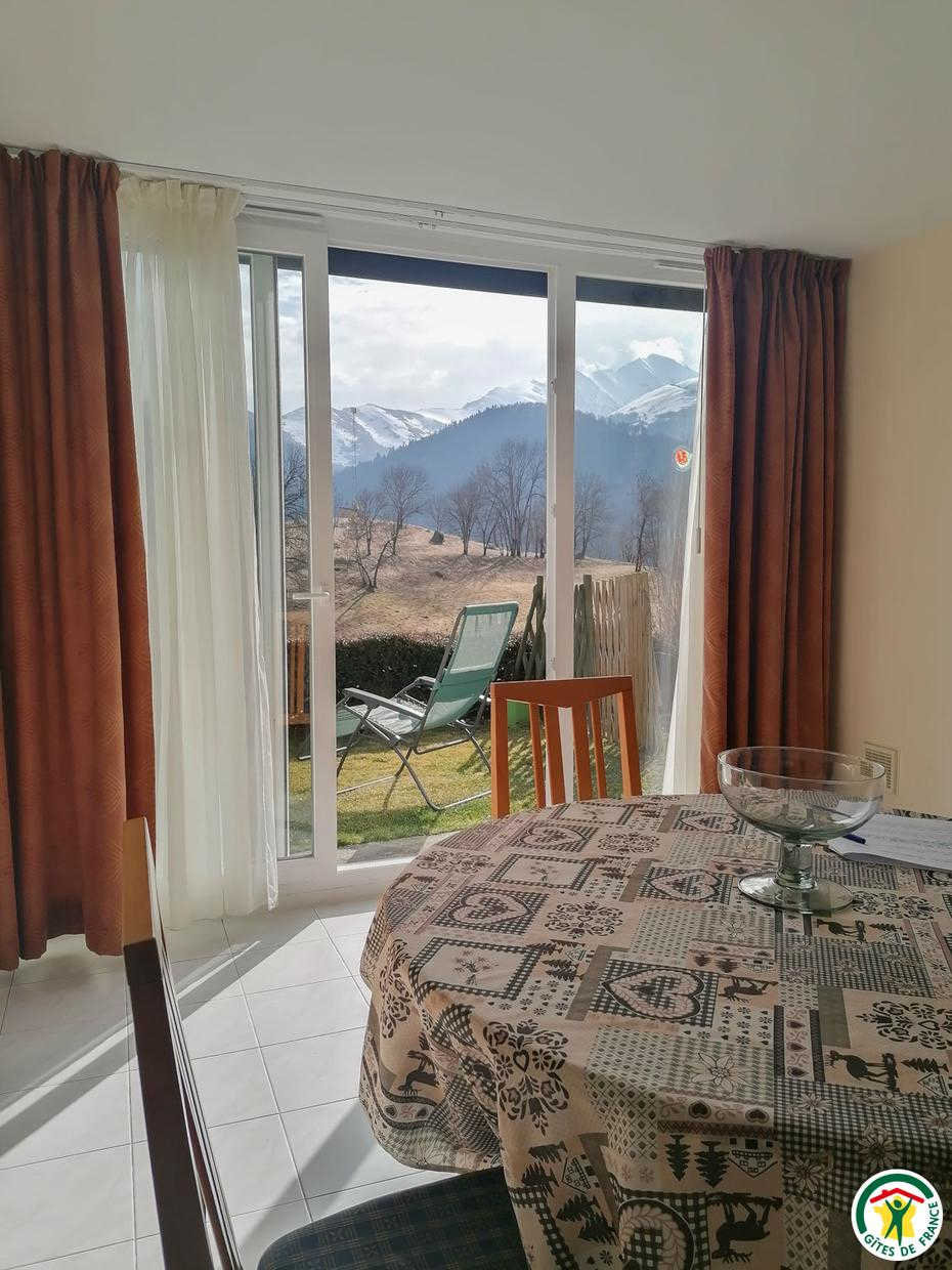 Semi-detached holiday rental for 5 people, in Garin, 5km from the ski and summer resort of Peyragudes and 9km from Bagnères-de-Luchon. Private enclosed garden. Pets allowed. Internet access available. Single-storey gîte located on the garden level of the owners' house, with its own entrance. Large picture windows give you an uninterrupted panoramic view of the Pyrenees. Room for skis, bikes... Bagnères-de-Luchon 9km away (skiing, thermal baths, cinema, restaurants, shops, horse-riding, rafting, canoeing, lake, golf, paragliding and gliding). Peyragudes resort (5km), Sourcéa spa and fitness centre (9km), Rocher escalade (9km), balneotherapy centre (Loudenvielle - 18km), Spain (11km). Entrance into kitchen, living room with sitting area (convertible double bed 140cm), shower room with WC, bedroom with adjoining storage area (1 double bed 140cm and 1 single bed 90cm). Electric heating. Toulouse/Luchon SNCF train line