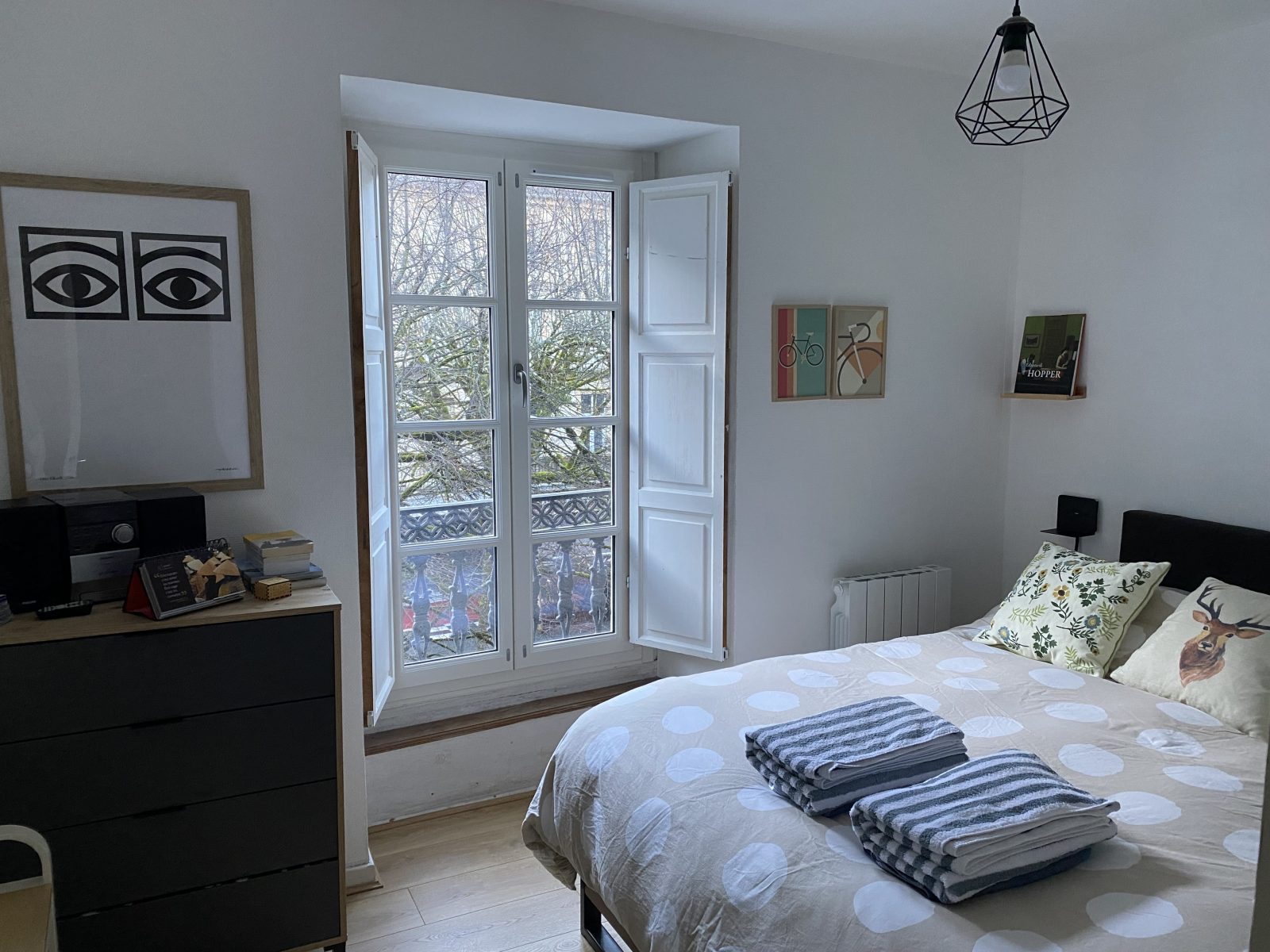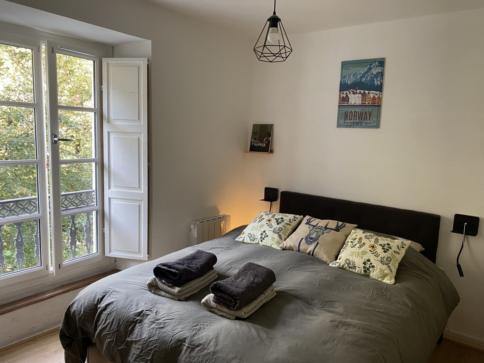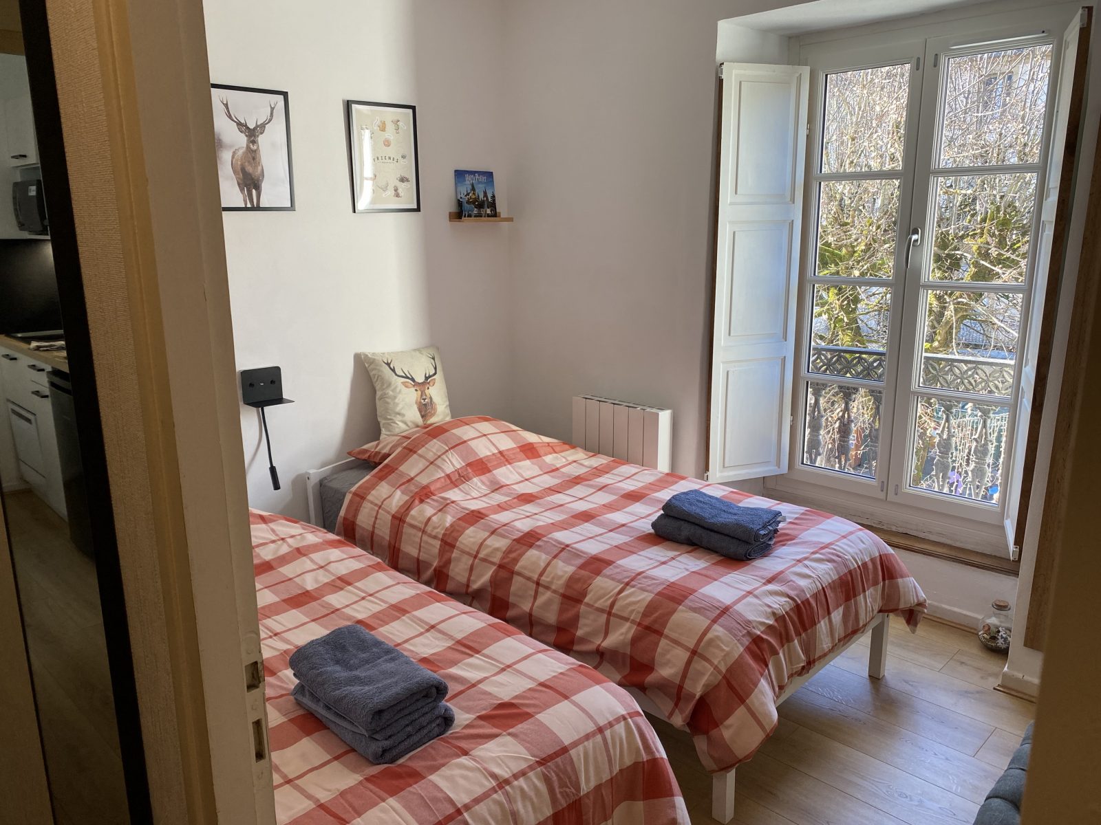 The space comprises 2 bedrooms: - the first bedroom has a comfortable 160 cm king-size bed. - second bedroom with two 90 cm single beds The floor is parquet. The bathroom has an Italian shower suitable for people with reduced mobility, and the WC is integrated into the shower room. The flat also has a fully-equipped kitchen, including dishwasher, Nespresso machine and washing machine, ideal for preparing meals. The flat faces south-west, offering views of the mountains, cable cars and Allées d'Étigny, with exceptional light. The century-old trees lining the Allées create a green, soothing and relaxing atmosphere. The furnishings are of the highest quality and care, and the rooms are comfortable and refined. You can also take advantage of a high-performance fibre-optic Internet connection and Orange TV. The building is equipped with a lift for easy access, and private parking is available at no extra charge. In addition, a bicycle garage and ski room are available for extra storage. A luxury stay: Rated "excellent" by travellers on Booking and Airbnb, including curists who have stayed recently, this flat combines central location, modern comfort, historic charm and leafy atmosphere, ideal for a family holiday or a getaway in the heart of Luchon.
