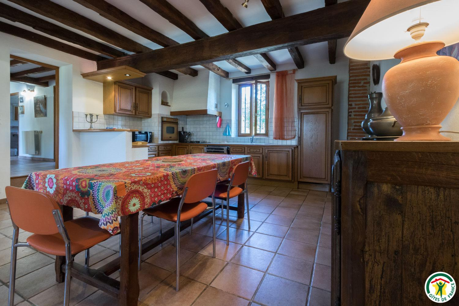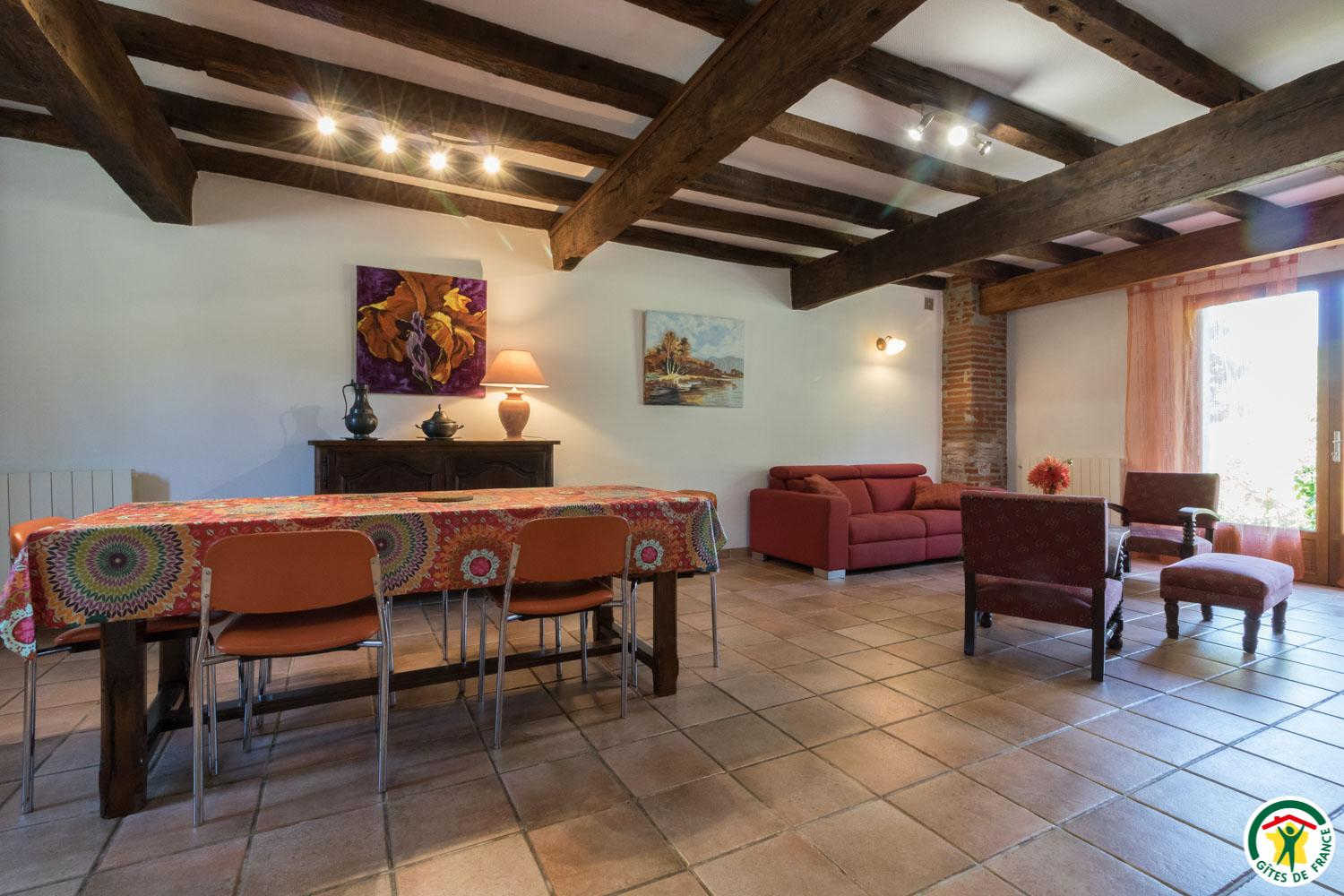 Semi-detached holiday rental for 4 people, in Le Lherm, 30km south-west of Toulouse. Unenclosed communal garden. Swing, swing set, tennis court, table tennis, barbecue available. Pets not allowed. Internet access available. Gîte with tennis court. On a farm. Old restored cowshed, adjoining the owners' house. Large communal, flower-filled, unfenced plot. Private terrace. Covered shed. Shared tennis court with owners, children's games (swing, table tennis). You are 5km from the Sainte-Foy-de-Peyrolière fishing lake, 12km from Muret (beach, swimming, water park, shops, restaurants, the Garonne river with the Via Garona hiking trail and the Trans Garona cycling trail, the route de Saint-Jacques-de-Compostelle) and Rieumes with the Tépacap adventure and leisure park, as well as 20km from the Source Wake-Park in Carbonne. Toulouse and the market town of Samatan (Gers department) are 30km away. Ground floor: entrance hall with wardrobes, living room with kitchenette (fitted) and sitting area, utility room, shower room/WC. First floor: mezzanine with 1 bed 90*190cm (plus 1 extra bed available), 2 bedrooms (1 double bed 140cm) (2 single beds 90cm), bathroom/WC, bookcase in hallway. Electric heating (storage heaters).