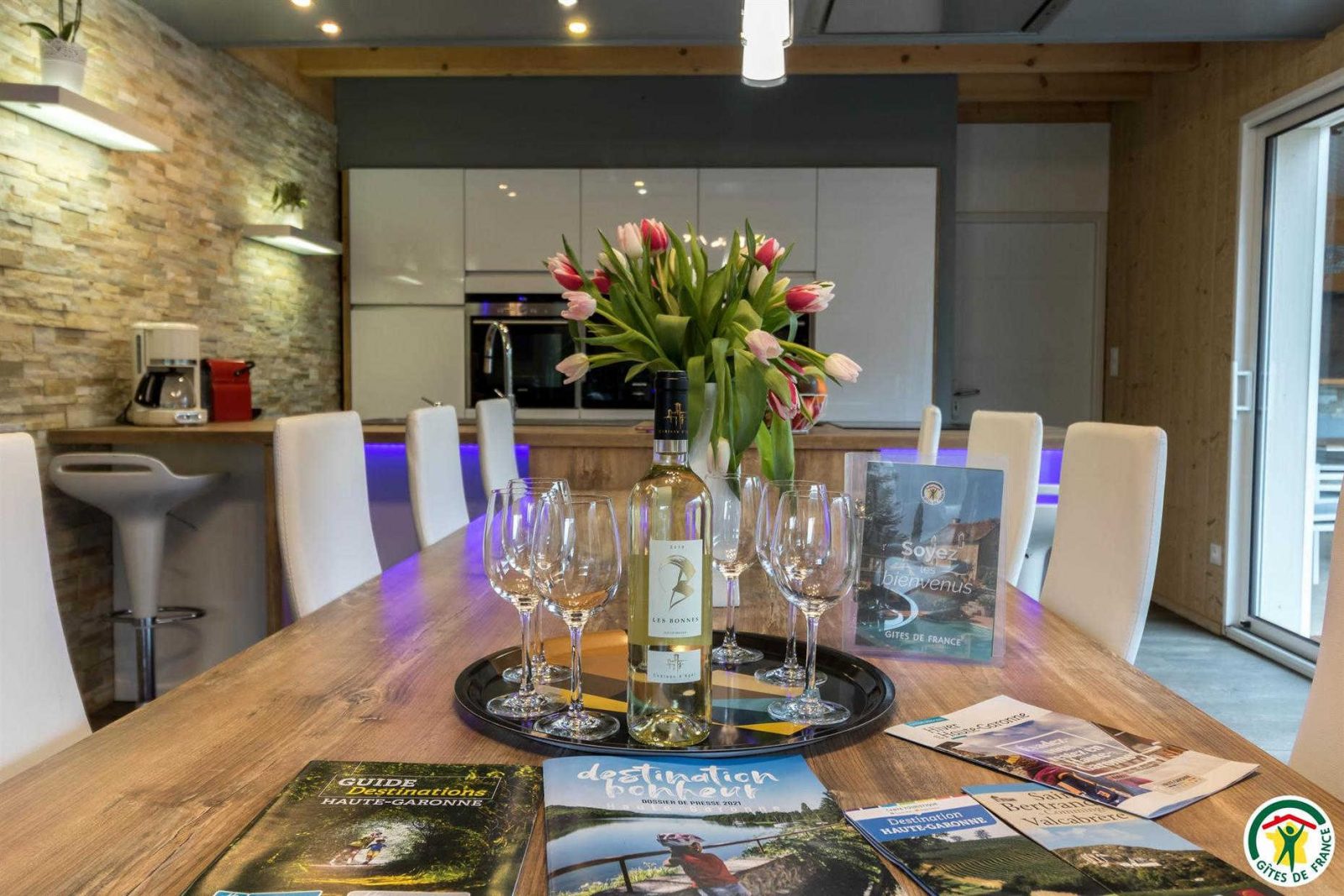 Villa "Casa Cosy" for 6 people in Saint-Mamet, near Bagnères-de-Luchon (town centre 1 km away). Activities and shops (on foot from the house): Bagnères-de-Luchon, Queen of the Pyrenees and Grand Site of the Occitanie Region (1km), Luchon-Superbagnères ski resort (17km), thermal baths, shops and restaurants, base d'Antignac situated (7km), Col de Peyresourde and the thermal baths of Loudenvielle. Peyragudes, the other ski resort, is 17 km away. The Pyrenees Hô adventure park (20km) and Saint-Bertrand-de-Comminges, one of France's favourite villages (35km), Bossost, in Spain (30 min drive). Gîte of 133m2 in enclosed grounds of 460m2. Ground floor: entrance with cupboard, living room of 48m2: lounge with 2 sofas and 140cm flat screen TV (sound bar and connected Bluetooth speaker), reversible air-conditioning in the living room and electric heating, fitted kitchen with Siemens appliances: pyrolysis oven, microwave oven, induction hob, built-in bean-to-cup coffee machine, Nespresso coffee machine, filter coffee maker, storeroom: 1 fridge-freezer, washing machine, tumble dryer, raclette machine, fondue machine and electric plancha, master suite: bedroom with 1 queen-size bed (160*200cm), a shower room (large Italian shower and double washbasin), a dressing room and a separate WC. Upstairs: games room with table football, desk and wheelchair, 120cm flat-screen TV, sofa, 2 bedrooms, each with 1 queen-size bed (160*200cm), en-suite shower room (Italian shower and washbasin) and private dressing room. No pets allowed. Air conditioning. Free recharging point for electric vehicles. Covered terrace. TELETRAVAIL (from 3 weeks, excluding July and August): a desk and armchair are available, as well as an electrical socket for a laptop, an extension lead and a power strip. High-speed internet connection (wifi). 4G telephone coverage (operator: Bouygues).