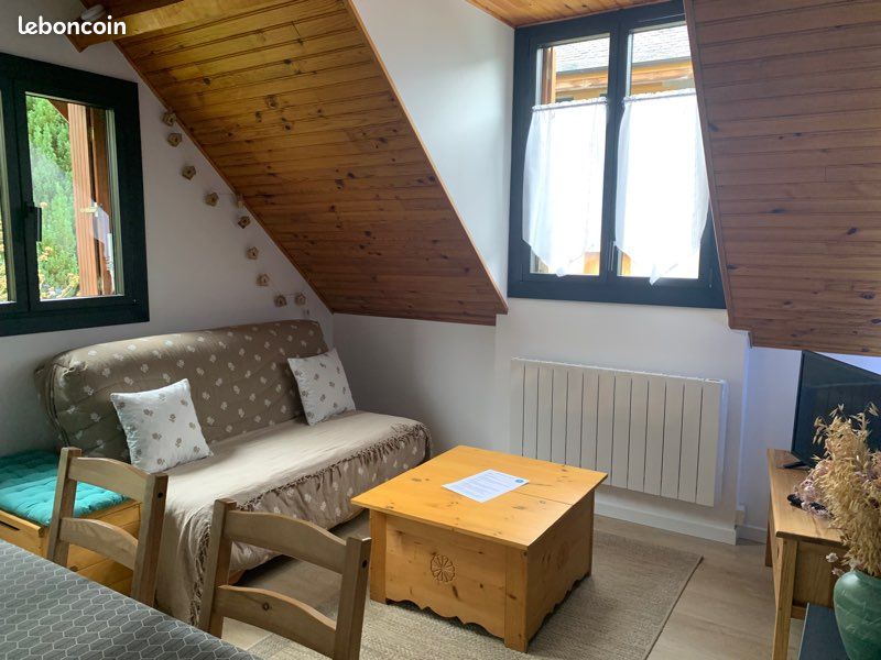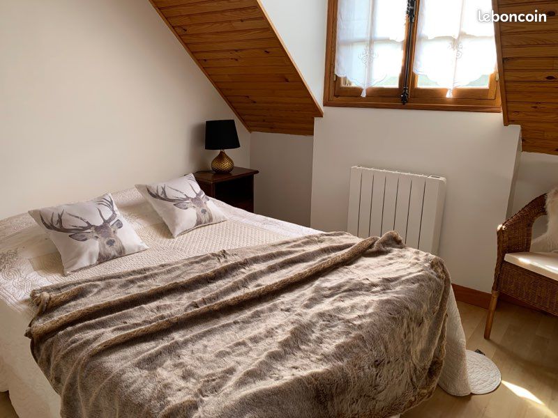 Attractive, fully renovated chalet-style house with 39 m2 living space, garden and swimming pool, shared with the owners' house, furnished for 4 people Classification *** Living room with flat-screen TV, internet connection (Wifi), sofa bed, table and chairs. Fully-equipped kitchen (oven, 2-burner induction hob, microwave, coffee maker, integrated fridge/freezer, toaster, kettle and all cooking utensils). Games, toys and books for children. Cot available on request. One bedroom with 160x200 bed, bedside tables and lamps, wardrobe. One bedroom with 2 beds 90x200, bedside table and lamp, storage space. (Sheets, pillows, duvets and bedspreads for each bed). Bed linen can be hired for 30 euros for the 2 bedrooms. Shower room with vanity unit, shower cubicle, washing machine, hairdryer and WC. Towels for hire at €20 for 4 people. Access to a pleasant garden with table and chairs, barbecue, sun loungers, table tennis and 5 x 12m swimming pool (open from June to September, weather permitting). Private parking space and electric vehicle charging point. Deposit: 300 euros and Cleaning deposit: 50 euros RATES: 240 to 600 euros per week, depending on the period. Tourist tax not included. No smoking - Pets not allowed