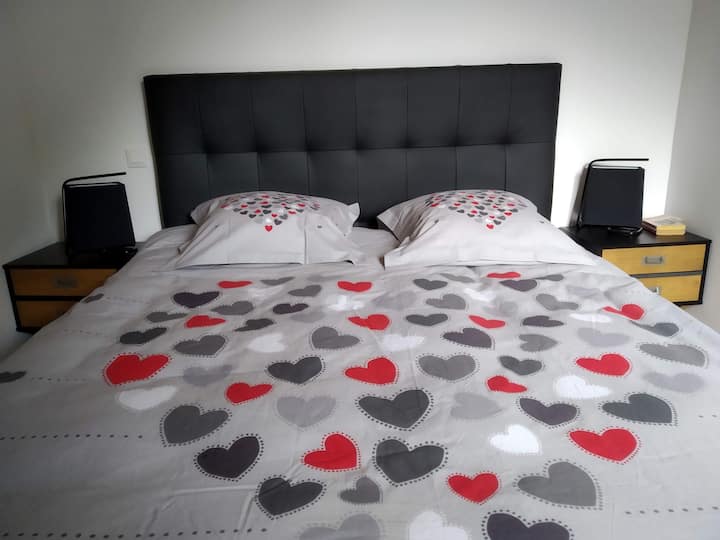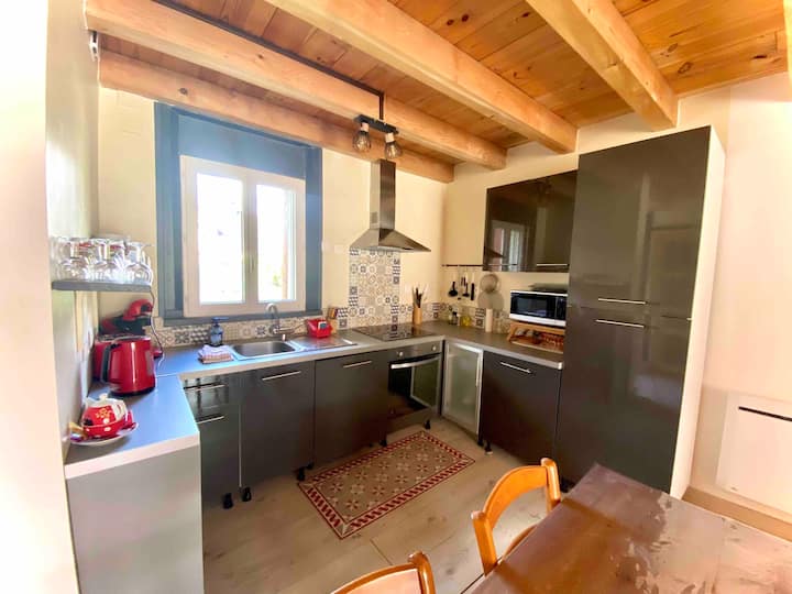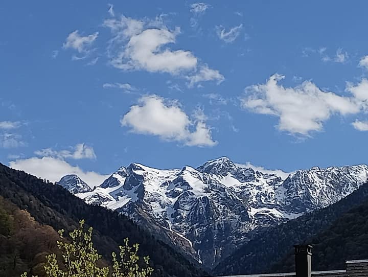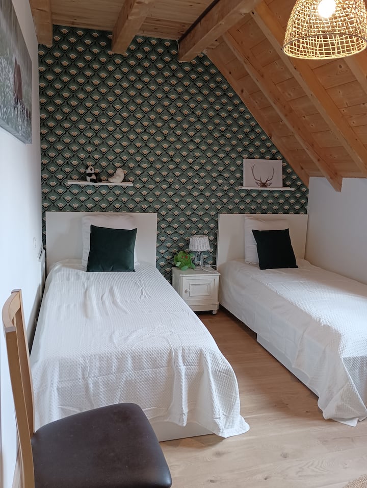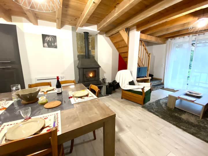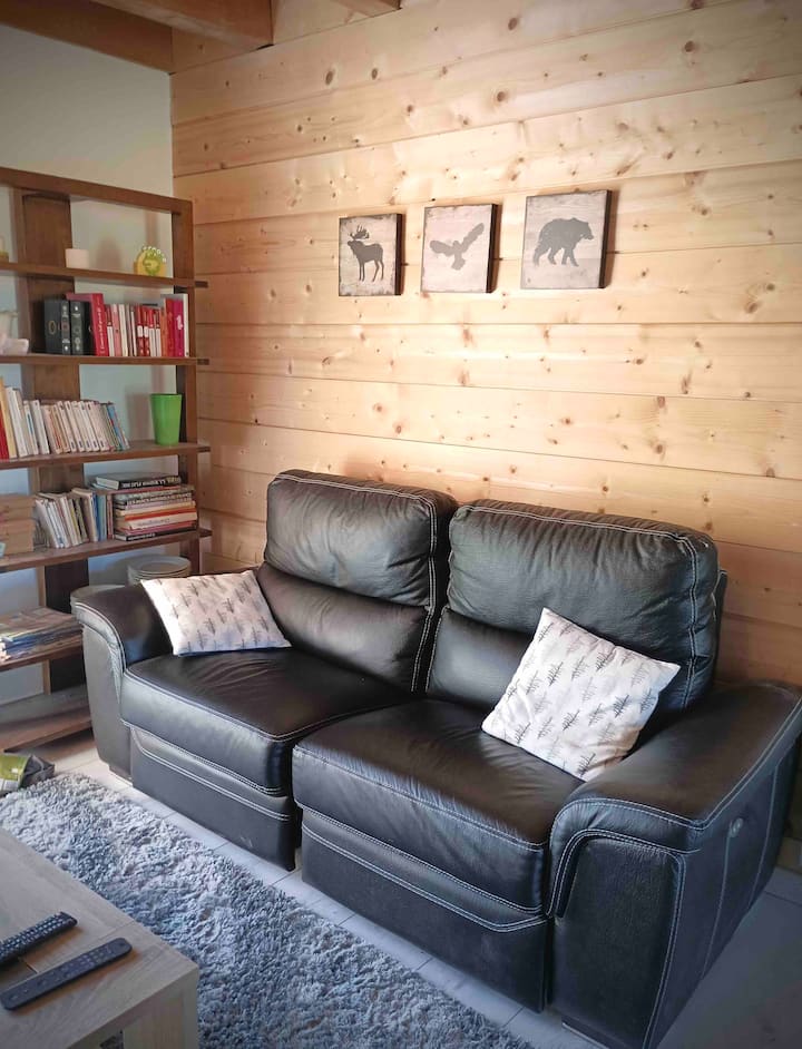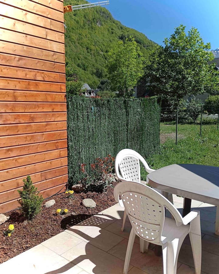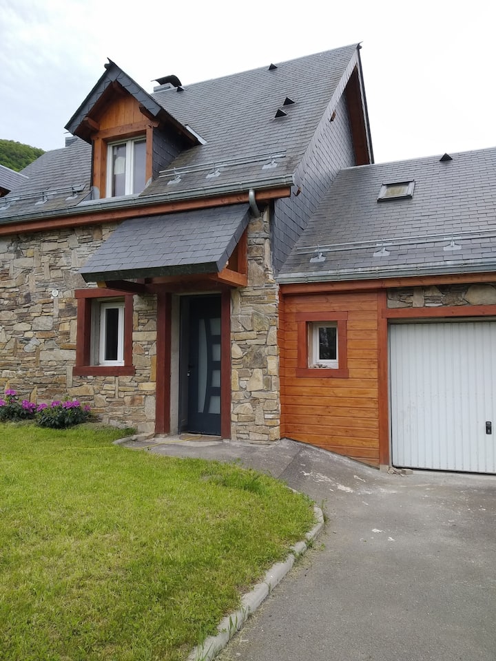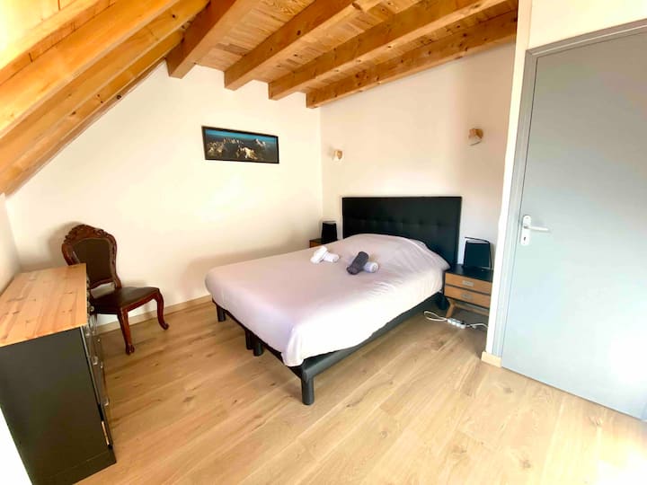 Very recently built, this south-facing chalet has a terrace, garden and mountain views. Ground floor: living room, sitting room, kitchen with dishwasher. Wood-burning stove. A shower room with WC. Upstairs there is a bedroom with 1 double bed (160cm). A bedroom with 2 single beds. A bathroom with WC and washing machine. On the 2nd floor, there is a converted attic space with 2 single beds (90cm), accessed by a ladder-style staircase. Private car park. Bed linen and cleaning optional. Terrace, garden with garden furniture, sun loungers and barbecue.