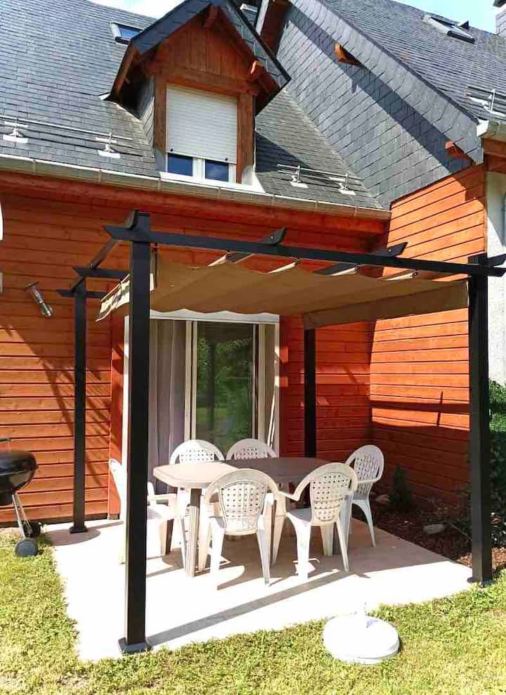 74m² detached south-facing chalet with terrace and garden. Semi-detached in a residential area.