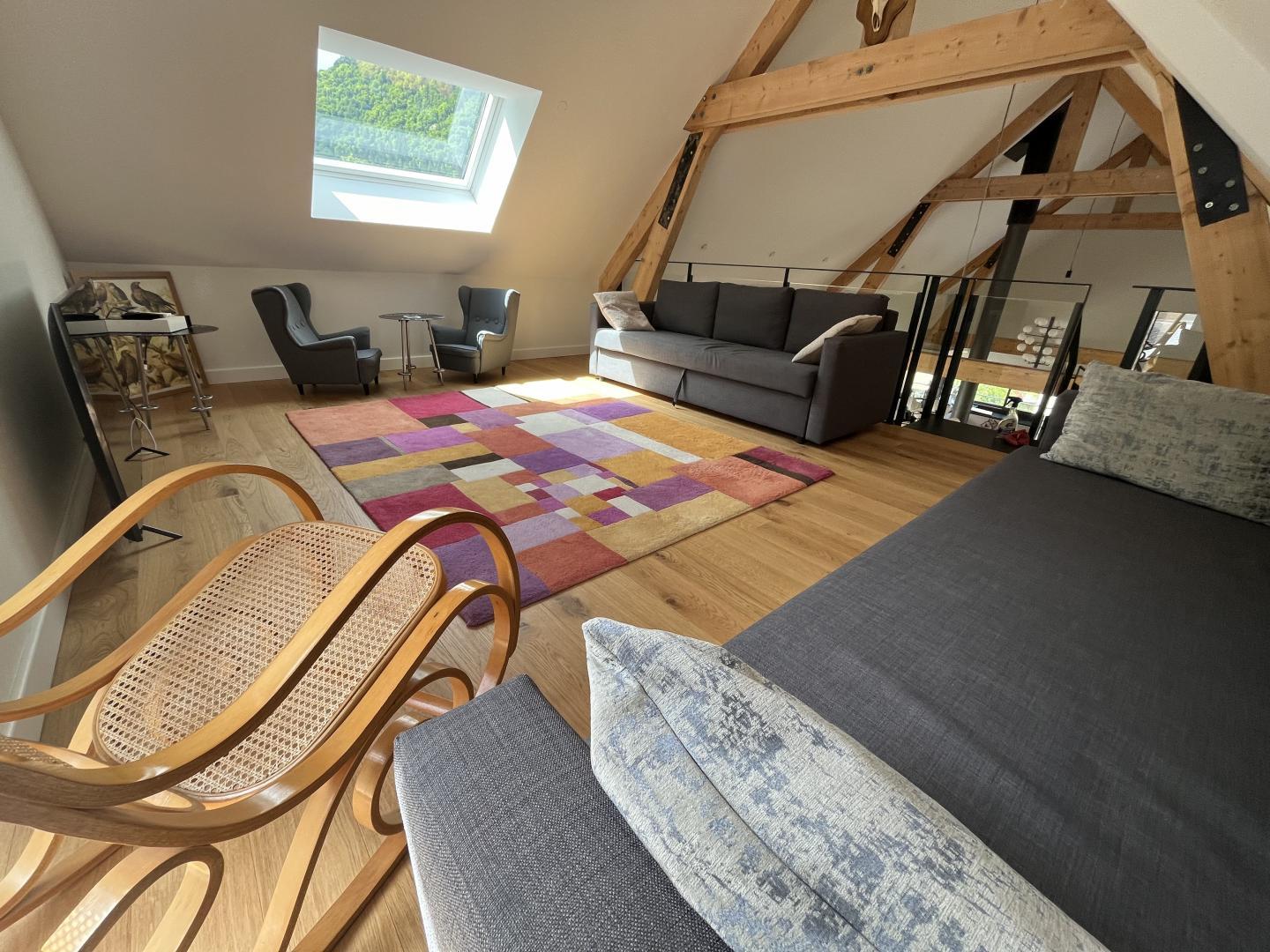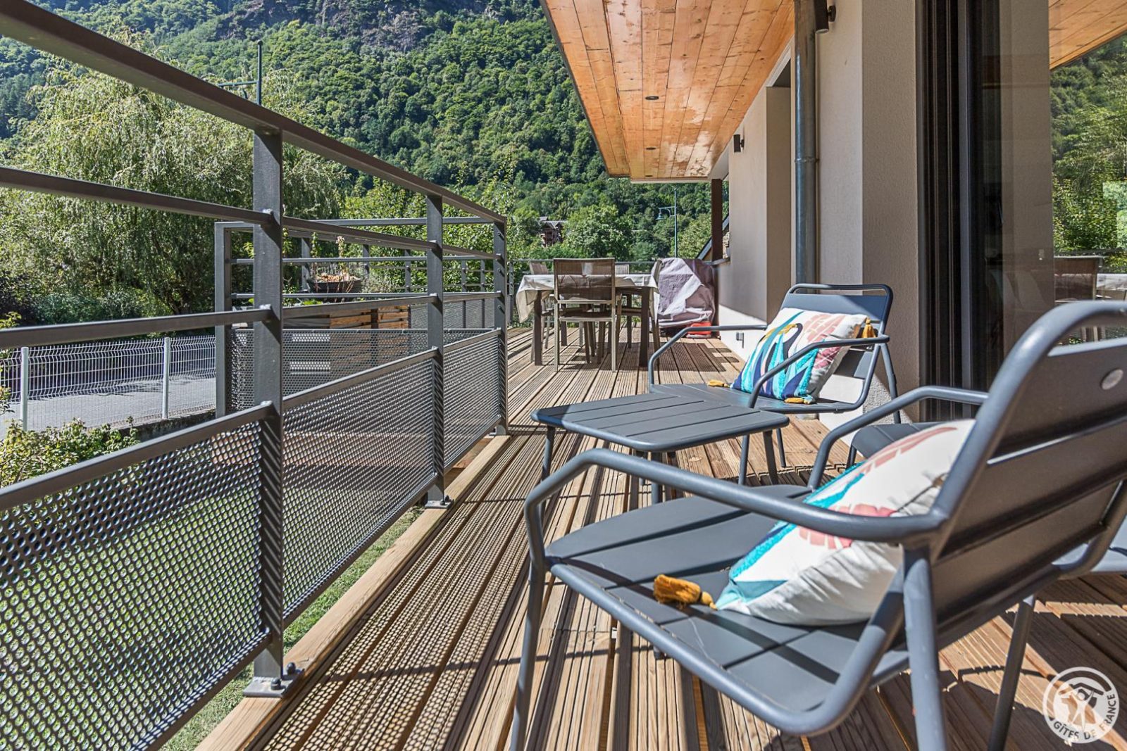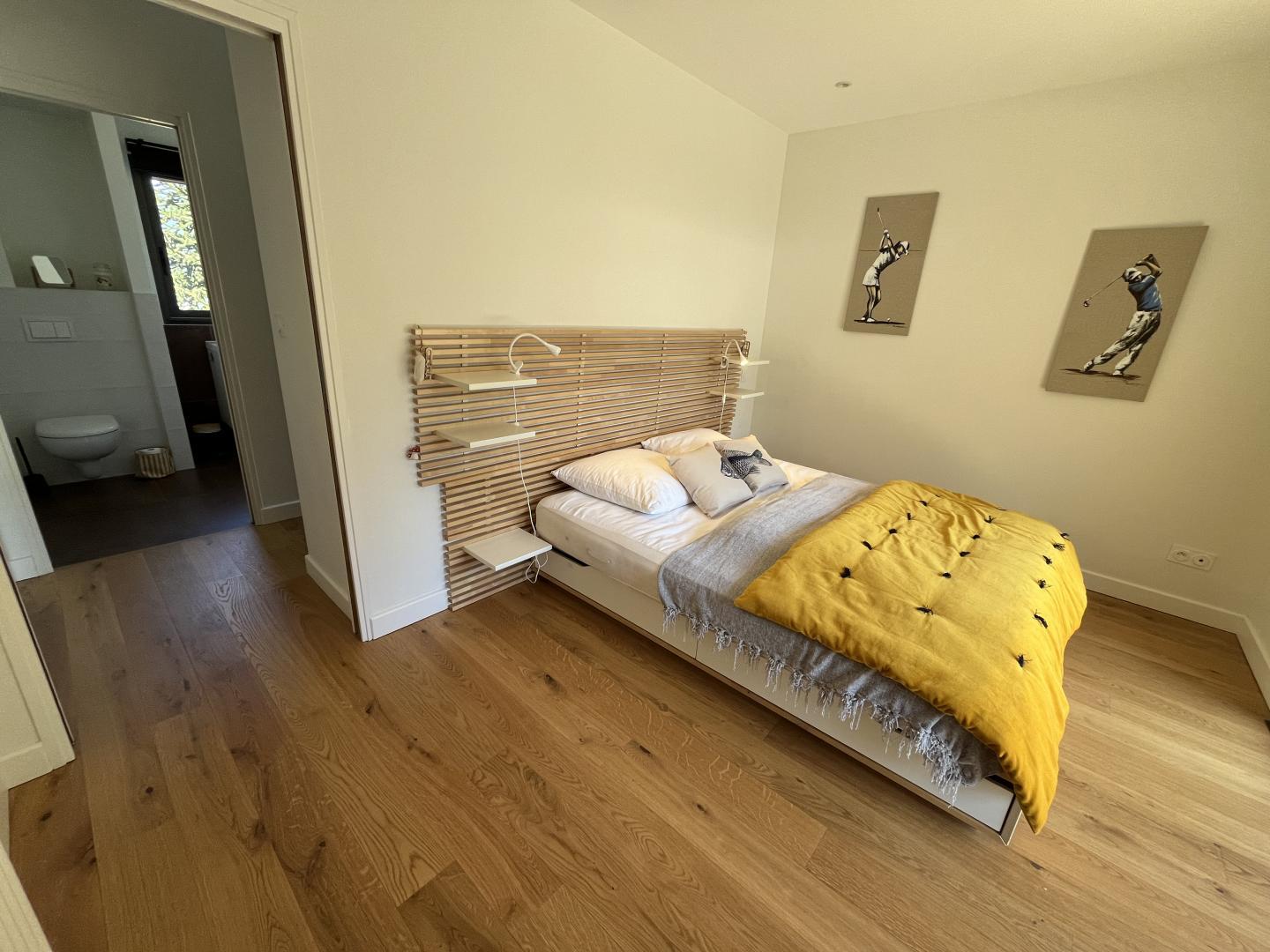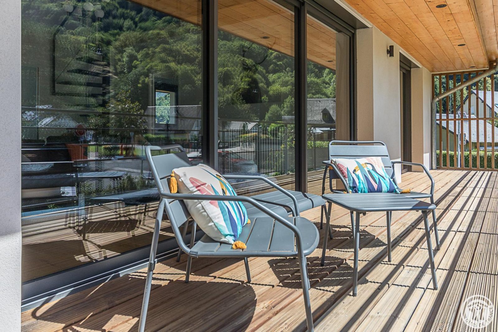 Just 1km from the centre of Bagnères-de-Luchon, Chalet Manica is ideal for welcoming family or friends to the mountains in summer or winter. In addition to the leisure activities on offer in the mountains: hiking from the gîte (Cascade de Sidonie), skiing (express rack railway to Superbagnères 1.9km away), fishing in La Pique, etc., the resort of Luchon, with its shops, services and entertainment, is within easy reach: thermal baths and aqualudic centre 1km away, golf course 2.2km away, Badech lake (swimming) 4.3km away, equestrian centre 5.3km away, etc. The Pyrénées Hô adventure park is 20km away (tree climbing, rock climbing...) and Spain is 8km away via the Col du Portillon. So you can make the most of your weekends and holidays! The gîte is set in a contemporary villa facing south towards the peaks, in a quiet, residential area. The 700m² exterior features a grassed garden planted with fruit trees, a courtyard and a covered carport. The house has been designed to maximise light and views of the Pyrenees from every room, and to provide easy access to the garden and upstairs terrace via large picture windows. - Ground floor: the sleeping area of the house comprises an entrance hall (cupboard/wardrobe), a utility room with washing machine/dryer, shoe storage, etc., 3 bedrooms opening onto the garden (1 double bed 140x190cm) (1 double bed 140x190cm) (2 bunk beds, each with 2 single beds 90x200cm), a shower room and a separate toilet. - Upstairs: a straight staircase leads to the large, spacious living room (exposed beams). A central fireplace opens onto the open-plan kitchen and dining area on one side and the lounge on the other. Bedroom (1 double bed 160x200cm), dressing room, shower room, separate WC. - A spiral staircase leads up to the mezzanine, which has been converted into a television room. Gas central heating. No smoking. Pets not allowed.
