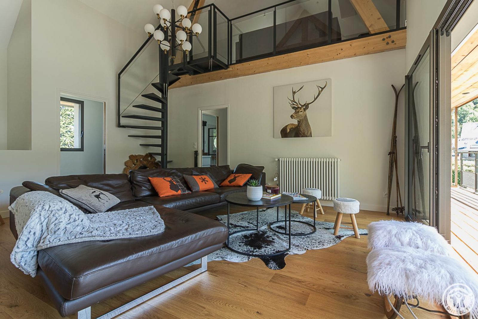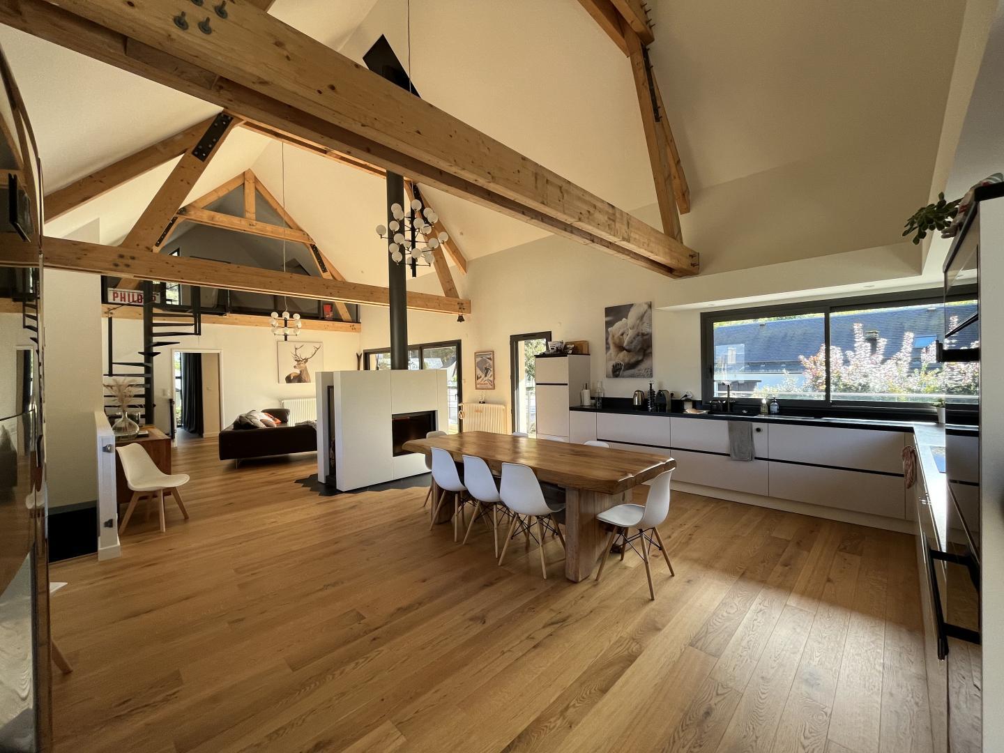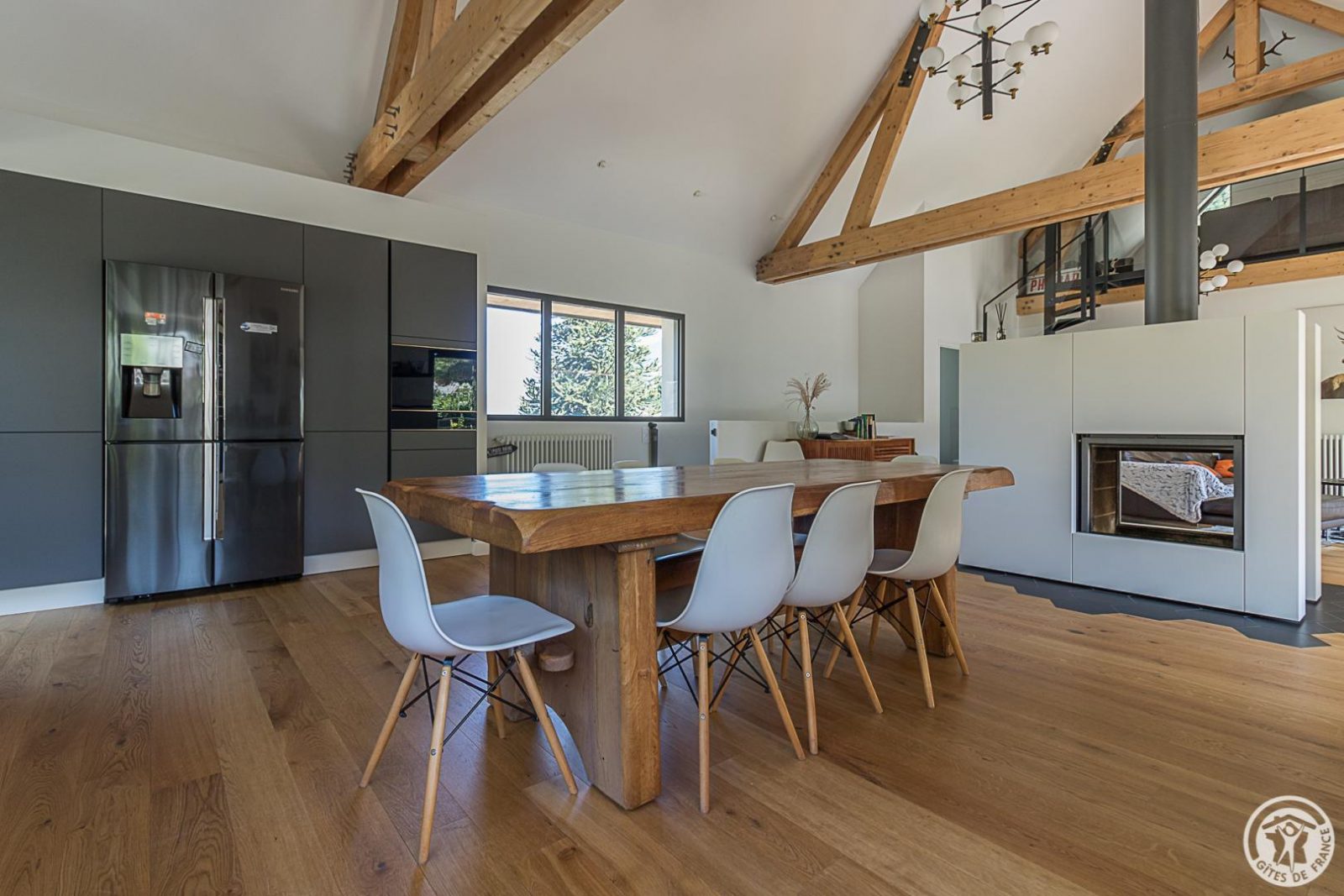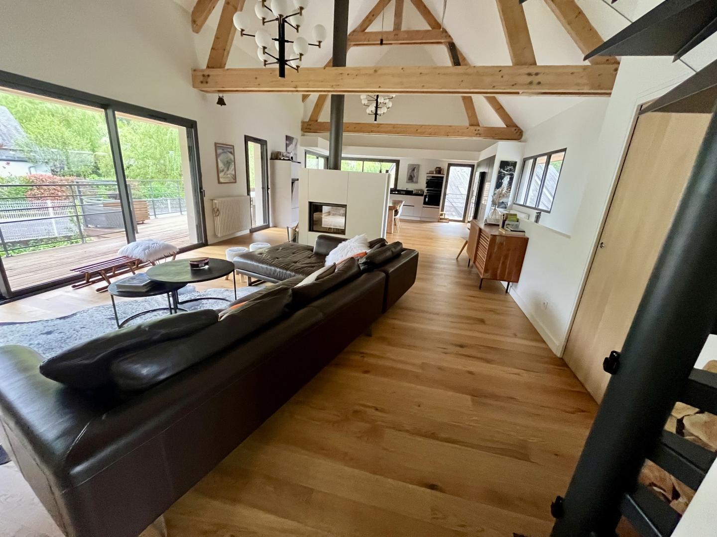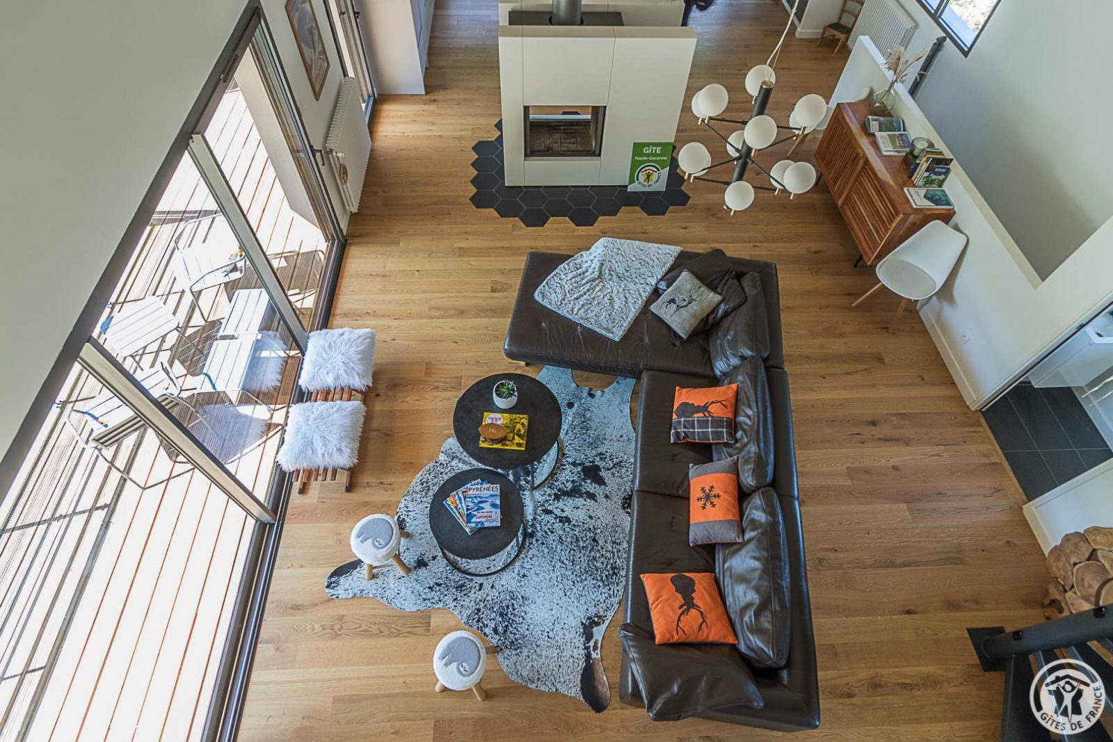 Just 1km from the centre of Bagnères-de-Luchon, Chalet Manica is ideal for welcoming family or friends to the mountains in summer or winter. In addition to the leisure activities on offer in the mountains: hiking from the gîte (Cascade de Sidonie), skiing (express rack railway to Superbagnères 1.9km away), fishing in La Pique, etc., the resort of Luchon, with its shops, services and entertainment, is within easy reach: thermal baths and aqualudic centre 1km away, golf course 2.2km away, Badech lake (swimming) 4.3km away, equestrian centre 5.3km away, etc. The Pyrénées Hô adventure park is 20km away (tree climbing, rock climbing...) and Spain is 8km away via the Col du Portillon. So you can make the most of your weekends and holidays! The gîte is set in a contemporary villa facing south towards the peaks, in a quiet, residential area. The 700m² exterior features a grassed garden planted with fruit trees, a courtyard and a covered carport. The house has been designed to maximise light and views of the Pyrenees from every room, and to provide easy access to the garden and upstairs terrace via large picture windows. - Ground floor: the sleeping area of the house comprises an entrance hall (cupboard/wardrobe), a utility room with washing machine/dryer, shoe storage, etc., 3 bedrooms opening onto the garden (1 double bed 140x190cm) (1 double bed 140x190cm) (2 bunk beds, each with 2 single beds 90x200cm), a shower room and a separate toilet. - Upstairs: a straight staircase leads to the large, spacious living room (exposed beams). A central fireplace opens onto the open-plan kitchen and dining area on one side and the lounge on the other. Bedroom (1 double bed 160x200cm), dressing room, shower room, separate WC. - A spiral staircase leads up to the mezzanine, which has been converted into a television room. Gas central heating. No smoking. Pets not allowed.