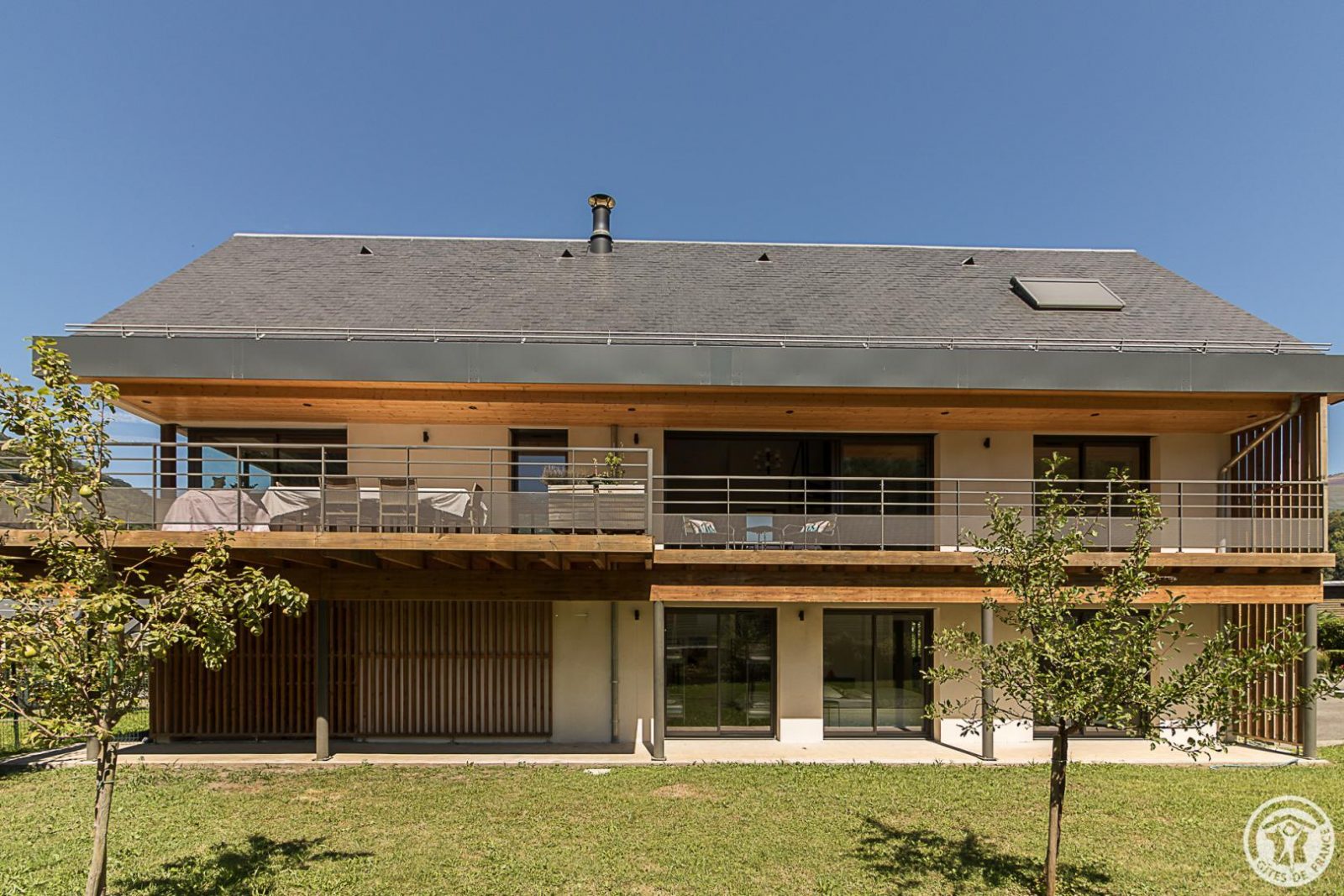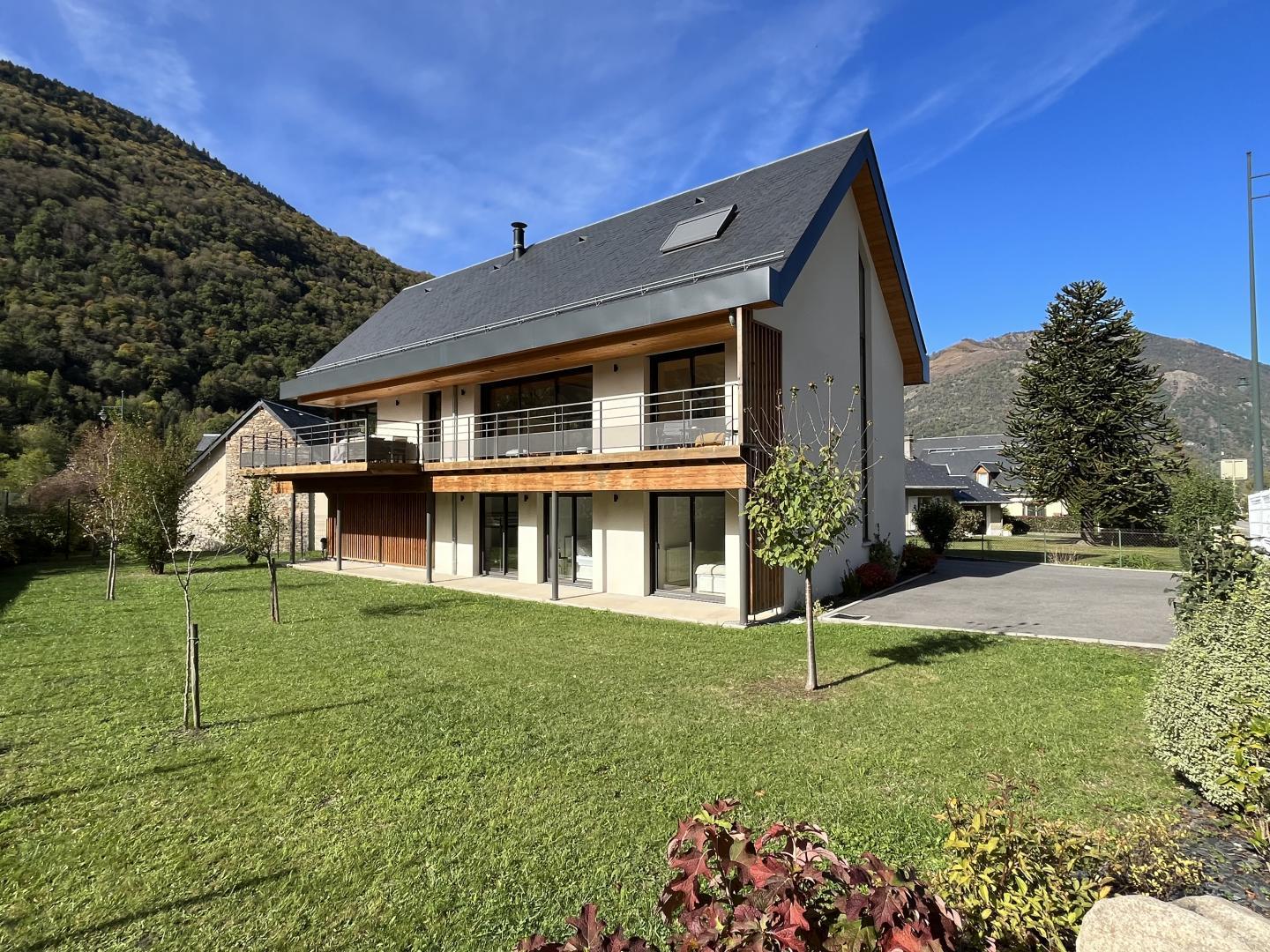 Beautiful contemporary detached villa in a residential area of Saint-Mamet, 1km from Luchon, the thermal baths and the express train to Superbagnères! Garden, terrace and mountain views...
