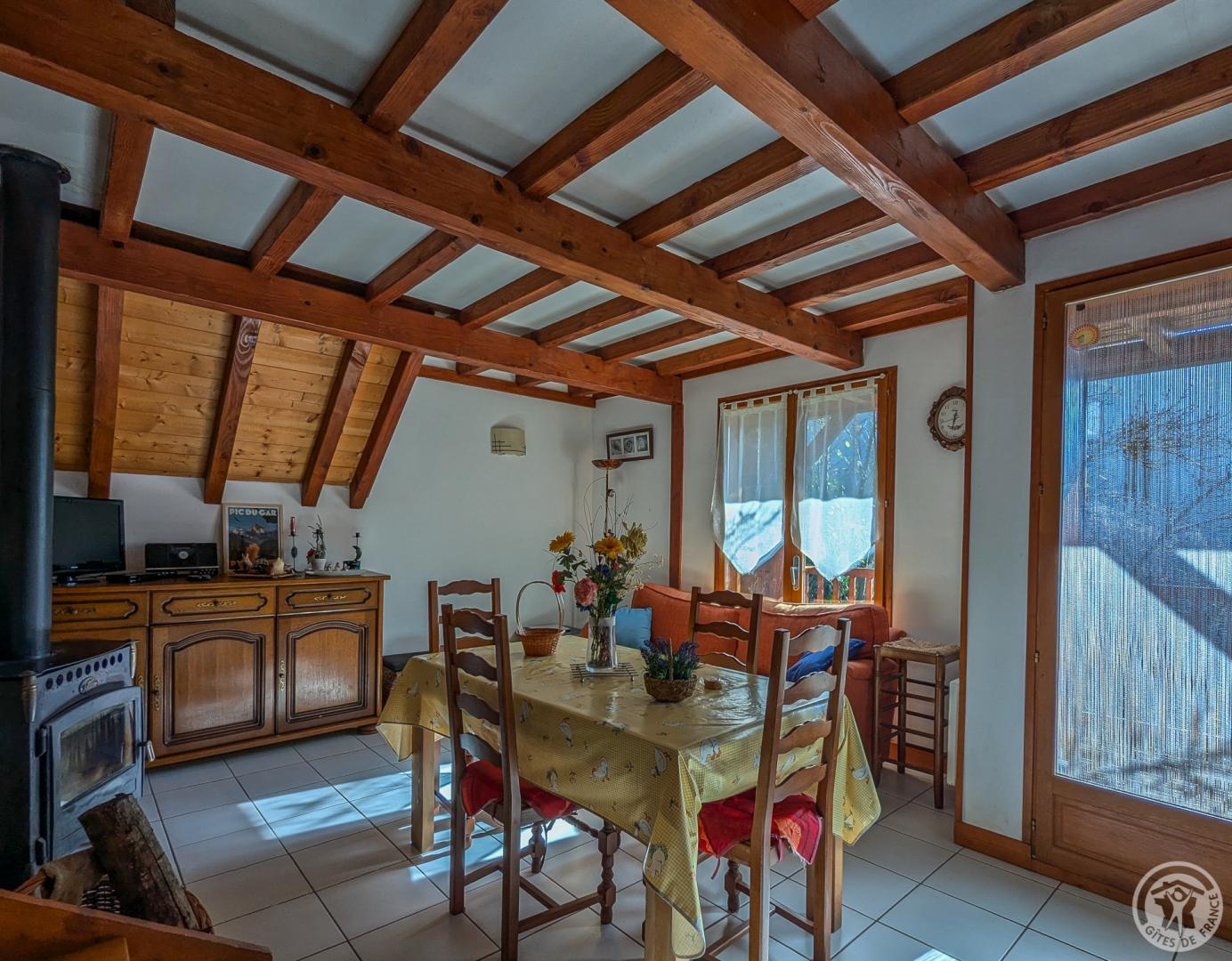Facing the Pic du Gar, this pretty wooden chalet is nestled in a mountain hamlet 16km from the summer and winter resorts of Le Mourtis.