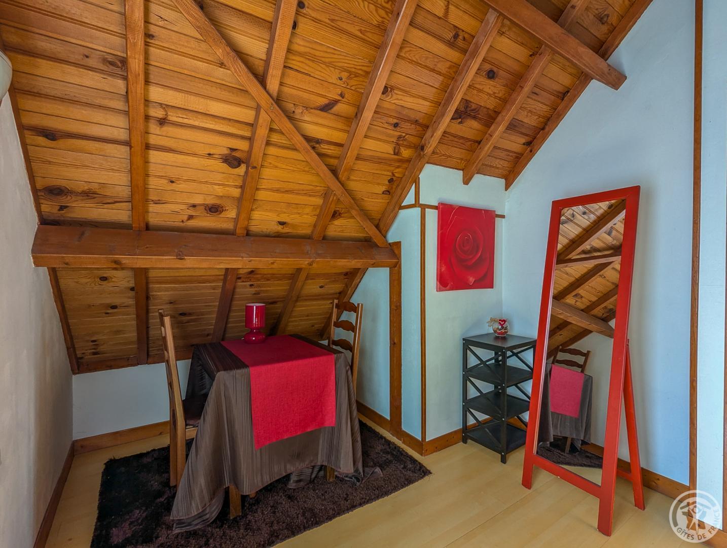 Facing the Pic du Gar (GR10) and 15km from the family-friendly resort of Le Mourtis, this pretty wooden chalet is nestled in this mountain hamlet, ideal for walks and fishing trips with family or friends. In season, deer and hinds can often be seen and heard nearby. Nearby tourist attractions: 3km from the Garonne river (hiking, fishing and cycling), 6km from Lac du Géry (guinguette), 8km from Marignac train station (skiing in Luchon, visit to Toulouse) and the Pyrénées Hô leisure park, 20km from Spain and Saint-Bertrand-de-Comminges (favourite village of the French) and 25km from Bagnères-de-Luchon. Gîte on 4 levels, each separated by 6 steps: ground floor: entrance with utility room. 1st level: living room with fitted kitchen opening onto a south-facing terrace. 2nd level: 1 bedroom (1 double bed 140cm), shower room, separate WC. 3rd level: 1 bedroom (1 x 140cm double bed) with study area and south-facing terrace and 1 bedroom (1 x 90cm single bed) under the roof. Unenclosed grounds with trees and flowers of 2000m2. Electric heating and wood-burning stove. Small pets allowed.