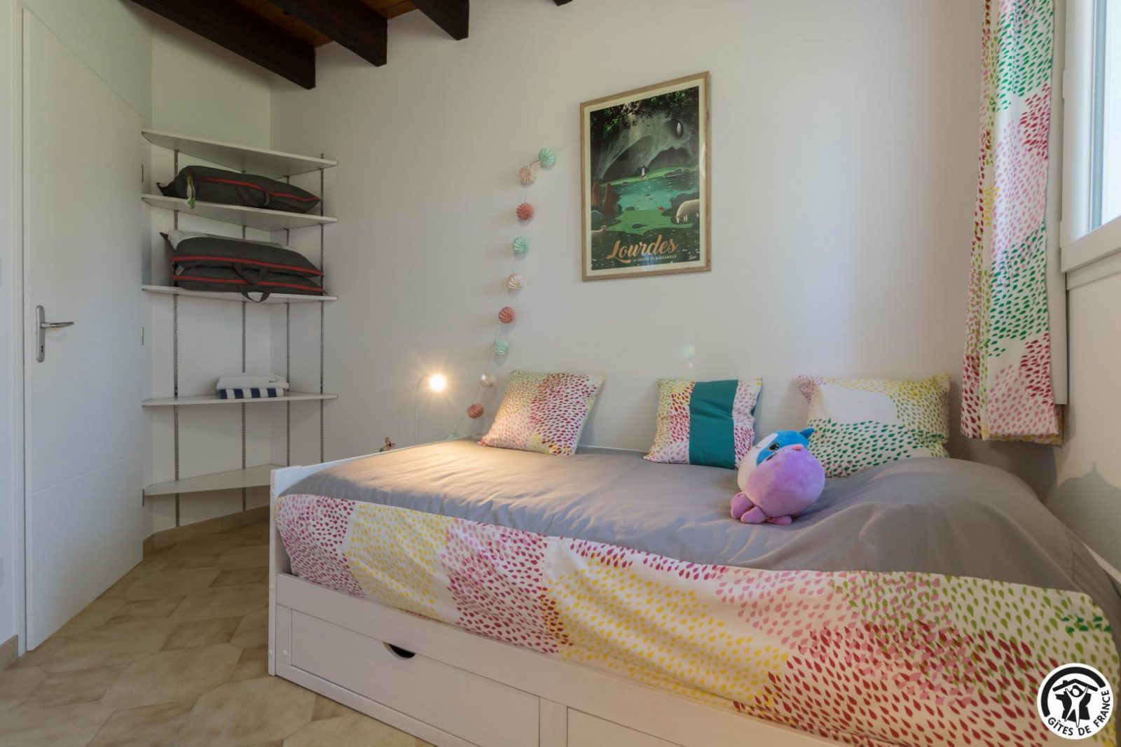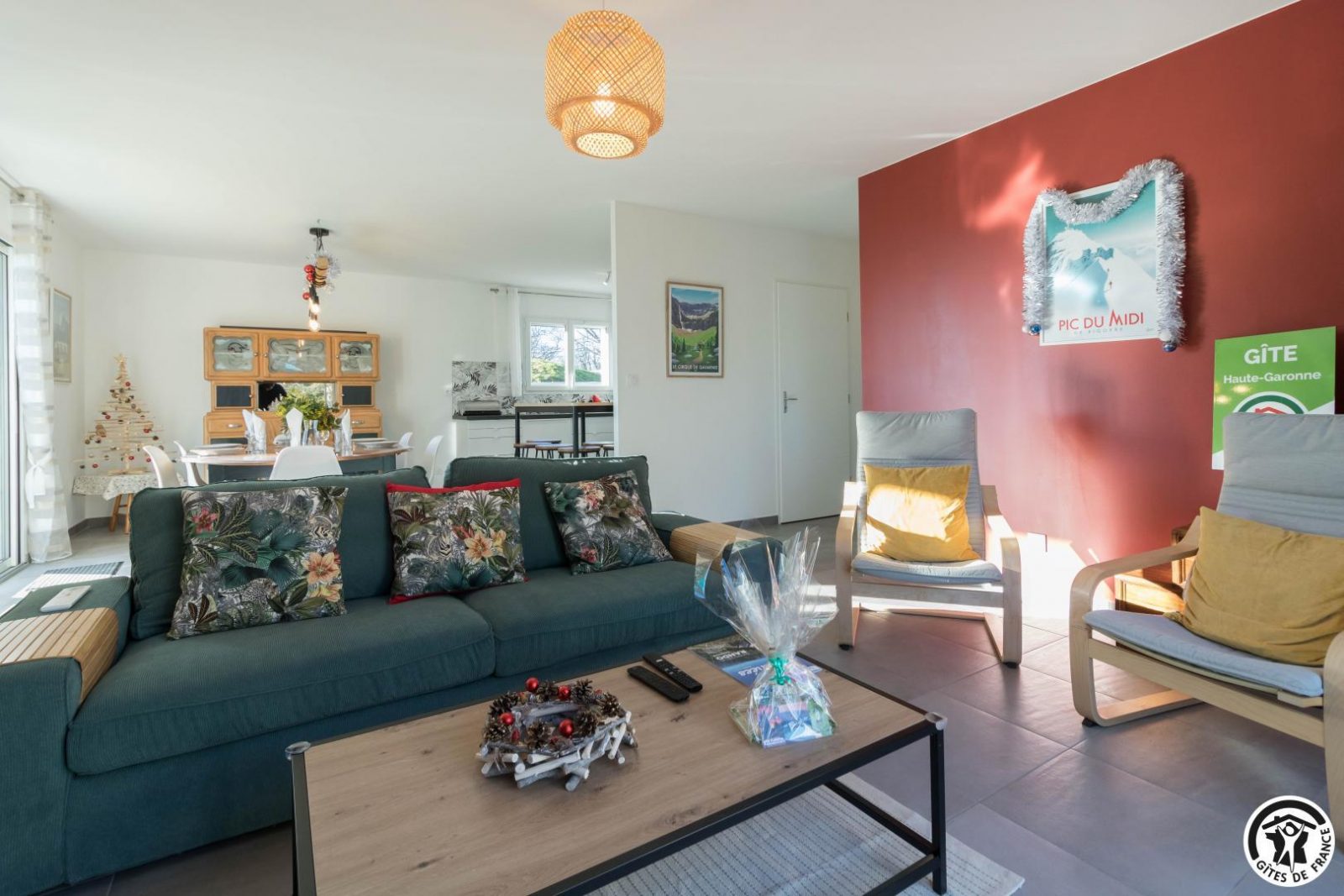 Facing the many majestic peaks of the Pyrenees (the Cagire, the Pic du Midi, Mont Vallier...), you couldn't be better off in the bubbles of the jacuzzi. Marie-Claude and Jean-Paul have also laid out sunny terraces for your comfort and relaxation, including one where you can still enjoy the shade when the south-western sun is beating down. In the 6000m2 garden, the owners have created an orchard with numerous fruit trees (fig, quince, apple, etc.) and a vegetable garden (tomatoes): help yourself, it's good for your health! As you can imagine, Chez Hubelise, named after the 2 first names of Marie-Claude's parents, feels just like home. Our recommendations for nearby places to visit: the Route de Saint-Jacques-de-Compostelle, 1.6km away; Bonnefont en Comminges Abbey, 4.1km away; the Musée Forum de l'Aurignacien, 13.3km away; Martres-Tolosane, 20km away; the famous Aspet market, 22km away; one of France's most beautiful villages, Saint-Bertrand-de-Comminges, 33km away; and the Mourtis ski resort, 45km away. One-storey gîte, wheelchair-accessible via an external ramp (gravelled parking area): entrance, living room (fitted kitchen, dining area and sitting area), 3 bedrooms (1 double bed 140*190cm)(1 double bed 140*190cm)(2 single beds 90*190cm, trundle beds that can be converted into 1 double bed 180*190cm), shower room/WC (with grab rails) and separate WC. Reversible air conditioning in the living room and electric heating in the other rooms. Outdoor games: croquet, table tennis and boules for children. Smoking is not permitted inside or outside the gîte. The attic and shed are not part of the rental.