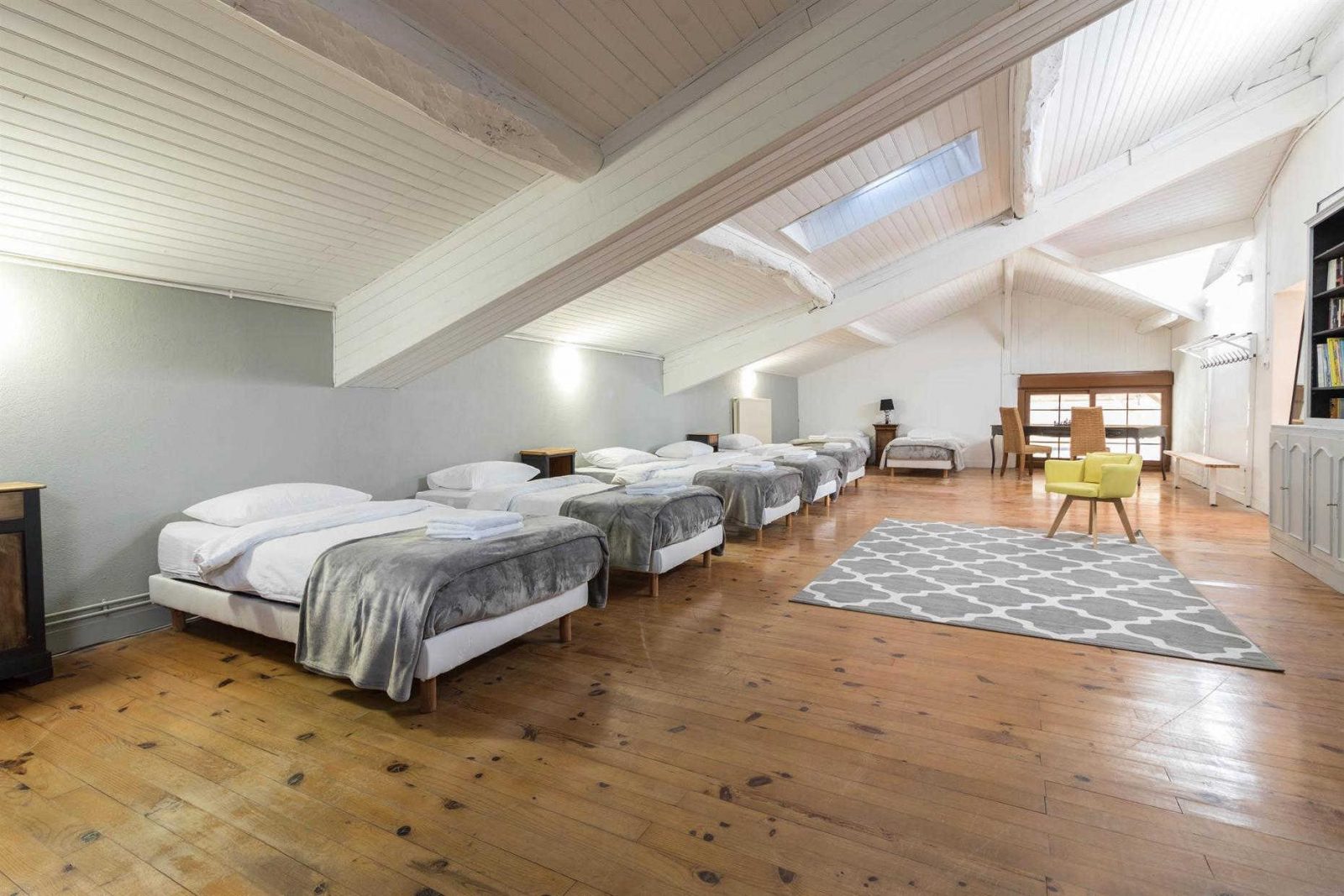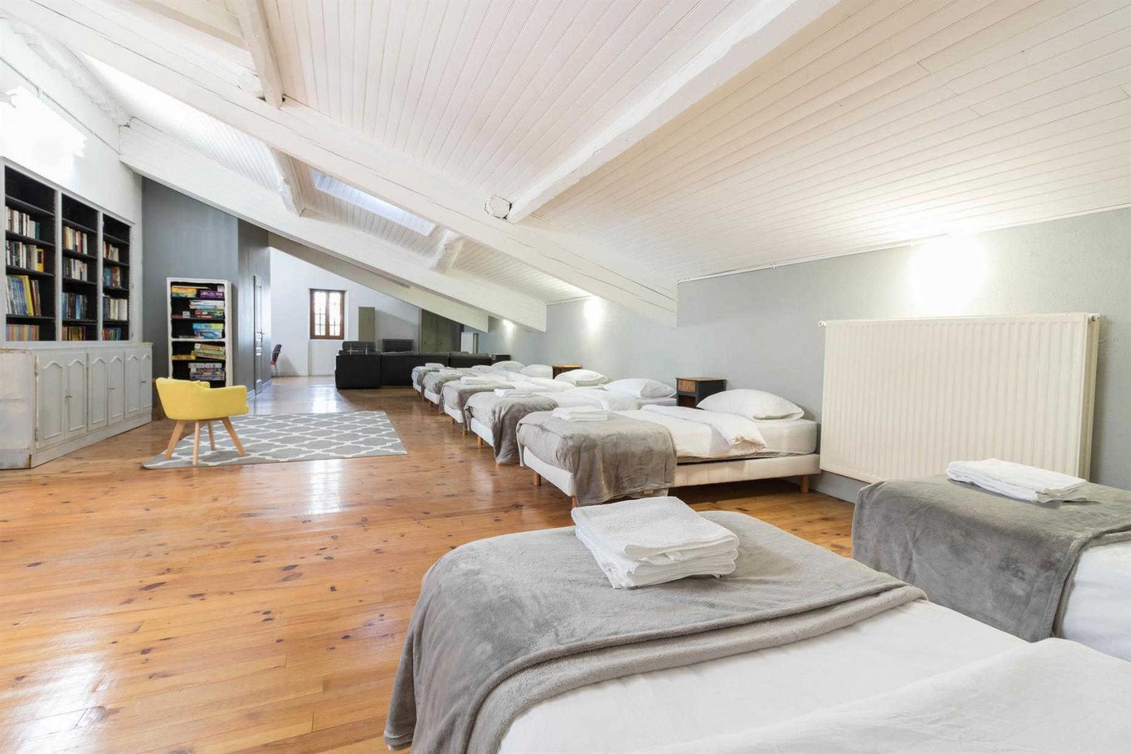 For your family gatherings, friends or work colleagues, a seminar room with summer kitchen and all the equipment you need for your business meetings, in 8,000m2 of parkland with swimming pool and boules pitch, as well as a barn with table tennis and table football! Activities nearby : Cazères water sports centre (4km), restaurants in this small village bordered by the Garonne river (the ViaGarona, part of the pilgrim route to Santiago de Compostela), Rieux-Volvestre, one of France's most beautiful detours, is 9km away, Martres-Tolosane, and its earthenware (10km) and Montesquieu-Volvestre (13km), wine tasting at Bertrand Henry's vineyard in Lavelanet-En-Comminges (7km), the Gallic village of Saint-Julien (5km), the remarkable market in Montbrun-Bocage, the Ariège department and the thermal baths of Salies-du-Salat are a 20-minute drive away! Ground floor: entrance, lounge (140cm flat-screen TV, 2 sofas, armchairs and desk), lounge (fireplace, 2 sofas and armchairs), dining room (sideboard, microwave, table and 20 chairs), kitchen (American fridge-freezer, 4 induction hobs, filter and pod coffee makers, dishwasher), hand-washing area, separate WC and shower room with disabled access (washing machine). 1/2 floor: huge 100m2 dormitory with 7 single beds (90*200cm), TV with Playstation 3 and games, library and an extra bedroom with 2 bunk beds for 1 person (90*200cm), 2 twin beds for 1 person (90*200cm) and 1 single bed (90*200cm). First floor: large landing leading to two bedrooms, each with 1 x 160*200cm double bed, a shower room with walk-in shower and a separate WC. Second floor: same layout as the first floor. 2 garden lounges, sun loungers and a relaxing lounge. Bicycles available. Oil-fired heating. Pets not allowed.