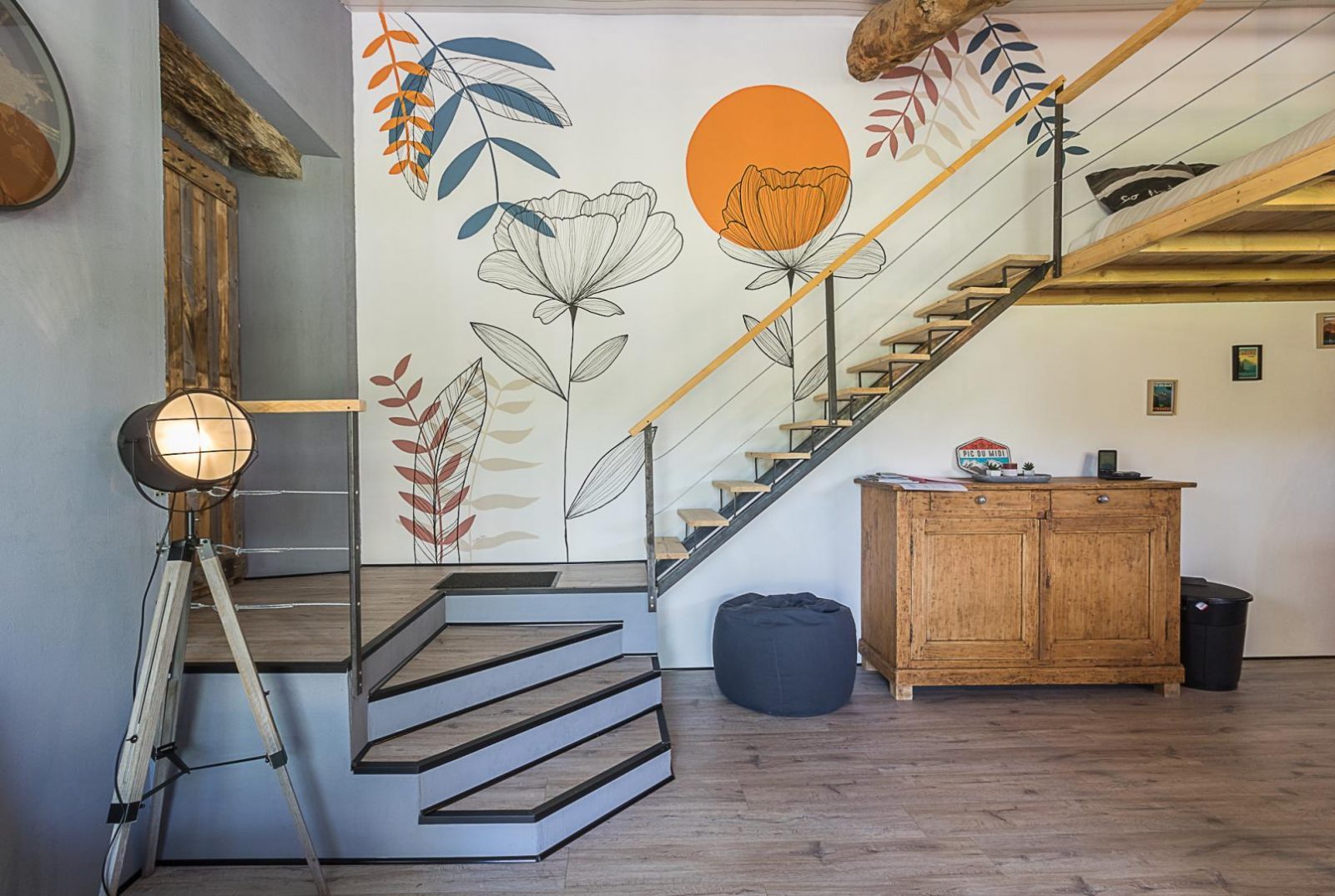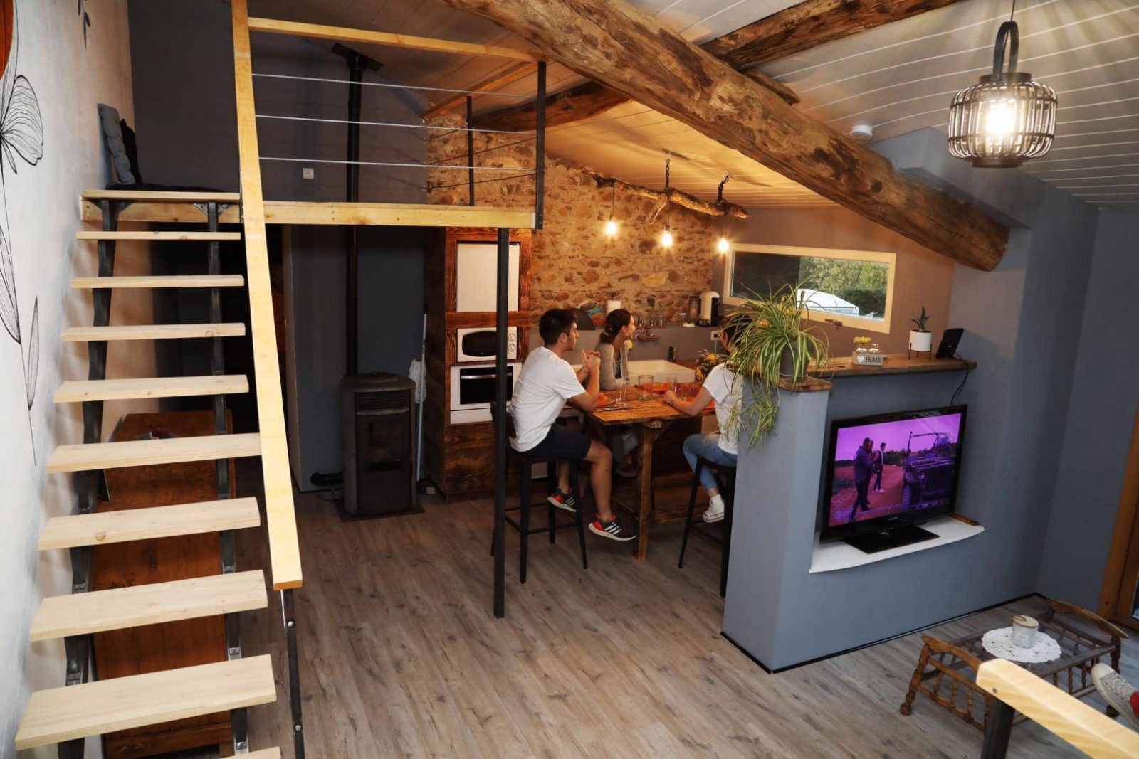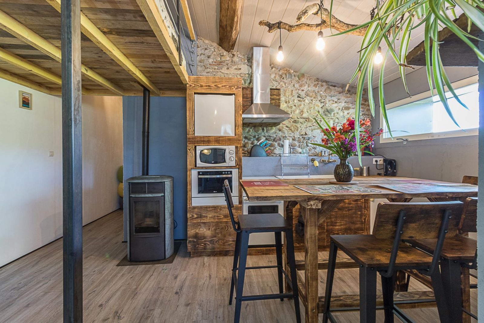 The Domaine d'Ostau Montplaisant, set in the heart of nature and facing the Pyrenees, is the perfect place to welcome workers or holidaymakers looking for relaxation and peace and quiet. Adjoining the owner's home, it has a completely separate entrance. A private terrace equipped with garden furniture and a gas hob lets you enjoy the outdoor space on sunny days. The garden and swimming pool with shelter (8x4m) are shared, but guests can enjoy swimming on their own every afternoon until 6pm. There are plenty of activities nearby: hiking (the GR86 is 200m away and the Via Garona is 3km), cycling (the Garonne cycle path is 3km away), golf and the Montréjeau lake 6km away (Blue Flag swimming), canoeing and kayaking 11km away, the historic site of Saint-Bertrand-de-Comminges 14km away, etc. The nearest ski resorts are around 40km away (Le Mourtis and Luchon-Superbagnères). All shops and services are in Montréjeau, and the nearest train station is in Gourdan-Polignan (also 6km away). From the front door, a few steps lead down to the living room. The kitchen opens onto the living area with dining area (table and high chairs), wood-burning stove and lounge with 120x190cm sofa bed. A corridor leads to a bedroom (double bed 160x200cm), a shower room (shower with jets, double washbasin) and a dry toilet. A staircase leads from the entrance to a small mezzanine, which is not counted as living space because it has a very low ceiling (1 double bed 140x190cm). Heating is provided by the programmable pellet stove. Wifi or wired internet connection.