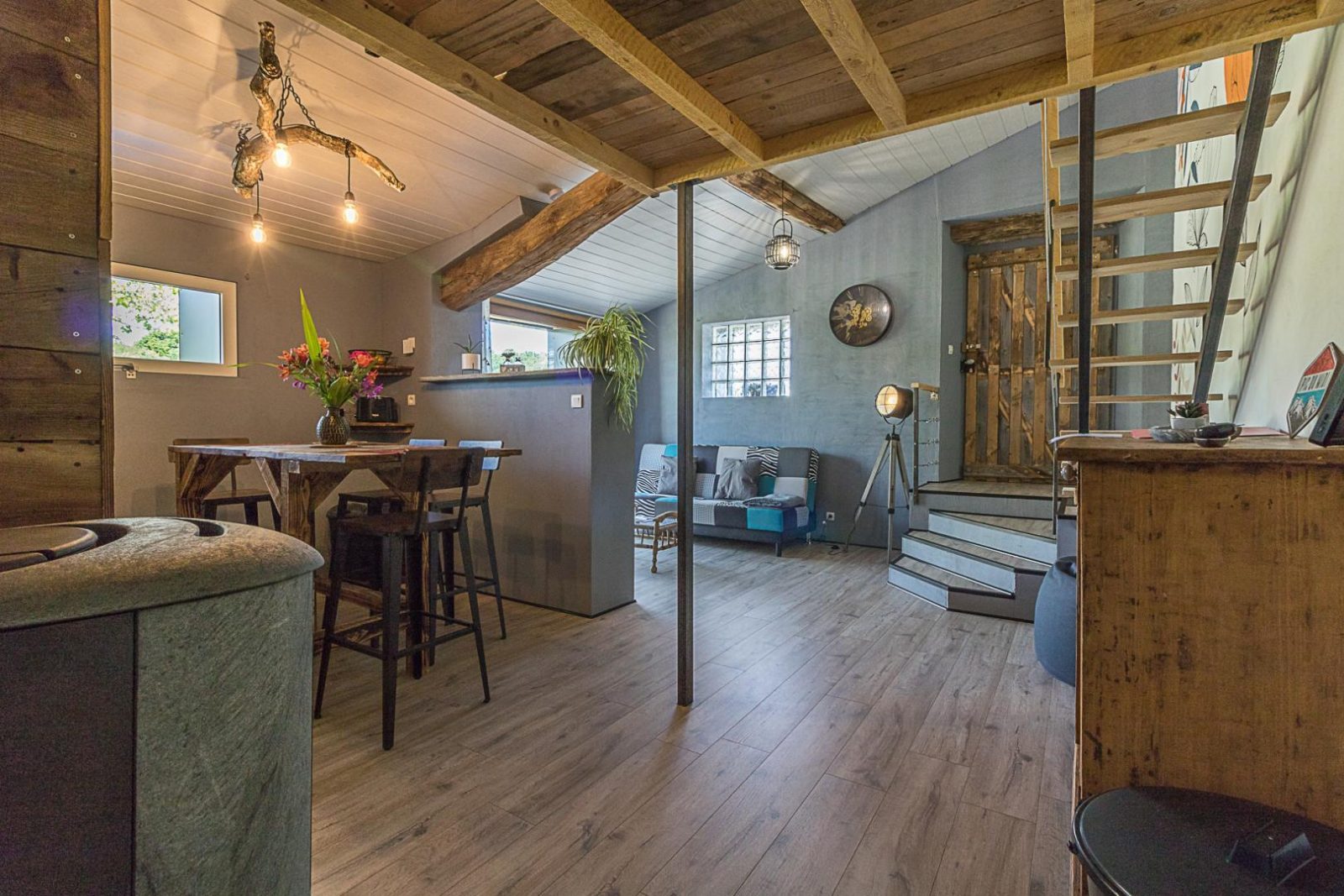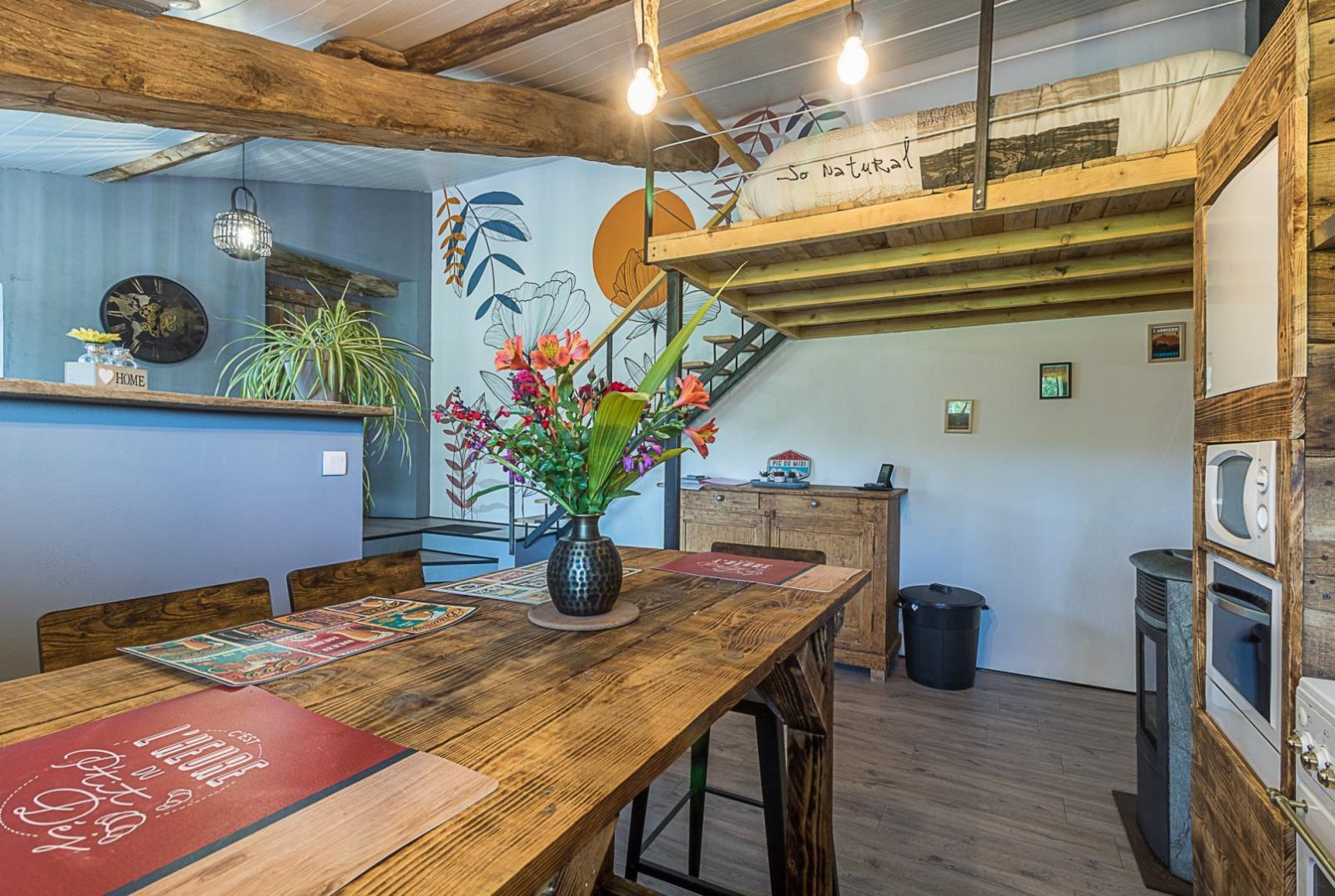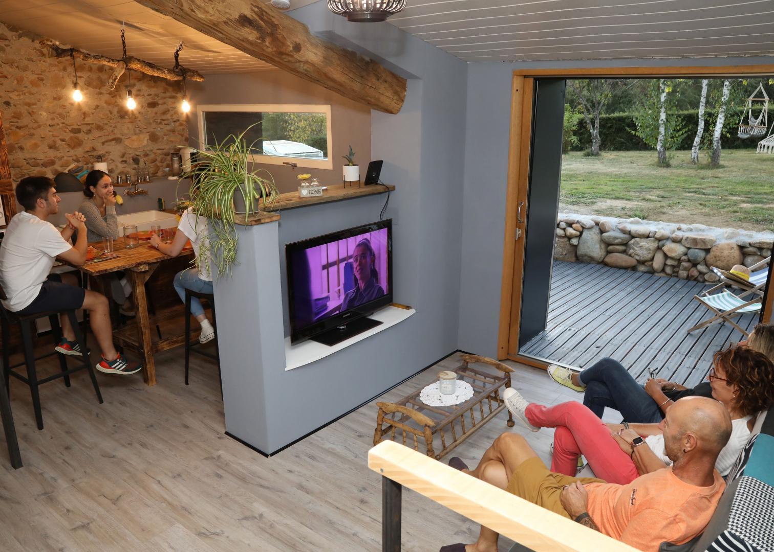 The Domaine d'Ostau Montplaisant, set in the heart of nature and facing the Pyrenees, is the perfect place to welcome workers or holidaymakers looking for relaxation and peace and quiet. Adjoining the owner's home, it has a completely separate entrance. A private terrace equipped with garden furniture and a gas hob lets you enjoy the outdoor space on sunny days. The garden and swimming pool with shelter (8x4m) are shared, but guests can enjoy swimming on their own every afternoon until 6pm. There are plenty of activities nearby: hiking (the GR86 is 200m away and the Via Garona is 3km), cycling (the Garonne cycle path is 3km away), golf and the Montréjeau lake 6km away (Blue Flag swimming), canoeing and kayaking 11km away, the historic site of Saint-Bertrand-de-Comminges 14km away, etc. The nearest ski resorts are around 40km away (Le Mourtis and Luchon-Superbagnères). All shops and services are in Montréjeau, and the nearest train station is in Gourdan-Polignan (also 6km away). From the front door, a few steps lead down to the living room. The kitchen opens onto the living area with dining area (table and high chairs), wood-burning stove and lounge with 120x190cm sofa bed. A corridor leads to a bedroom (double bed 160x200cm), a shower room (shower with jets, double washbasin) and a dry toilet. A staircase leads from the entrance to a small mezzanine, which is not counted as living space because it has a very low ceiling (1 double bed 140x190cm). Heating is provided by the programmable pellet stove. Wifi or wired internet connection.