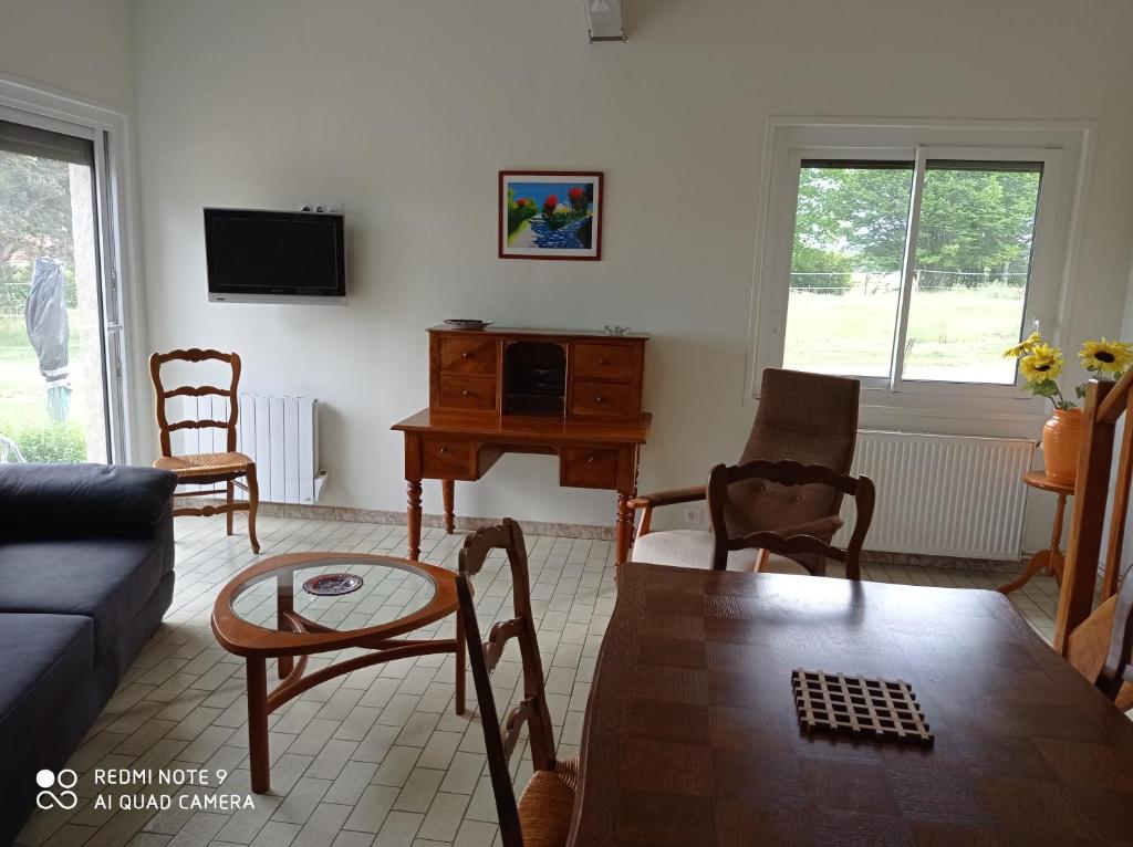 Ground floor: Lounge and dining room with fireplace Kitchen adjoining the living room Large bedroom with double bed Bathroom with bath and shower A very large attached garage Laundry room with gas cooker, washing machine, tumble dryer and fridge-freezer. Mezzanine : 140 cm double bed A 90 cm double bed A library with reading area Terrace: Can be used as a living and dining area in fine weather Sheets for the 3 beds provided on request Towels and table linen not provided Pets are welcome.