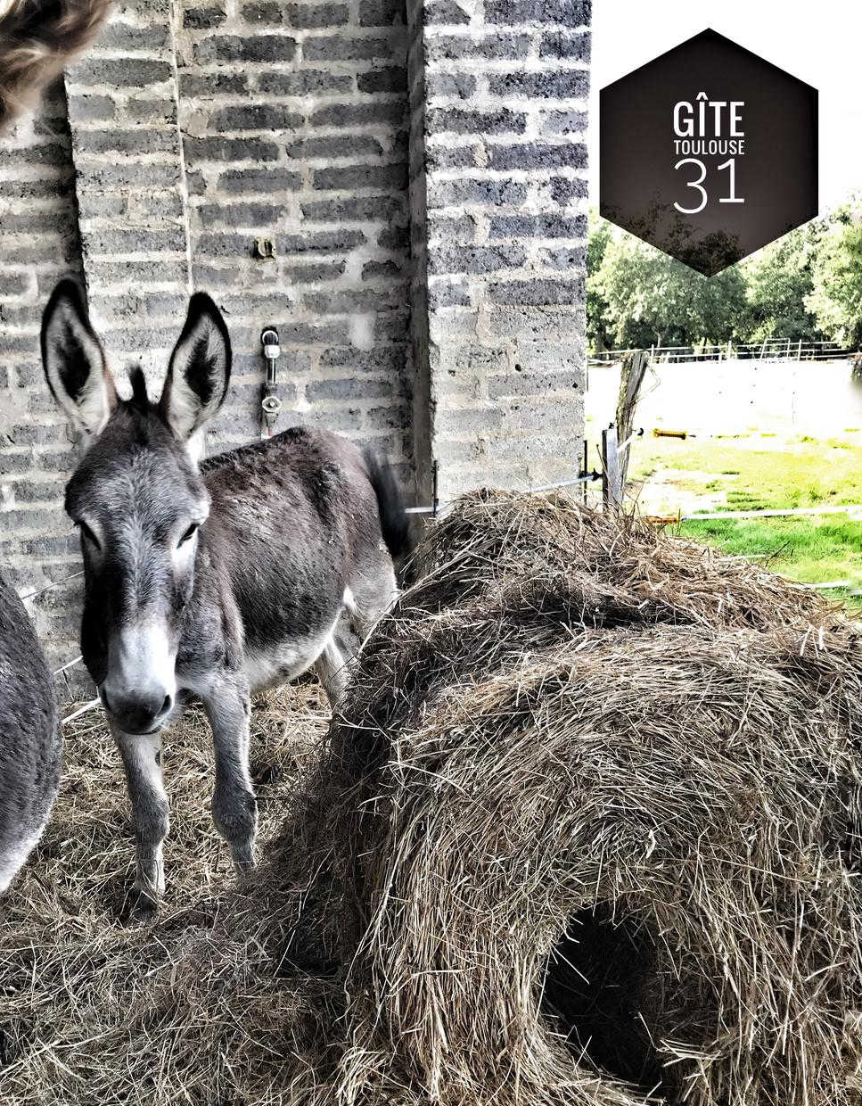 On the road to the Pyrenees, you can relax, and you'll be 2km from the village of Bérat (shops, restaurants and La Bérataise beer brewery), 6km from the Savères fishing lake, 10km from the ViaGarona hiking trail (the route to Santiago de Compostela), the WakePark spring in Carbone (aquatic activities), Lac de la Bure, Lac de Sabatouse and the Tépacap adventure park, 17km from one of France's most beautiful villages, Rieux-Volvestre, and 20km from Muret (train station, Aqualudia, Horizon Pyrénées cinema and seminar centre). Take advantage of the communal swimming pool, located in the heart of the property, and outdoor games (table tennis, boules, badminton). Half-enclosed lawned grounds, private parking area. Mini-farm on site with small animals and the donkeys Anémone and Peluche. This gîte is adjoining the owners' house but has independent access. There is a second gîte on the same property. Ground floor: living room with fitted kitchen, 1 bedroom (1 double bed 140cm) with bathroom (basin). Upstairs: 1 bedroom (3 single beds 90cm), shower room, WC. Central heating included. Wifi internet access.
