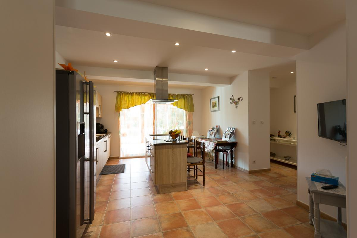 A little way from the village of Bérat, this fully-renovated house is ideal for spending some quality time and discovering the Toulouse countryside. Enclosed communal grounds with private garden and courtyard, parking possible inside. Owners' home nearby. Numerous tourist attractions within a 20 km radius. Locally: restaurants and La Bérataise brasserie; 8km: Tépacap children's leisure park, Lac de la Bure (fishing and restaurants), Lac de Savères and Source WakePark in Carbonne; 15 minutes by car: Muret (SNCF station, shops, restaurants, cinema, Aqualudia, Bonnets swimming lake); the Gers department, with the Samatan fat market 27km away, L'Isle-Jourdain 40km and Auch 64km away. One-storey gîte, covered terrace, entrance possible from the street or the terrace: fitted kitchen opening onto the living room, shower room/WC, separate WC, 3 bedrooms (1 double bed 140cm) (1 double bed 160cm)(1 double bed 140cm), shower room (Italian shower), sitting room with pool table and treadmill and table football. Electric heating. Extra bed available for hire. Non-smoking gîte.
