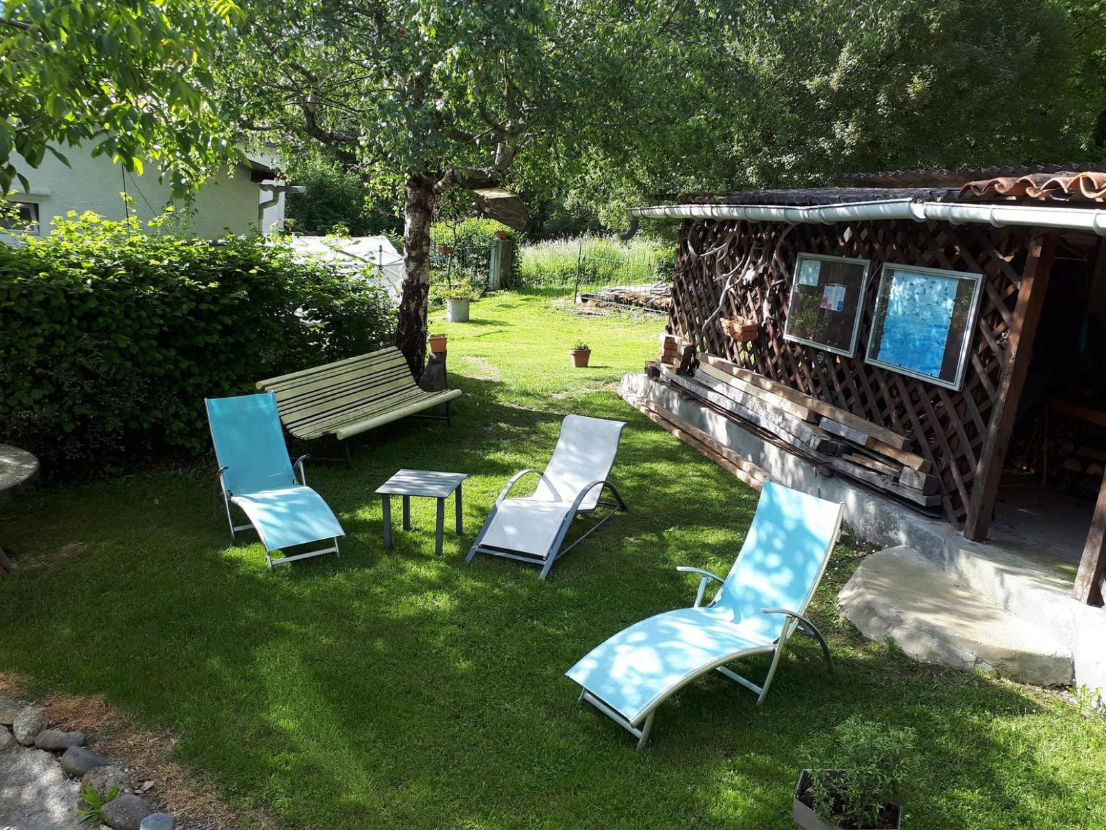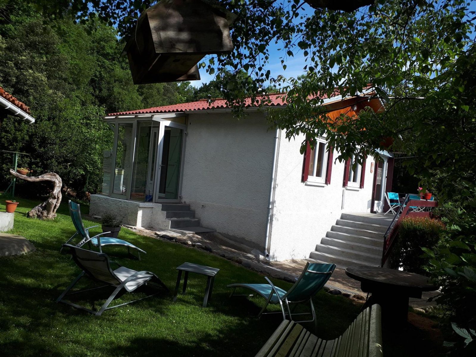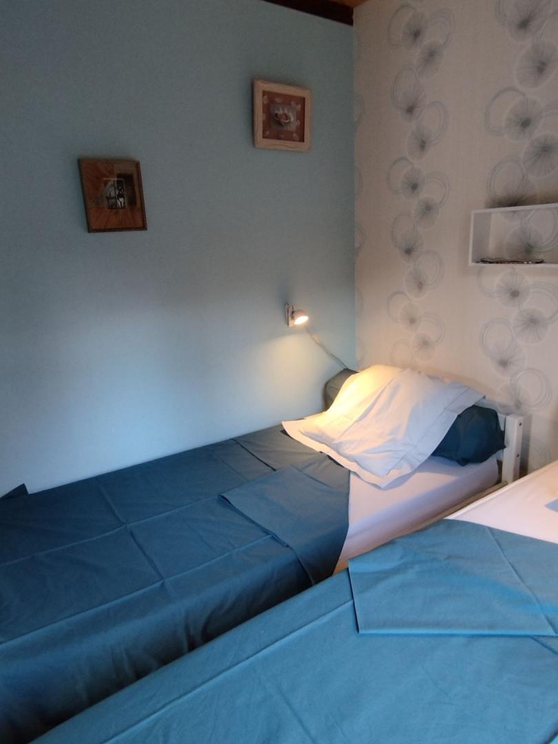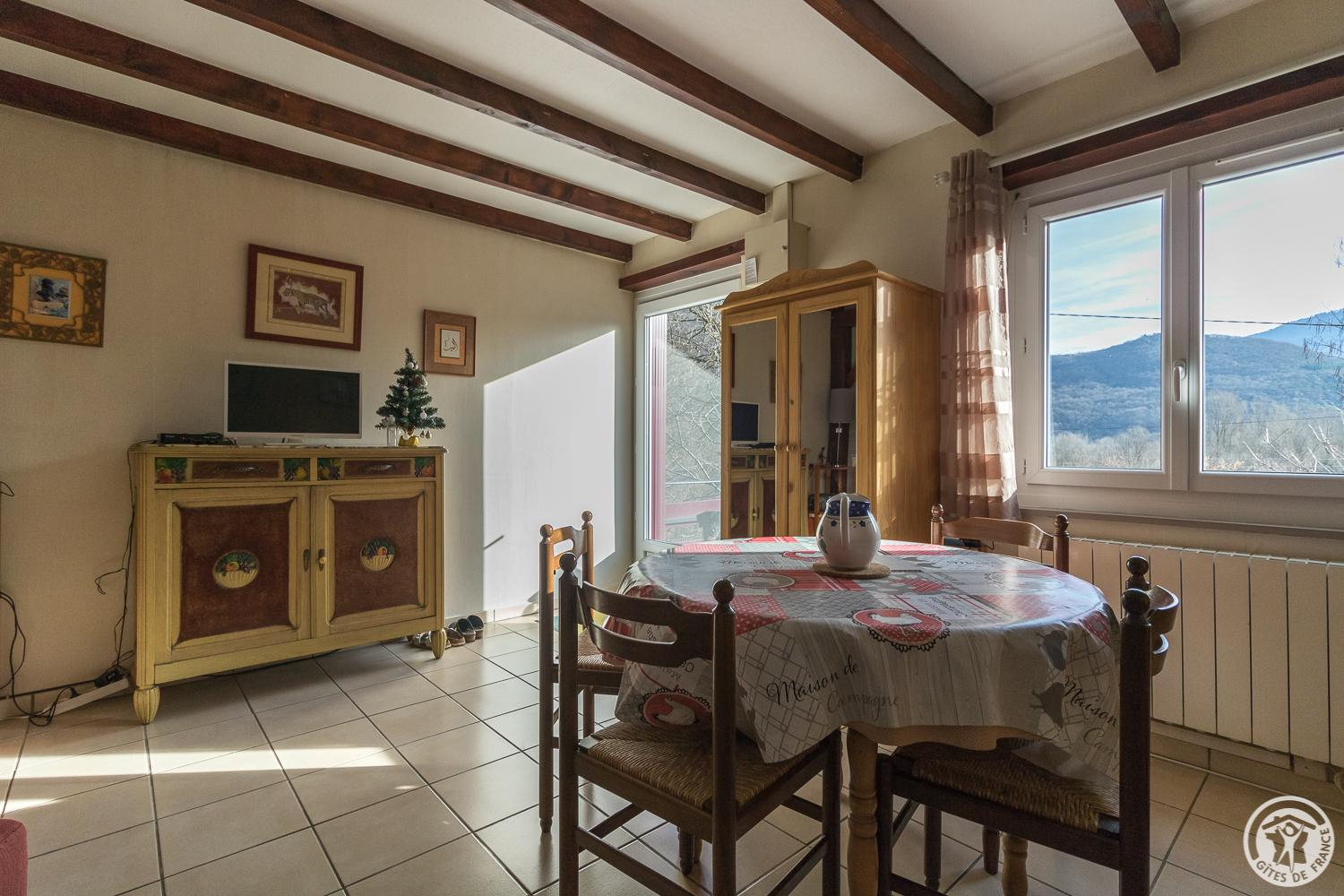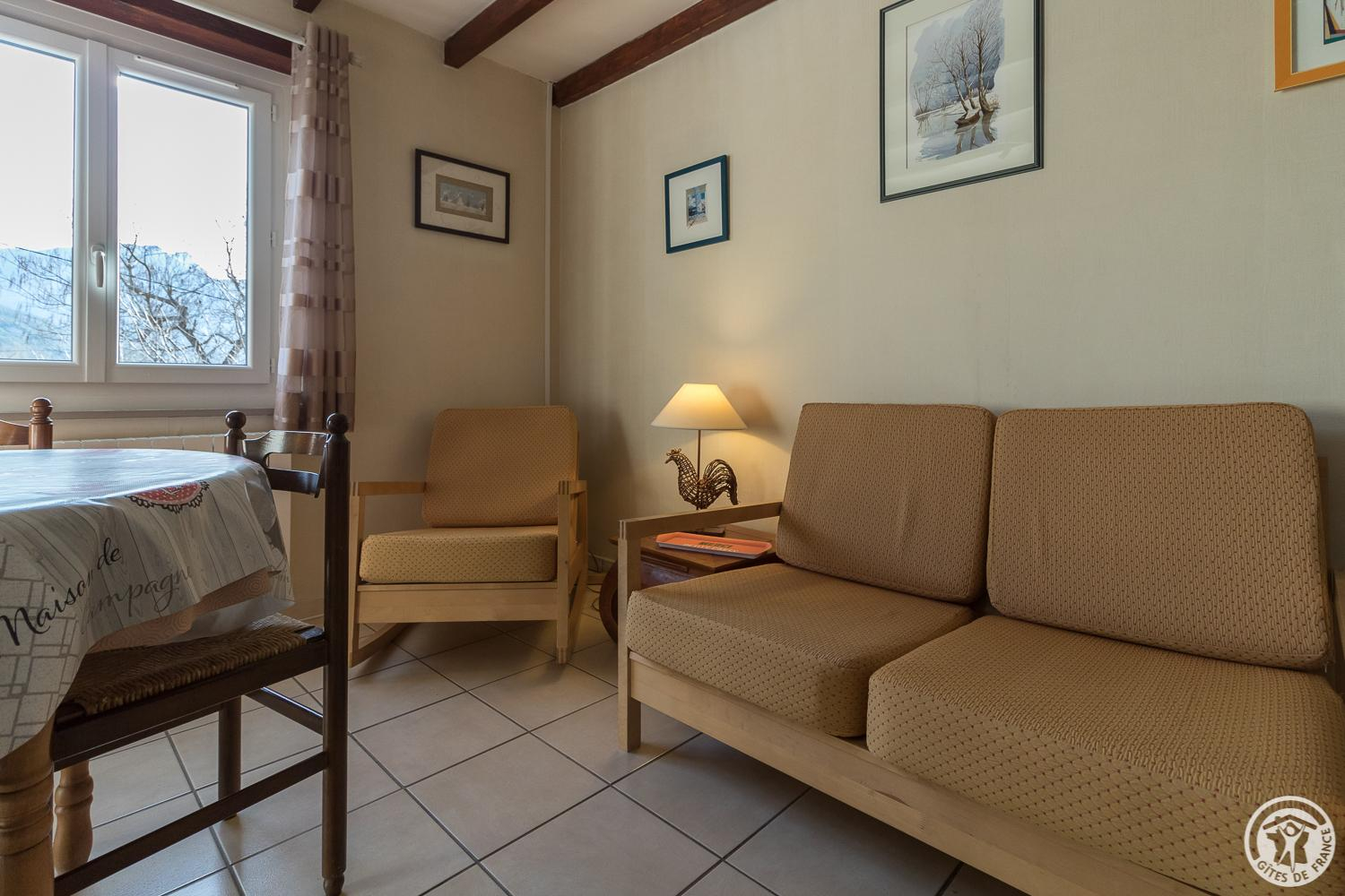 Personalised decoration, with particular attention paid to comfort and furnishings. The gateway to the Spanish Val d'Aran, which extends to the foothills of the Luchonnais. Hunting enthusiasts will not be left out! Nearby and to visit: natural sites (caves, lakes, waterfalls, cycle path right by the gîtes, numerous footpaths, lakes and Pyrenean peaks) or man-made sites (churches, castles, Roman or medieval remains, villages), in this large pastoral forest area you'll find producers and products at the local markets or on the farm (meat, cheese, fruit and vegetables, honey and jams). Access to the chalet by a few steps (staircase and private raised terrace): living room, kitchenette, 1 small double bedroom (7.80m²) (1 double bed 140cm), a small children's bedroom (6m²) (2 single beds 90cm), shower room (hairdryer), WC. Shared electric heating.