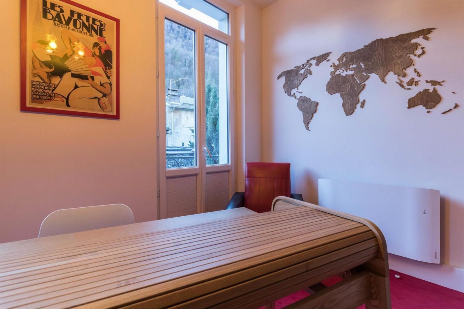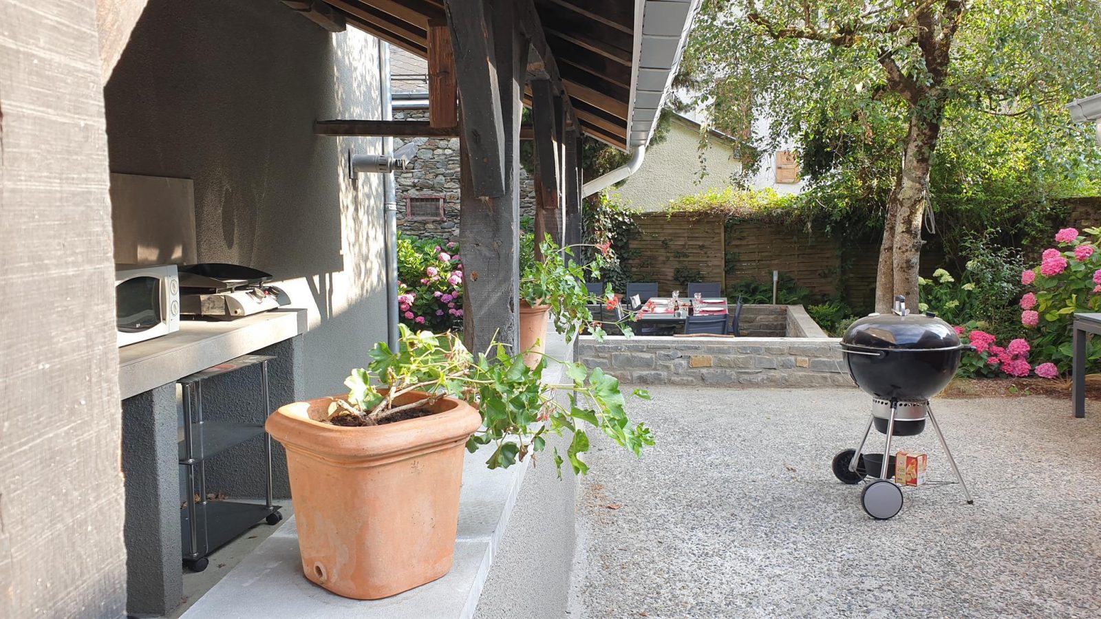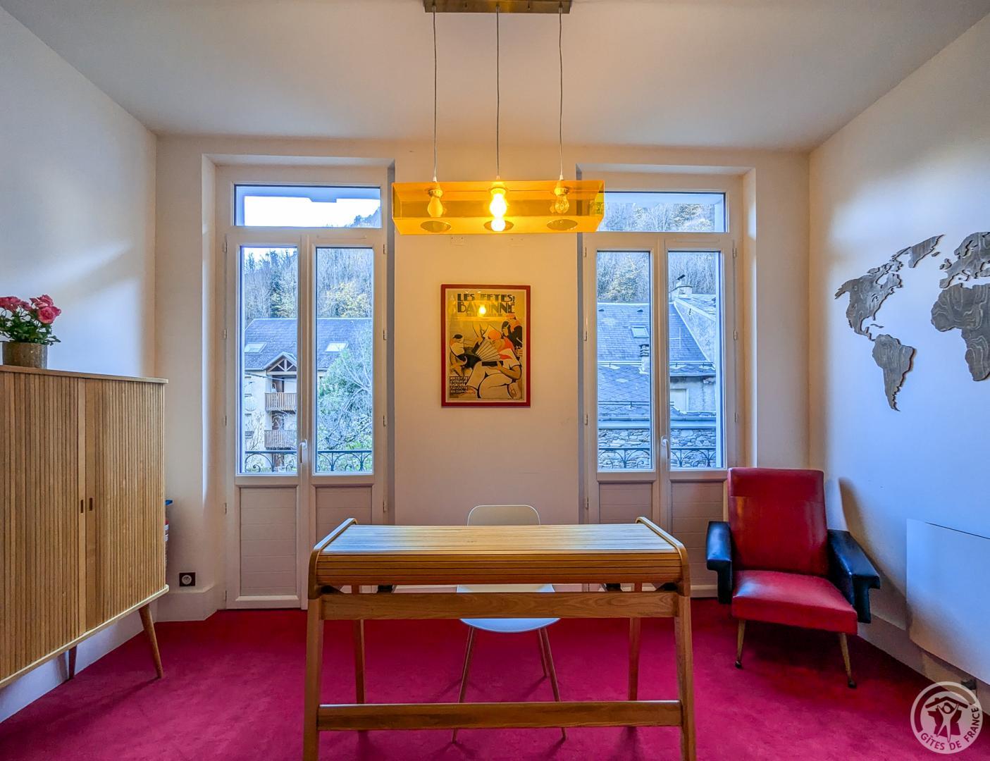 Stunning façade and incredible mountain views from the bedrooms. Beautiful furnishings. Gîte located 1km walk from all shops and services: cable car for the summer and winter resorts of Luchon-Superbagnères. Motorcyclists welcome. Your ideal holiday destination with family or friends, summer or winter! Arranged over 3 levels: 7 bedrooms for 15 people, 4 shower rooms. - Ground floor: entrance into the living room, dining room opening onto the kitchen, utility room, WC. - First floor: study on the landing, 4 bedrooms (2 single beds 90cm twin with balcony) (1 double bed 140cm with private shower room/WC) (2 single beds 80cm twin with balcony) (1 double bed 160cm with private shower room), shared bathroom, WC. - Second floor, under the eaves: mezzanine relaxation/games area with table football and pinball machine, 3 bedrooms (3 x 80cm single beds, 2 of which can be twinned, with en-suite shower room/WC) (1 x 140cm double bed with en-suite bathroom/WC + shower) (1 x 160cm double bed with en-suite shower room/WC). - Air-conditioned wellness area on the ground floor with sauna & fitness room (bike, elliptical and treadmill) reserved entirely for the gîte. - Bike and ski storage. Pleasant enclosed garden, terrace and summer kitchen. Table tennis, covered carport and electric vehicle charging station just a few metres away. TELETRAVAIL: dedicated office space with desk, lamp facilities, nearby power socket for a laptop, extension lead and power strip available. High-speed internet connection (wifi). RJ45 cable in another room. 4G telephone coverage (operator: Orange). Cordless telephone.