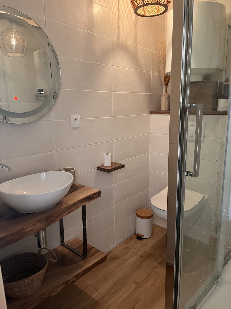 Enjoy stylish, fully-equipped accommodation with a ski or bike cellar, close to the thermal baths, cable cars and market. For 3-week spa treatments, special rates on request. Fully equipped, cocooning decor One bedroom with a double bed (140x190) Fully-equipped kitchen (no dishwasher) and washing machine Free parking nearby Bright flat close to the cable cars and market square. With a cellar for storing skis or bikes, the flat has one bedroom with a double bed, dressing room and connected TV. Living room kitchen with sofa bed, large connected TV, kitchenette, table, 4 chairs, 2-burner hob, microwave, mini fridge, washing machine, Nespresso coffee machine, filter coffee machine, kettle, toaster, crockery, cutlery, shower room with shower and WC.