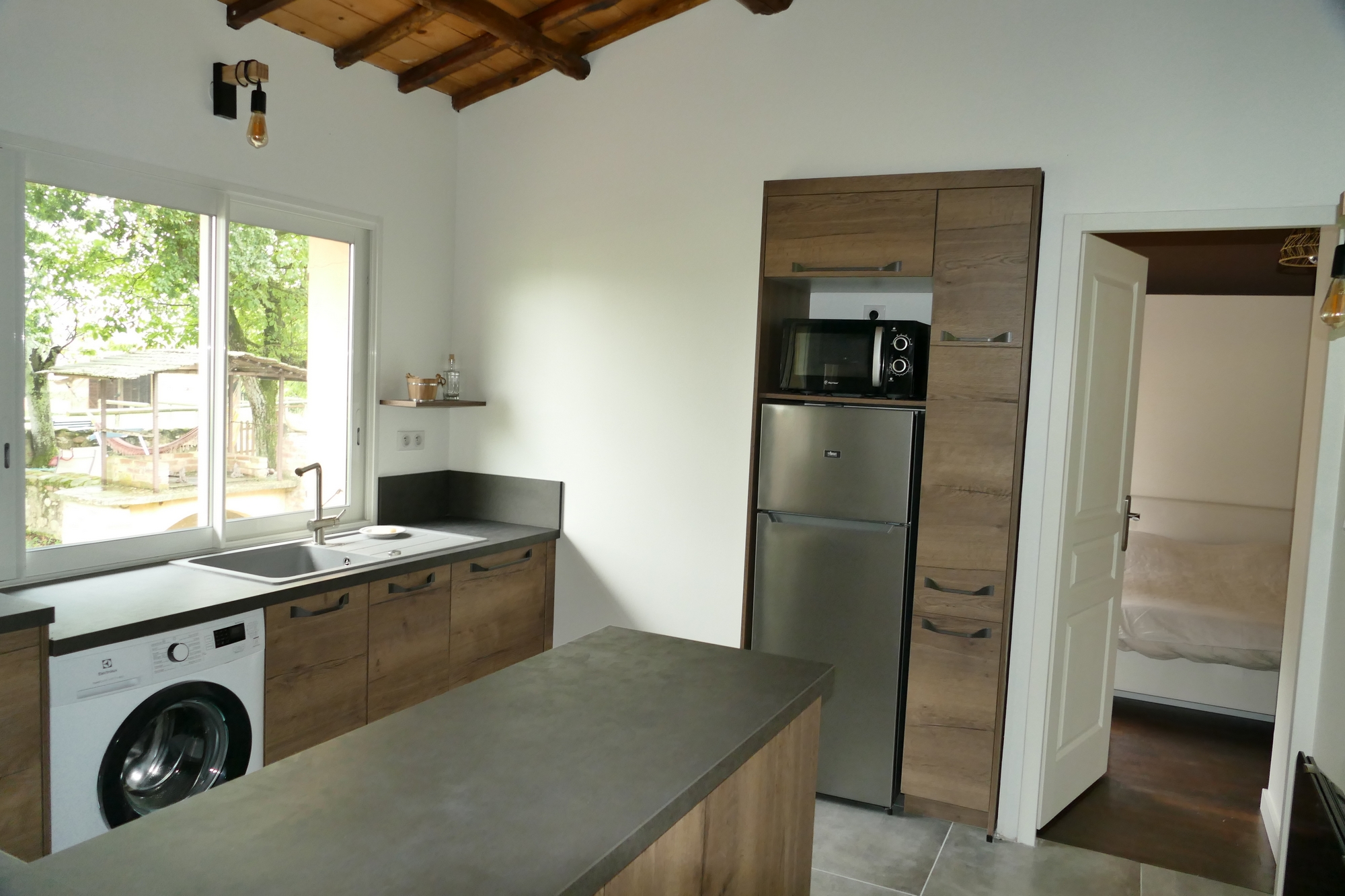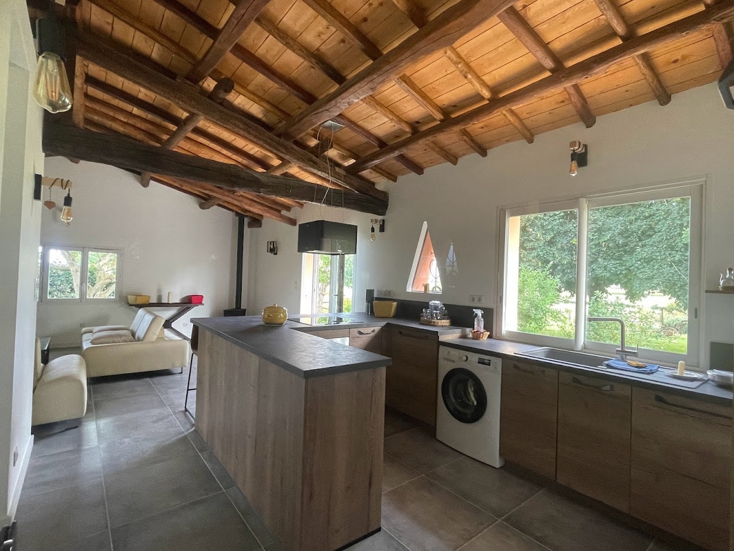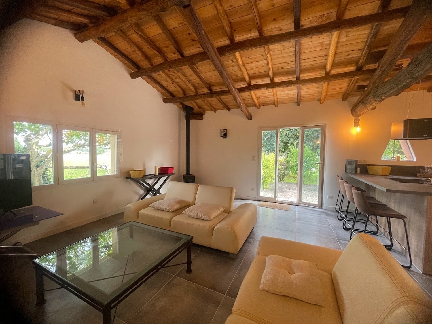 Detached house in a quiet location on the heights of Ponlat facing the Pyrenees, with easy access and car parking on the property. Large, bright living room (TV + wifi) with sofa bed - open-plan kitchen with all appliances + washing machine + dishwasher. Bedroom, shower room and separate toilet. Convector heaters plus wood-burning stove. Bed linen and towels provided. Large wooden terrace with chairs, table and garden furniture. Boules pitch - barbecue - Nordic bath (€70 supplement).