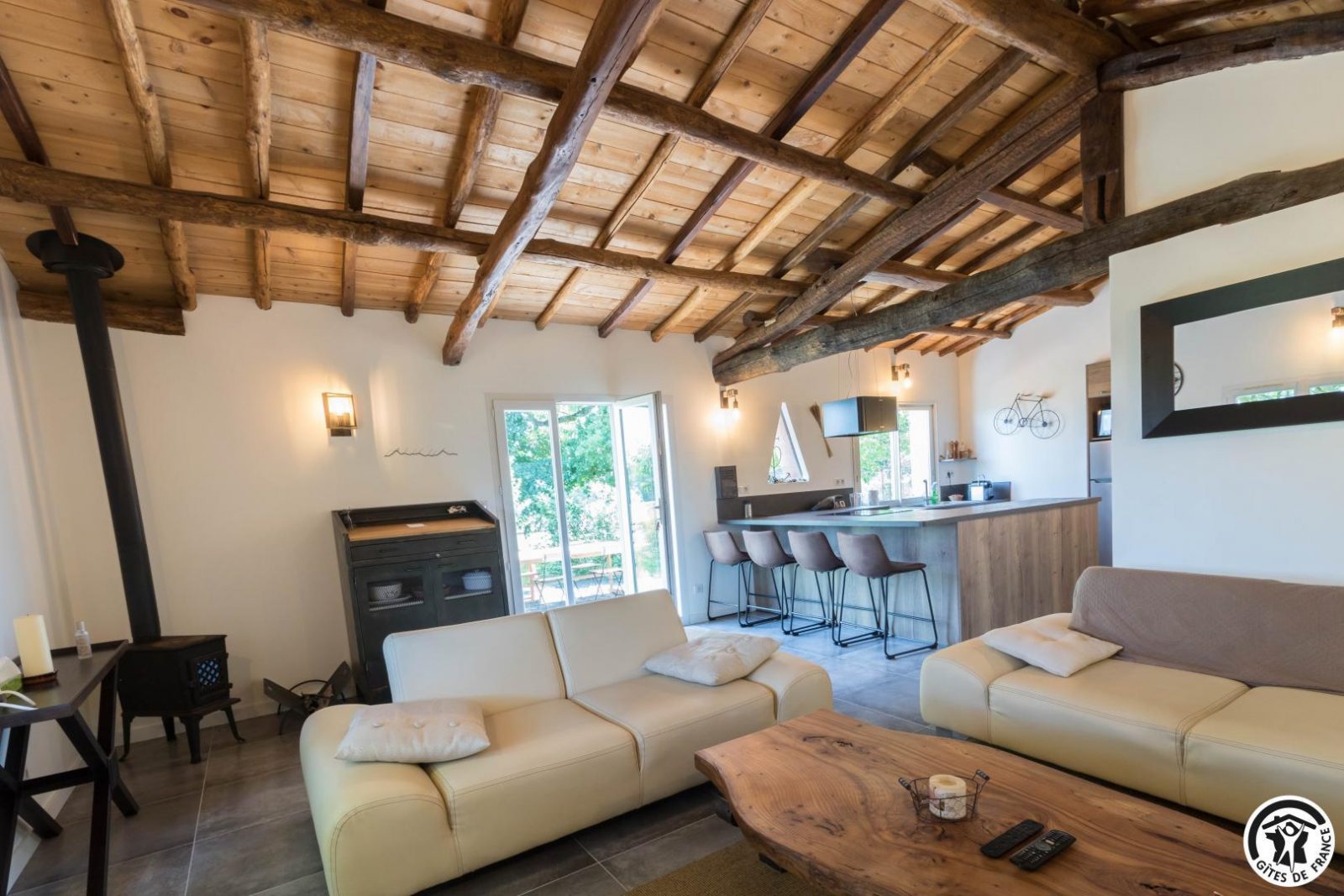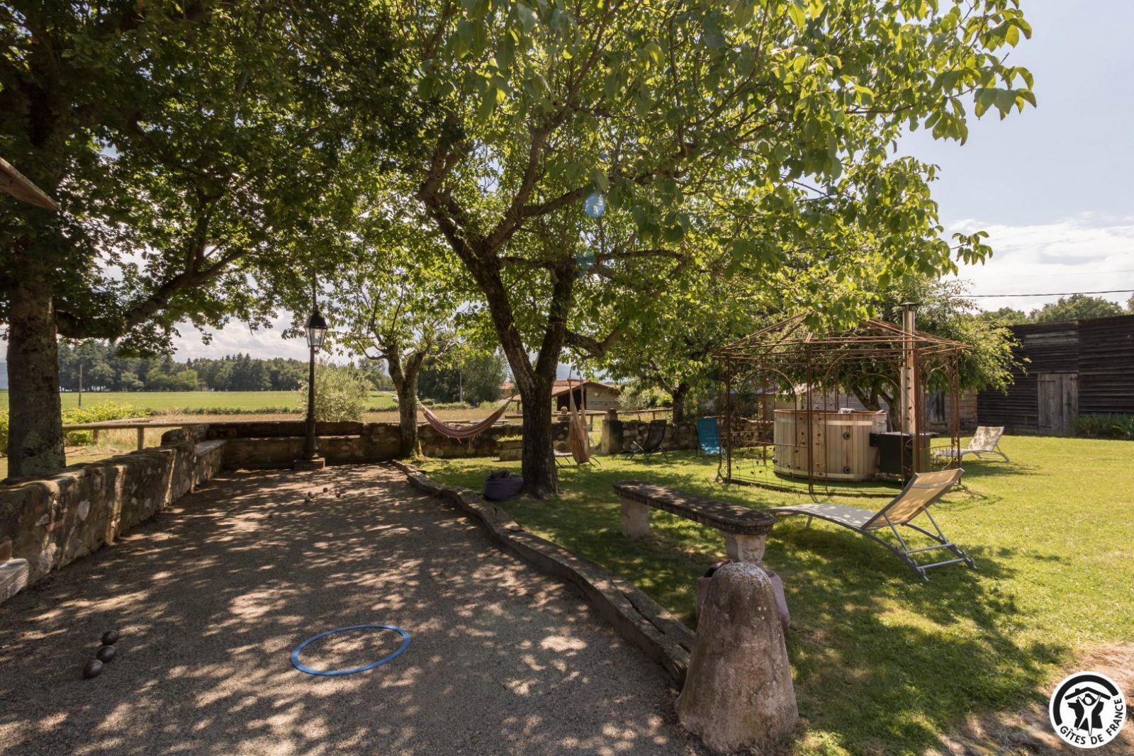 During your week's holiday with family or friends, you'll find everything you need for an unforgettable stay. From April to September, take advantage of the Nordic bath heated over a wood fire, or try your hand at the local sport in the shade of the many fruit trees: pétanque! Enjoy an aperitif and watch the sun go down from the solarium above the old rabbit hutch, or in the games room in the former hay barn of this wonderful farmhouse. A 5.3km from the motorway exit at Montréjeau (the main town near the gîte, with its market, shops, restaurants, swimming lake, golf course and train station), you will be ideally placed for a wide range of activities and visits: The Cardeilhac forest is 11km away, the Gargas caves are 13km away, the Gallo-Roman Villa at Montmaurin is 18km away, the Parc de la Demi-Lune leisure park at Lannemezan is 19km away, the Save river gorges are 21km away and the Nistos cross-country ski resort is 38km away. Bagnères-de-Luchon and Le Mourtis are 45 minutes away by car. La Ferme : - Ground floor: entrance - living room - kitchen/dining room (fireplace opening onto the living room and kitchen) - bedroom (1 double bed 160*200cm, desk and private shower room) - separate WC - First floor: 3 bedrooms (1 double bed 160*200cm on the mezzanine, sofa on the lower level)(1 double bed 160*200cm, desk and TV)(1 double bed 160*200cm, jetted bath) - library overlooking the lounge - shower room - separate WC - Second floor: very small bedroom accessible via a very steep staircase (2 single beds 90*200cm) 2 games rooms (one inside with stove, the other outside) are in the hangar. La Bergerie : Single-storey gîte: entrance into fitted kitchen, dining area and sitting area (2 convertible sofas 120*190cm and a wood-burning stove) - bedroom (1 double bed 160*200cm) - shower room - separate WC.