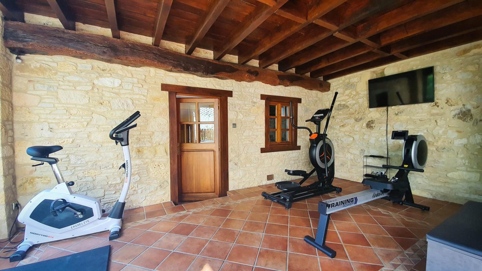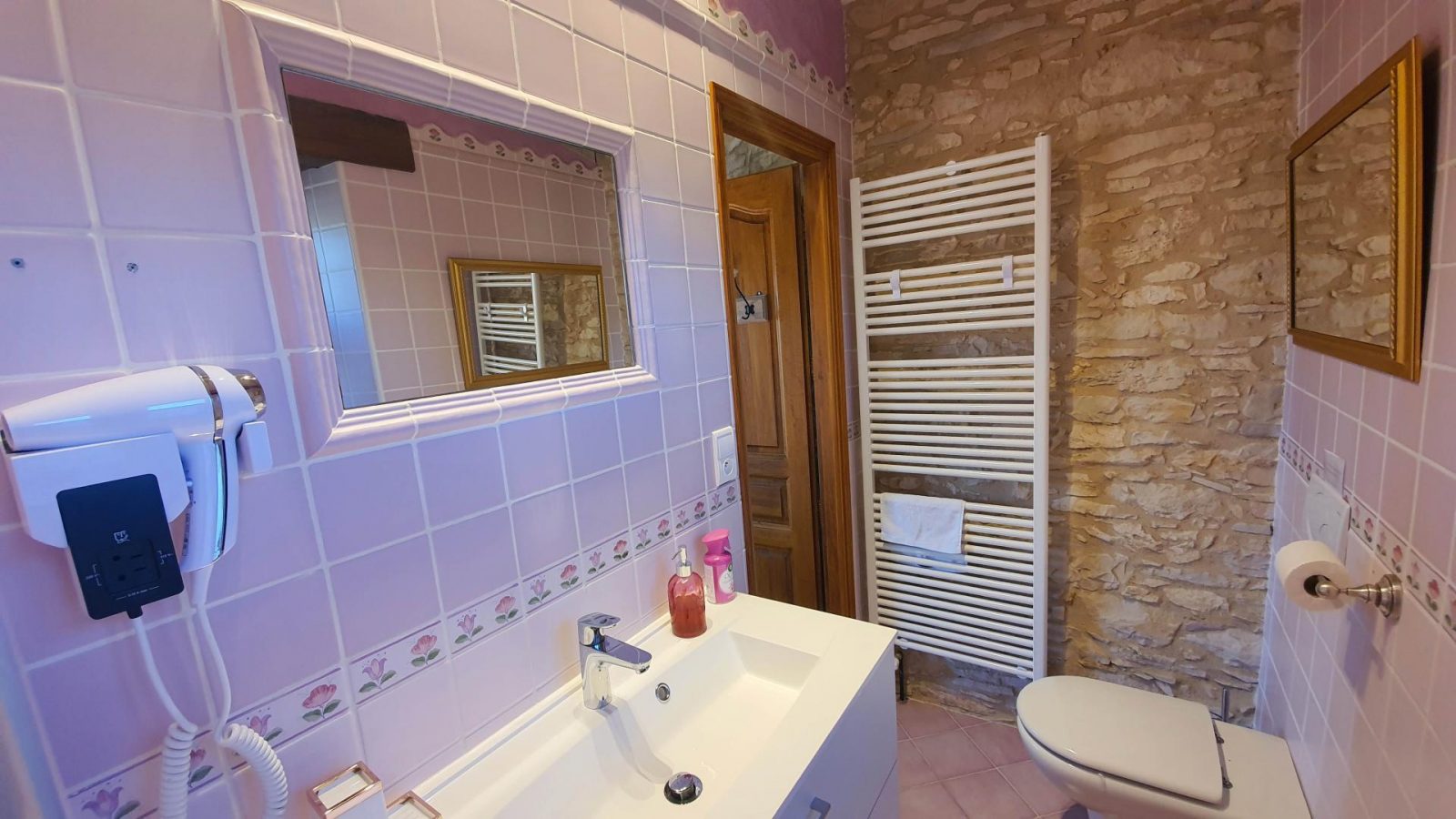 If you're a nature lover, this gîte at La Grangette is for you! Situated in the heart of the countryside, with an uninterrupted view of the Pyrenees when the weather permits, you can enjoy the peace and quiet here and take care of yourself. Although adjoining the owner's house, the gîte has its own private flower-filled garden with a 4.50x9m swimming pool secured by a fence, an outdoor jacuzzi (free from June to September, €20 per session the other months of the year) and table tennis. A fitness area (bike, elliptical, rowing machine) completes the facilities on offer. (Sports equipment for 14-year-olds only, under adult supervision). A lovely terrace with shaded pergola is available for meals and barbecues. Parking on the property. Pets not allowed. The layout of La Grangette is unusual. The living area is on the ground floor, accessible from the car park by a few steps down. The entrance is via a fitness room, followed by a relaxation area with a few armchairs, a library and board games. These areas (fitness and relaxation) can be used by the owners to access the shared laundry room (a washing machine and tumble dryer are reserved for guests). Small shower room/WC. The relaxation area opens onto a large kitchen with dining area, which is private to guests and overlooks the terrace and garden. The sleeping area is upstairs, accessible from the car park by a few steps. There is a large covered terrace with views of the mountains and garden furniture. From here, a corridor leads to 2 bedrooms, each with 1 double bed (160x200cm) and 1 sofa bed that can be used as an extra bed for 1 child. The corridor is extended by a covered gallery that leads to 2 other, smaller bedrooms, each with 1 double bed (140x190cm). Each bedroom has a television and a private shower room/WC. Heating by heat pump.