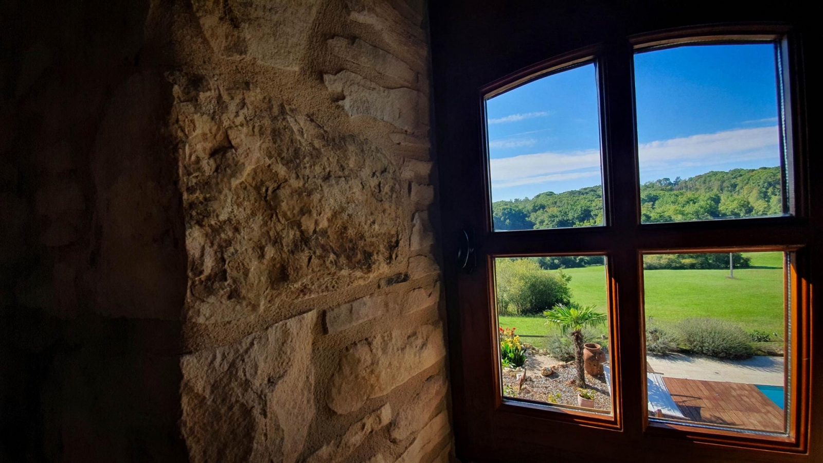 Beautiful blonde stone house for 8 people with private swimming pool, jacuzzi and fitness area, beautiful garden, shaded terrace, view of the Pyrenees on a clear day.
