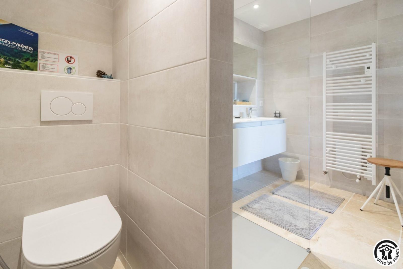 In Sepx, 1,500 metres from Bonnefont Abbey in Comminges and the Martres-Tolosane - Saint-Martory stage of the ViaGarona pilgrimage route to Santiago de Compostela. Welcome to the Maison des 3 Chouettes! Perfectly renovated house in the Comminge region, a peaceful holiday by the swimming pool made of immersed solid wood. Enjoy bike rides through the rolling Pyrenees, or a game of table tennis or pétanque. Carole, the owner, has given this place a new lease of life, offering you a neat, modern decor that respects the heritage left behind (exposed beams and stonework). The house also has an eco-friendly touch, with thermodynamic water heating and natural treatment of waste water using hazelnut shells. The Garonne river is 6km away (fishing and cycling), Saint-Martory is 10km away (remarkable market, restaurants and shops), Saint-Gaudens is 15km away (cinema, tourist office, train station...) as is Aurignac (Musée de l'Aurignacien), Salies-du-Salat is 20km away (thermal baths and Casino). You're also less than 30 minutes' drive from : Montréjeau (swimming lake and golf course), the Cardeilhac Arboretum forest, the Gallo-Roman village of Montmaurin, the Save Gorges (swimming), Aspet (caving) and Saint-Girons (Ariège department). Toulouse and Spain are less than 1 hour away. Gîte on 2 levels, 4 bedrooms - 8/9 beds: - Ground floor: entrance, "Normandie" bedroom, lounge, utility room, separate WC, dining room and fully equipped kitchen. - On the first floor, to the right of the house, the "3 Chouettes" suite, equipped with air conditioning, with the possibility of a 3rd 90x200 bed (extra charge of €20 per stay); and to the left of the house, the "Aquitaine" and "Pyrénées" bedrooms. - Each bedroom has 2 single beds (80*200cm) that can be twinned to form 1 double bed (160cm), a desk, a dressing room, a bathroom with a walk-in shower and a private WC.
