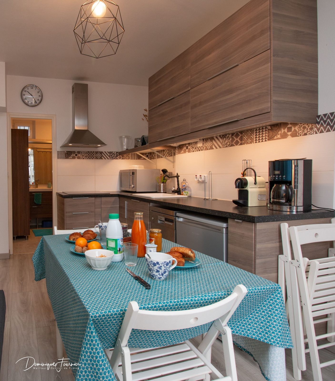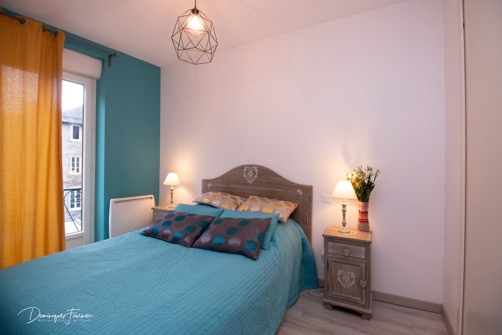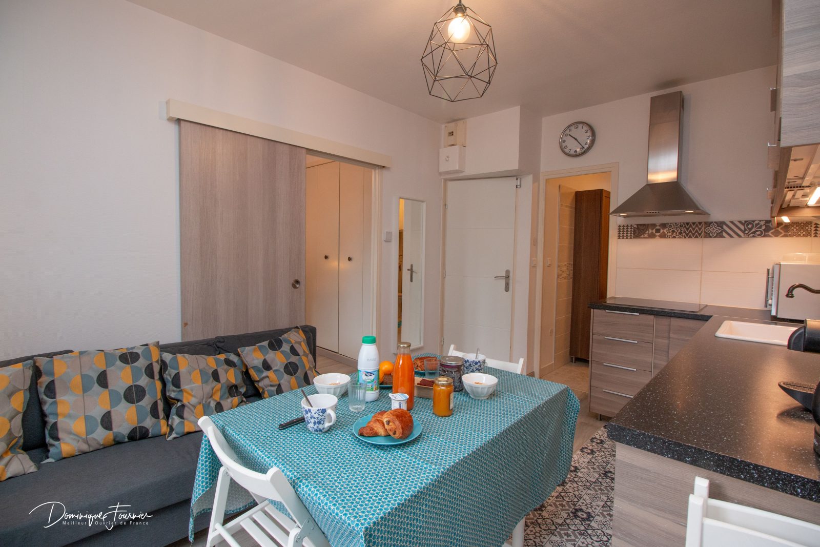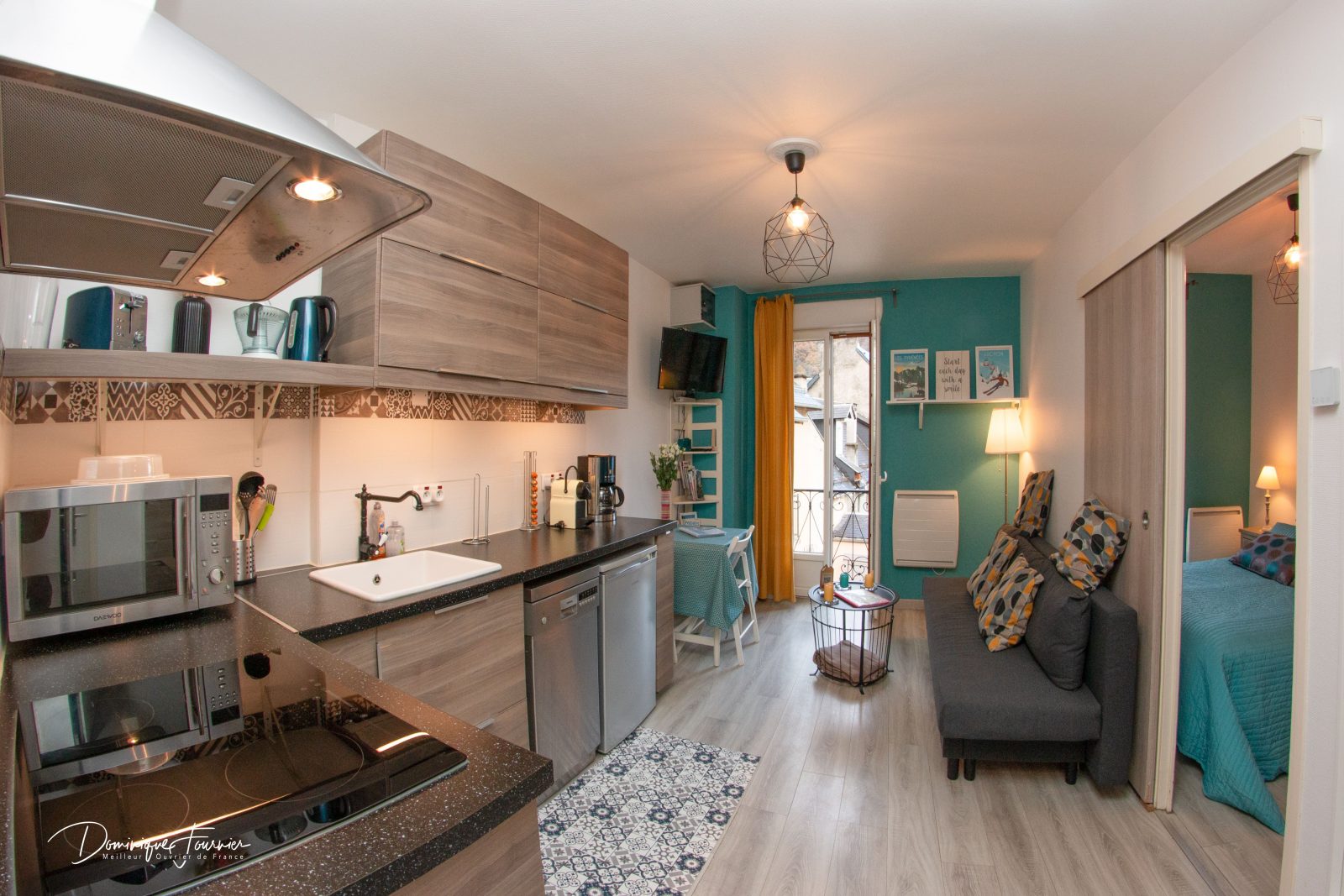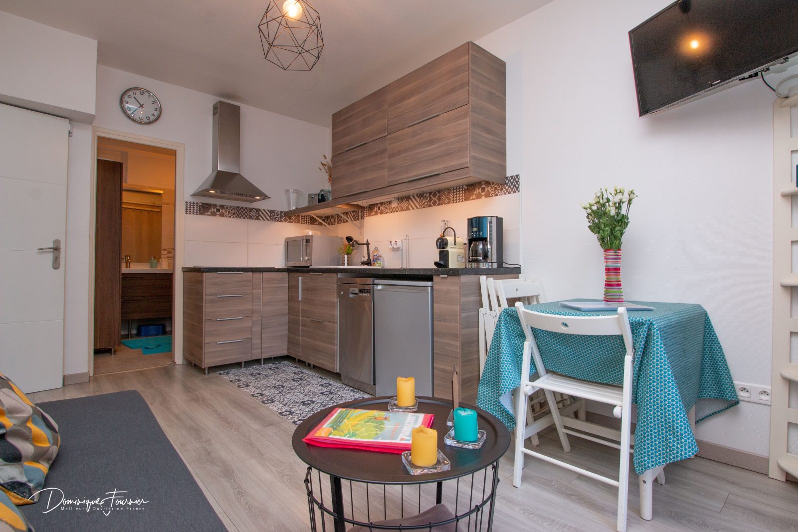 It comprises a living room with kitchen and sofa bed (140cm). A bedroom with 1 double bed (140cm). A shower room with WC. Washing machine with dryer. Free Wifi. Pets welcome. Parking nearby.