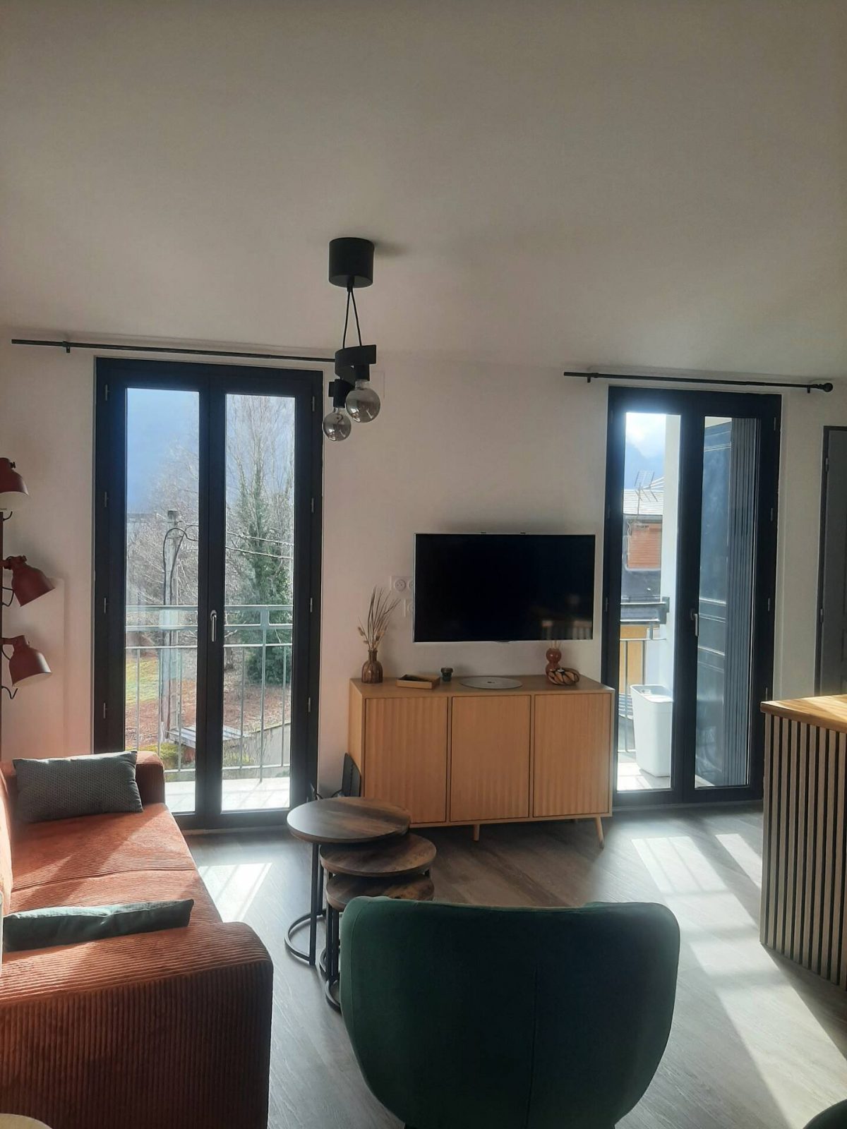 La Rose des Pyrénées, fully refurbished 50m2 T3 flat, modern, warm, tastefully decorated and well equipped. Magnificent, uninterrupted views of the mountains and countryside, with a balcony.