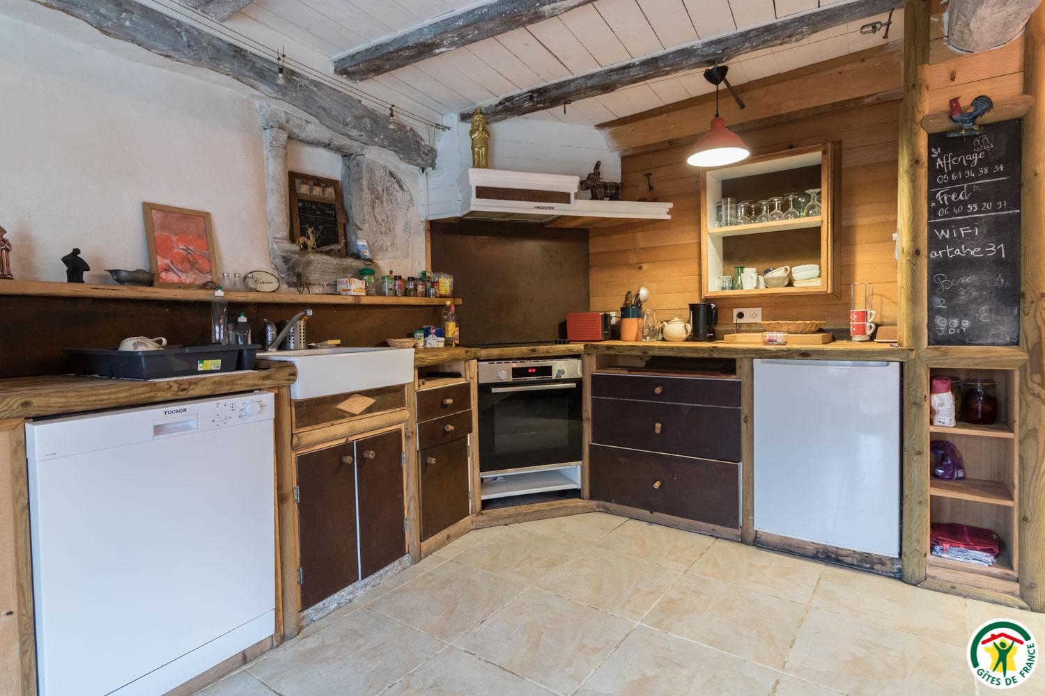 In the heart of the Pyrenean village of Saint-Pé-d'Ardet, you'll enjoy stopping off or staying longer in this magnificent stone building with its south-facing gallery, where the owners have taken great care to preserve and restore all the old features. Here, whether you're an individual or a group, you'll enjoy the peace and quiet of the surrounding countryside and be able to indulge in all the leisure activities and outdoor sports that the mountains have to offer. A courtyard extended by a terrace will allow you to make the most of the fine weather. Large common room of 80m2 opposite the gîte (kitchen, lounge and fireplace). Restaurant 50 metres away and lake 500 metres away. Activities and visits nearby: the Garonne cycle path (6km away, also ideal for fishing), the Pyrénées-Hô tree-climbing park (8km away), the French favourite village of Saint-Bertrand-de-Comminges (14km away), Montréjeau (18km away, with lake, market and train station), the ratfing base at Antignac (21km away), and the ski resorts of Luchon and Le Mourtis (24km away). - Ground floor: self-catering kitchen and lounge (fireplace, library, games, etc.), 1 bedroom accessible to people with reduced mobility (2 single beds 90x190cm), WC. - First floor: 3 bedrooms, one with 4 single beds (90x190cm) (2 of which can be twinned), and 2 accessible from the gallery, each with 2 single beds (90x190cm) that can be twinned. - On the second floor under the rafters: 1 bedroom (1 double bed 140x190cm) and 1 small dormitory (1 double bed 140x190cm and 3 single beds 90x190cm). Each sleeping unit (bedroom or dormitory) has its own private shower room/WC, except on the second floor where the WC is shared. Laundry room (washing machine and tumble dryer) and bicycle room in the annex. Rates 2025: stage per bed: €25/person/night. Half-board: €45. Self-catering: €500/night, weekend: €740, week: €2,250.