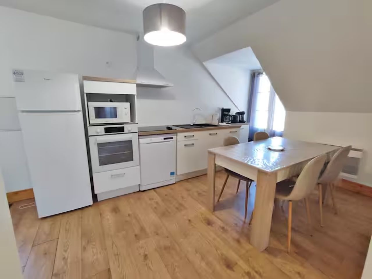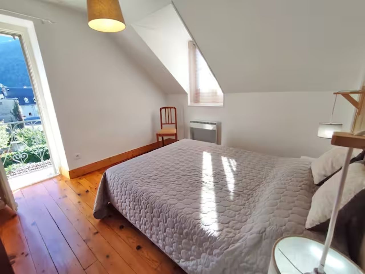 Newly refurbished T3 apartment with mountain views. Quiet location, 5 minutes' walk from the Allées d'Etigny and shops. Located on the 2nd floor of a house with 3 flats. Ideal for skiers (Superbagnères within walking distance from the cable car, Peyragudes 20 mins by car), spa visitors and all mountain lovers. Numerous activities nearby (hiking, rafting, gliding, paragliding, golf, horse-riding, etc.). Spain 10 km away. This flat has - a very large, modern living room with open-plan fitted kitchen (oven, microwave, dishwasher, raclette machine, hand blender, coffee machine, toaster) and 2-seater sofa bed, - a bedroom with 140cm bed and large dressing area, - a mezzanine children's bedroom decorated in chalet style with 2 x 90cm beds - a bathroom with a 140cm shower A laundry room with washing machine/dryer/ironing board and iron is available in the residence. Nursery equipment is available free of charge. Private car park included To help you settle in, you will have at your disposal: washing-up liquid, toilet paper, bin liners, salt, pepper and sugar.