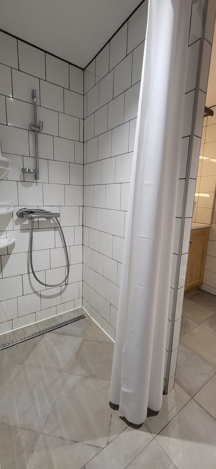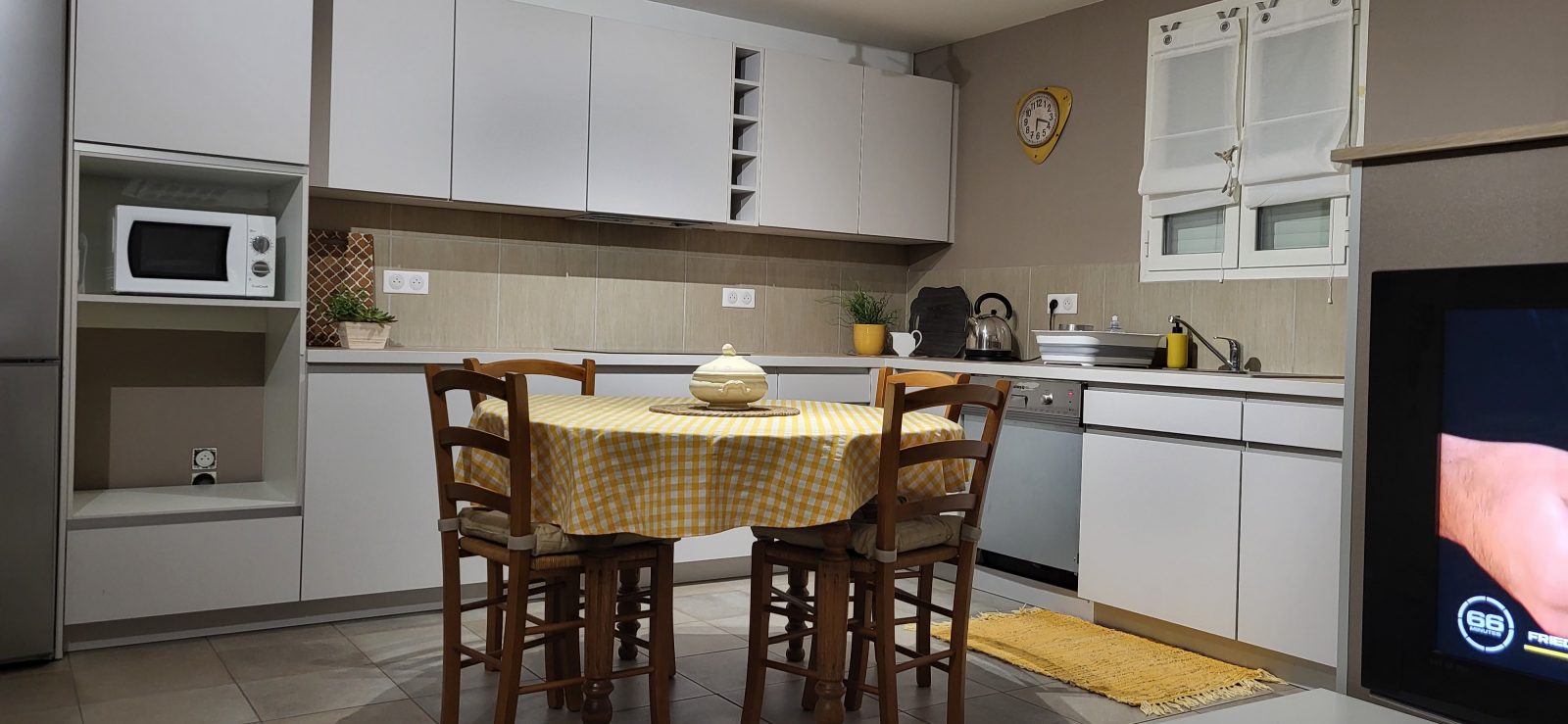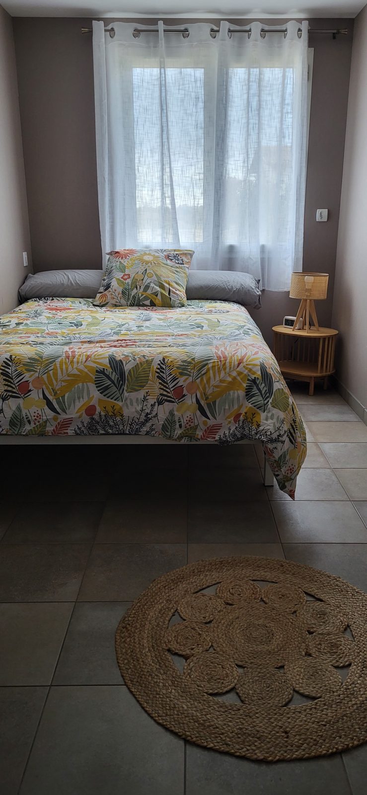Living area with fully-equipped fitted kitchen: oven, microwave, induction hob, kettle, Nespresso coffee machine, fridge, freezer and cooking utensils...sitting area with sofa, television, a few books and scrabble. Bathroom with walk-in shower, washbasin and WC. Built-in cupboard for your belongings. One bedroom with double bed (140cm), television, suitcase holder and desk area with wifi. Small outside terrace with table and armchairs to enjoy the fine weather. A cosy and practical flat. Linen, towels and cleaning included.