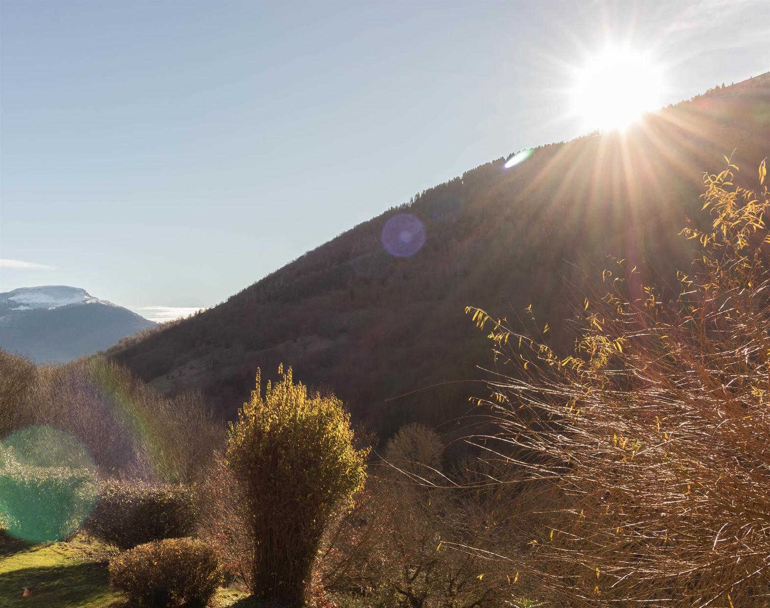 Bright, south-facing studio with small terrace and spectacular mountain views. Just for your eyes and ears, deer and stag bellowing in the morning!