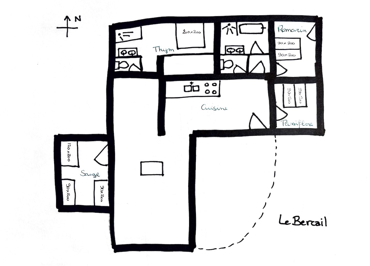 The former farm building is very spacious and bright, with plenty of space for everyone to find their place and their activity: reading, playing, working, chatting... The large room can accommodate friendly meetings of around ten people. A huge, well-equipped kitchen (8 induction hobs, oven, microwave, fridge, freezer, dishwasher, coffee machine and Senseo...) means that meals can be prepared without rushing around. The Thyme bedroom, with its 200 x 200cm bed, dressing room and completely refurbished shower room, is a beautiful, cool and secluded master suite. Two bedrooms, "Romarin" and "Passiflore", each have two 90*200 beds that can be combined on request into a single Kingsize bed (180*200). The Romarin room has direct access to the outside. The Passiflore room has two windows, one of which faces south. The Sage room is ideal for children or teenagers (two 90*200 beds and one 120*90 bed). The rooms are equipped with reversible heat pumps (heating/air-conditioning), so they are comfortable both inside and out. A recently refurbished bathroom includes a bath and shower, and a washing machine. Two separate WCs are located at either end of the house. On the south and east-facing terrace, you can relax, eat and enjoy a barbecue on a long summer's evening. As the sun rises, you can enjoy breakfast overlooking the Ariège Pyrenees. A fully enclosed garden means you won't have to worry about letting the children play. Sheets and mattress covers are provided free of charge. Covers for individual duvets are available for hire, as are towels. Cleaning of the accommodation can be taken care of by us if you opt for the cleaning service. Another independent gite, La Houlette, located nearby, sleeps a maximum of 5 people in 3 bedrooms and can be rented jointly. In the heart of the Comminges hills, 1 hour from Toulouse, Spain, St Bertrand de Comminges, ski resorts, 1h20 from Lourdes. Nearby activities: prehistoric sites, ancient sites, medieval towns, art sites, hiking and cycling trails, nature sites...