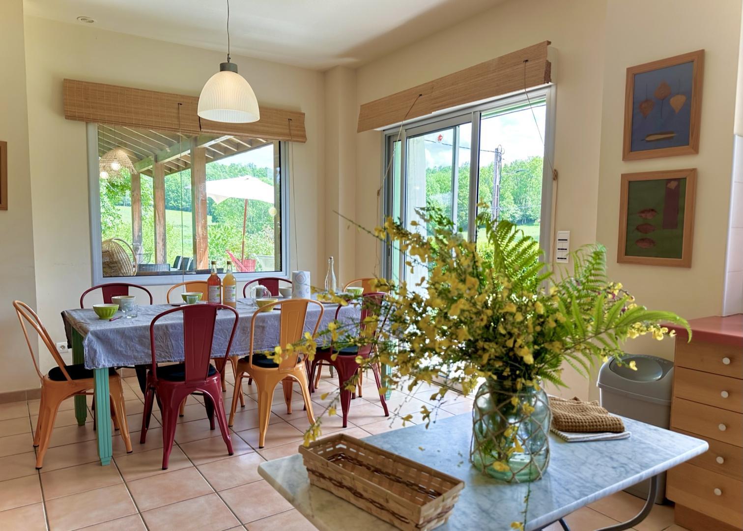 Breathtaking views of the Cagire from every room. Le Clos Saint-Paul consists of 2 gîtes adjoining the owners' home, with a total capacity of 21 people and a shared swimming pool! Housed in the outbuildings of a Comminge farm converted into a convent in the 20th century, these gîtes have undergone a contemporary renovation and boast views of the Pyrenean foothills and the Pic du Cagire. In the heart of the Comminges-Pyrénées region, you can enjoy a wide range of activities including hiking, paragliding, mountain biking, cycling over the Tour de France passes, water sports, an adventure park, caving, a swimming lake and golf at Montréjeau, etc. You can also visit the famous sites of the Occitanie region, such as the Cathedral of St Bertrand de Comminges, Saint Just de Valcabrere, Saint Lizier... In Aspet, a lively village just 3.5km away, you'll find all the shops and regional produce you need, 2 markets on Saturdays and Wednesdays, restaurants and the Tourist Office. The ski resort of Le Mourtis, 30 minutes away, offers winter and summer skiing and snowboarding... Saint-Gaudens and Boussens (SNCF stations, Garonne river) are 20km away and Toulouse Blagnac and Ossun Tarbes airports are around 100km away. - Ground floor: entrance, kitchen with dining area, living room with fireplace, "Africaine" bedroom (1 double bed 140cm) with en-suite shower room/WC, separate WC. - First floor: "Coloniale" bedroom (1 x 160cm double bed + 1 x 80cm child's bed), "Nature" bedroom (1 x 160cm double bed + 1 x 90cm single bed), bathroom with shower and bath, separate WC. - Outside area: private enclosed garden, terrace. Shared swimming pool (5*10) with the owners and tenants of the second gîte (beach with sun loungers) open from 10am to 8pm. Reserved parking area.