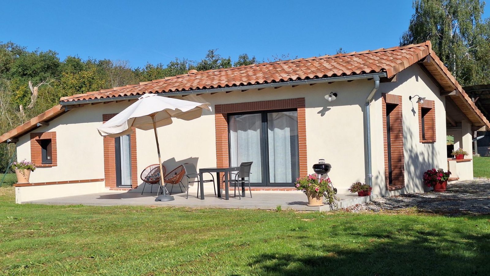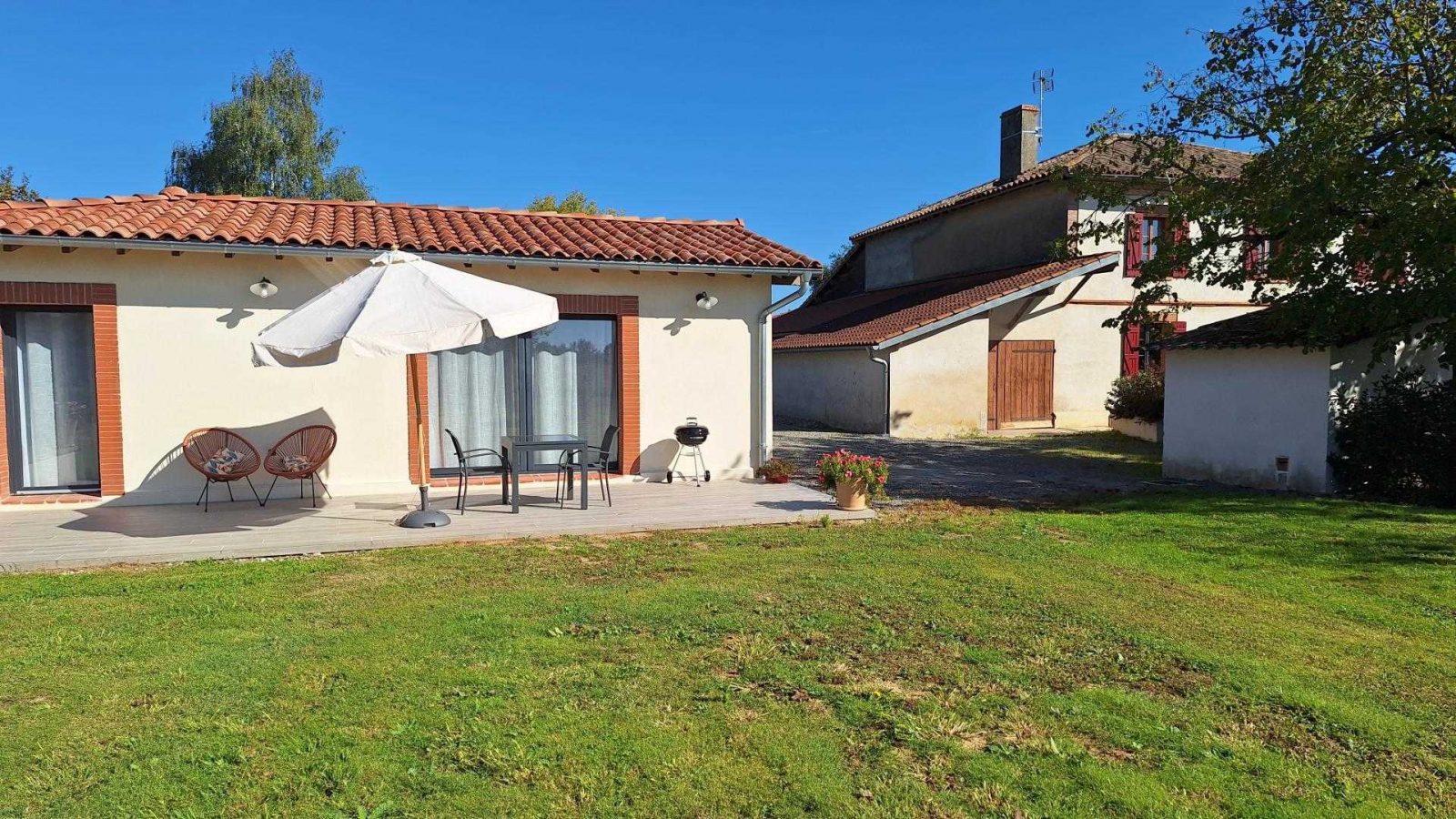 Less than a kilometre from the famous GR86 long-distance hiking trail linking Toulouse to Luchon, this large detached house just for two, nestling in the peace and quiet of a farm, promises a peaceful interlude in the rhythm of nature. Treat yourself to a spacious, light-filled and intimate cocoon, with a south-facing terrace for sunbathing and a north-facing terrace for enjoying the cool air at the end of the day, all surrounded by a private garden. The Gîte le Courtilh, an old building, completely renovated, where pigs and poultry were once reared, awaits you for an unforgettable holiday. From your accommodation, set off to discover a rich and surprising region: take advantage of the absolute peace and quiet of your garden to read, write, meditate or simply listen to the wind in the trees, before setting off to explore a region with a thousand faces. Saint-Lys is just 6km away for shopping. The bastide town of Rieumes, 10 km away, with its gourmet market and charming little streets. Sainte-Foy-de-Peyrolières lake, 3km away, for a bucolic stroll or a romantic picnic by the water. Samatan, 20km away, famous for its foie gras market and local produce. The village of L'Isle-en-Dodon, 25 km away, is a stop-off point on the GR86, perfect for lovers of hiking and local history. The pink city of Toulouse, just 35 km away, for a day of heritage, culture and gastronomy. The Château de Caumont, 30 km away, an architectural gem of the Renaissance period set in splendid wooded grounds. Ground-floor gîte: living room with fitted kitchen, sitting area and dining area, bedroom (1 double bed 140*190cm), shower room, WC. Infra-red heating. Unenclosed garden, 2 shaded terraces, garden furniture and seating area. 2 other gîtes in the same grounds. Cot available on request. Options available on request with our partners: on-site massages, baby sitting.